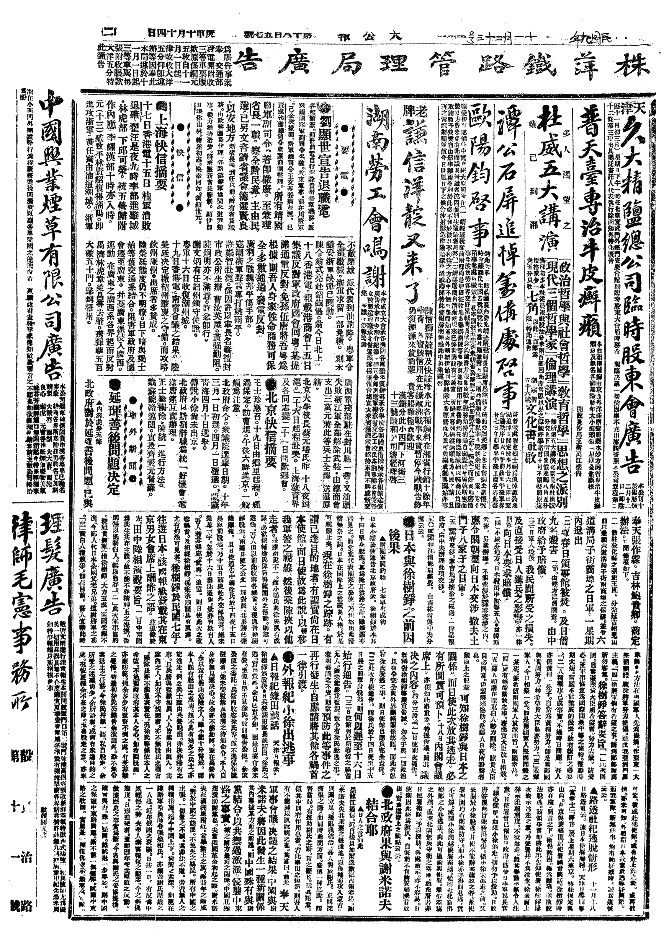 中华民国史大事记>19201123