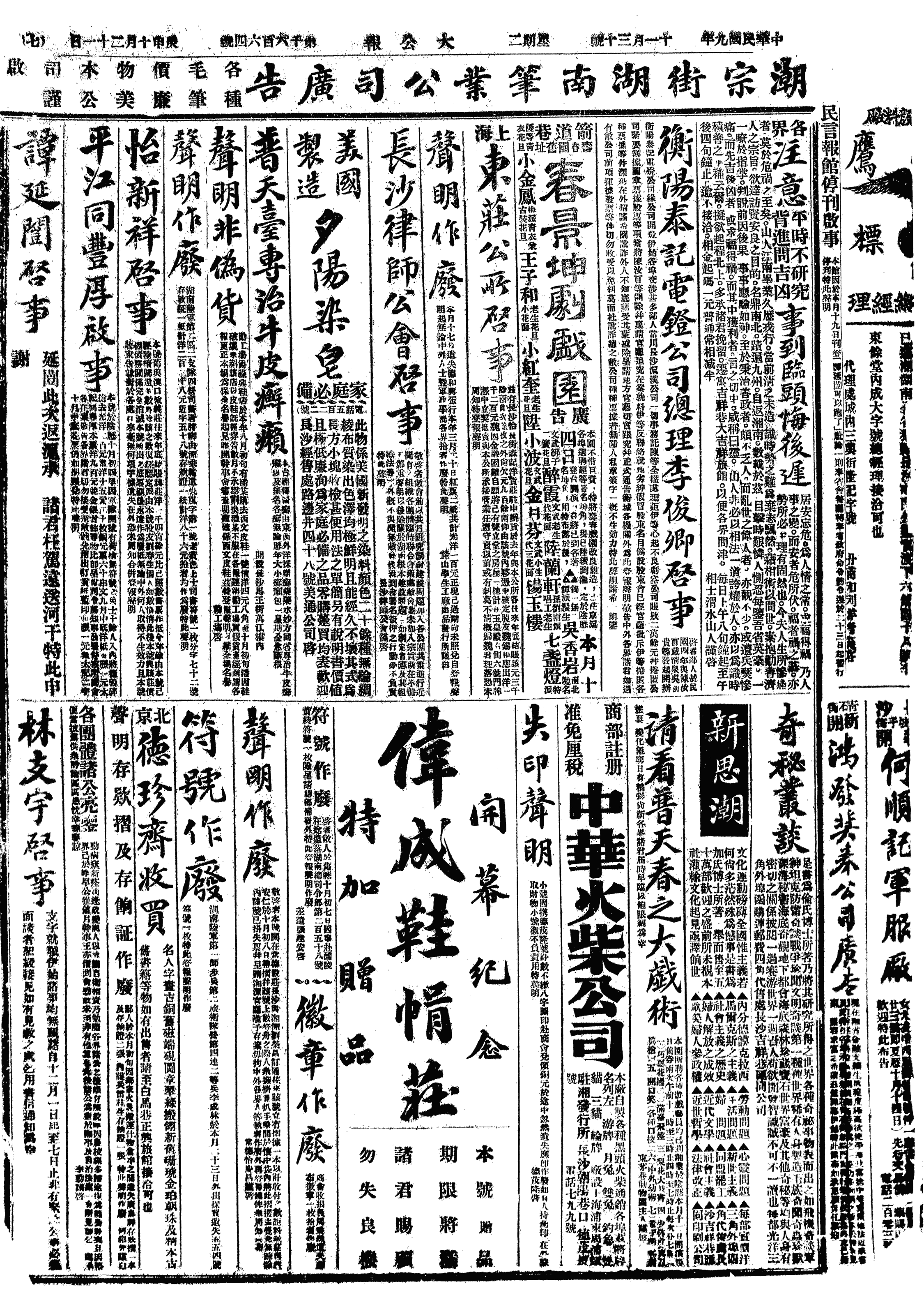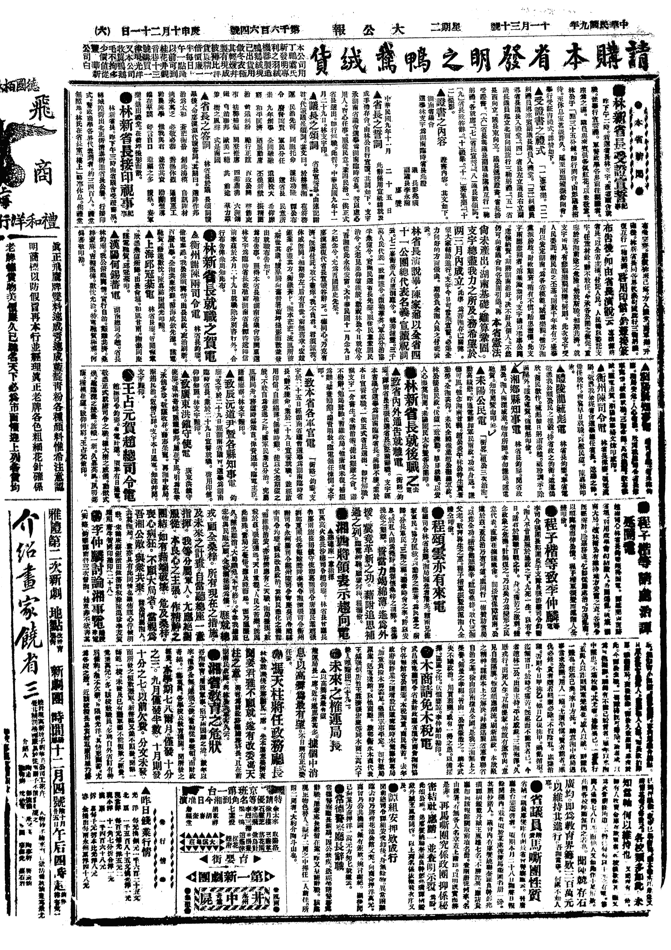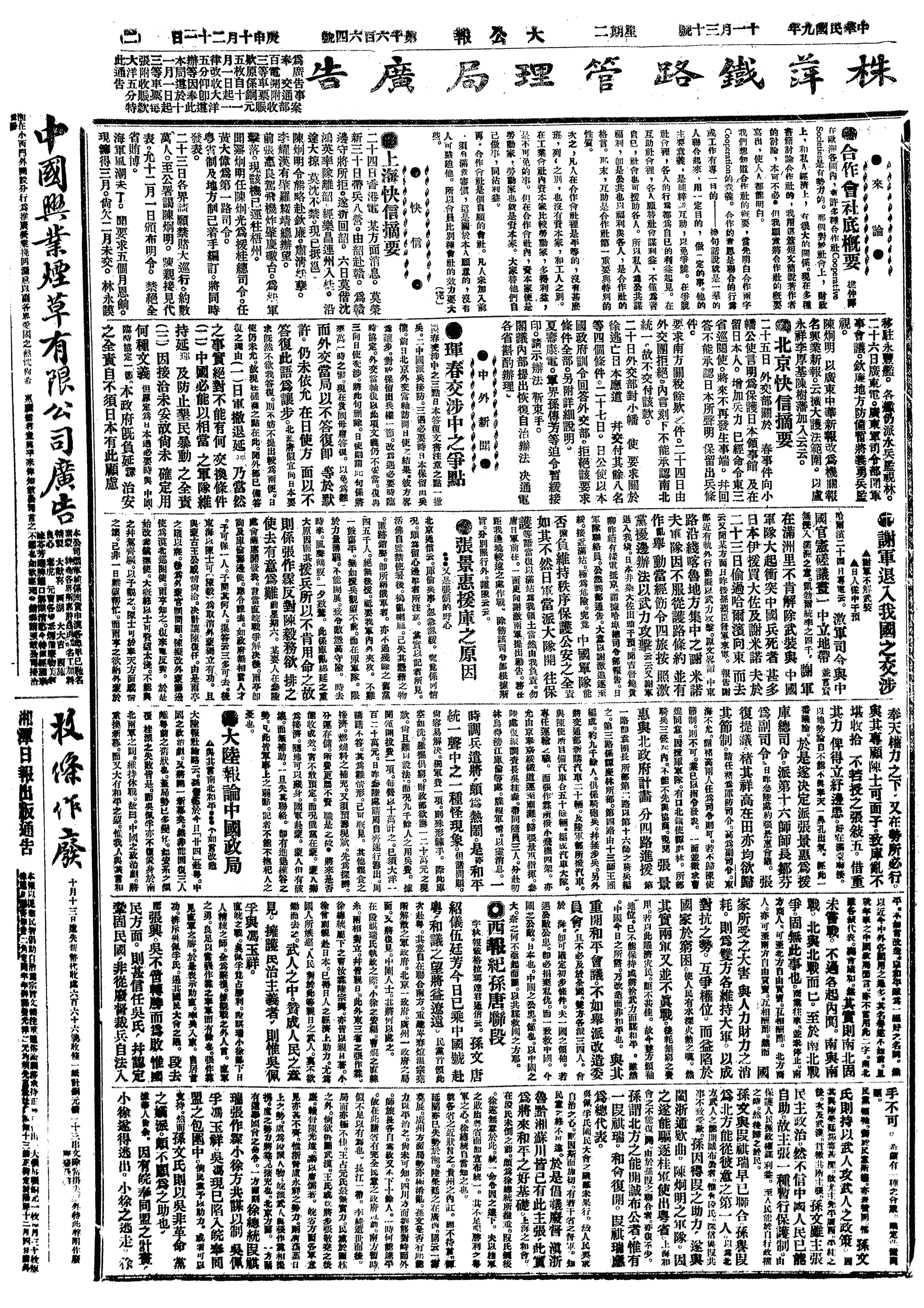 中华民国史大事记>19201130