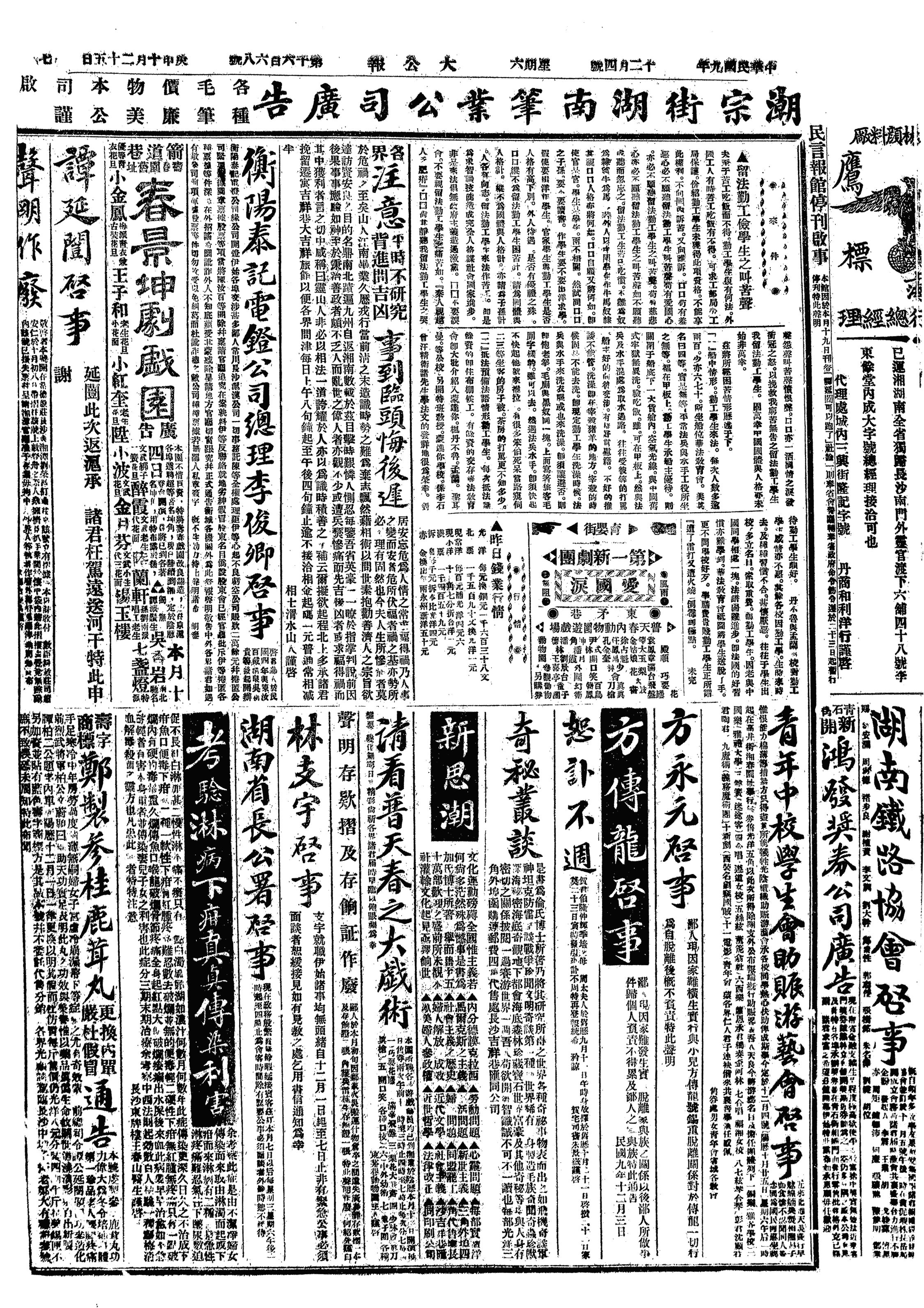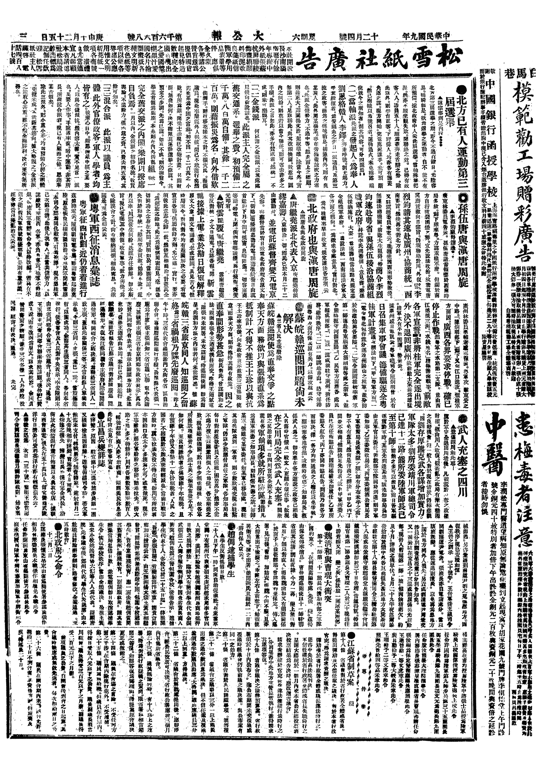 中华民国史大事记>19201204