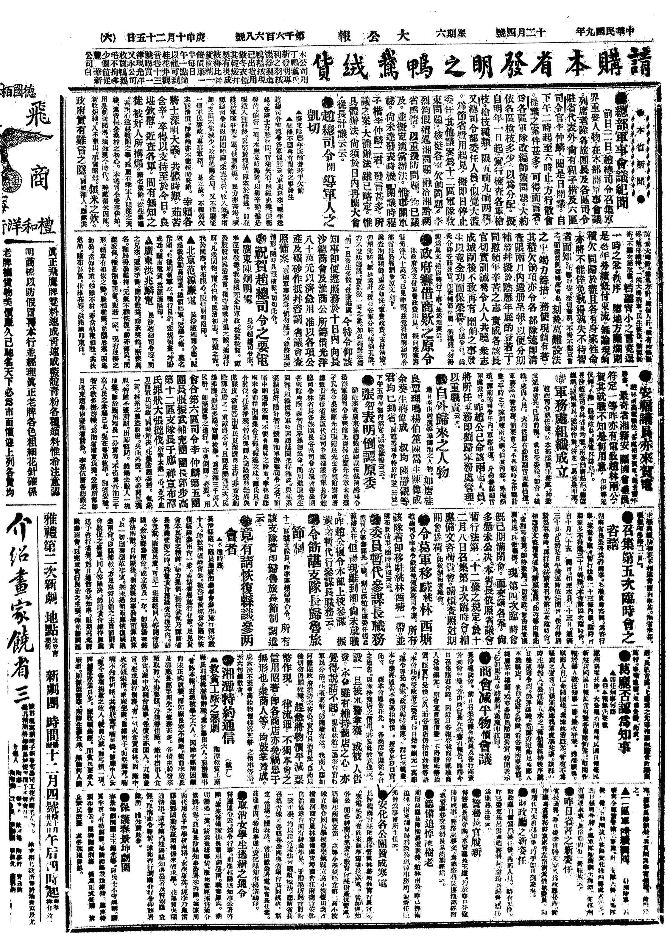 △ 湖南总司令赵恒惕通令:“近查各军,间有无知之徒,被奸人所构煽,借名索饷,滋生事端。……其积欠饷项,亦令各部队速即清查,限两月内造册呈报,以便分期补发。……责成各该长官切实训诫,务令人人共晓,众志成城。嗣后不致再有闹饷之事发生。”