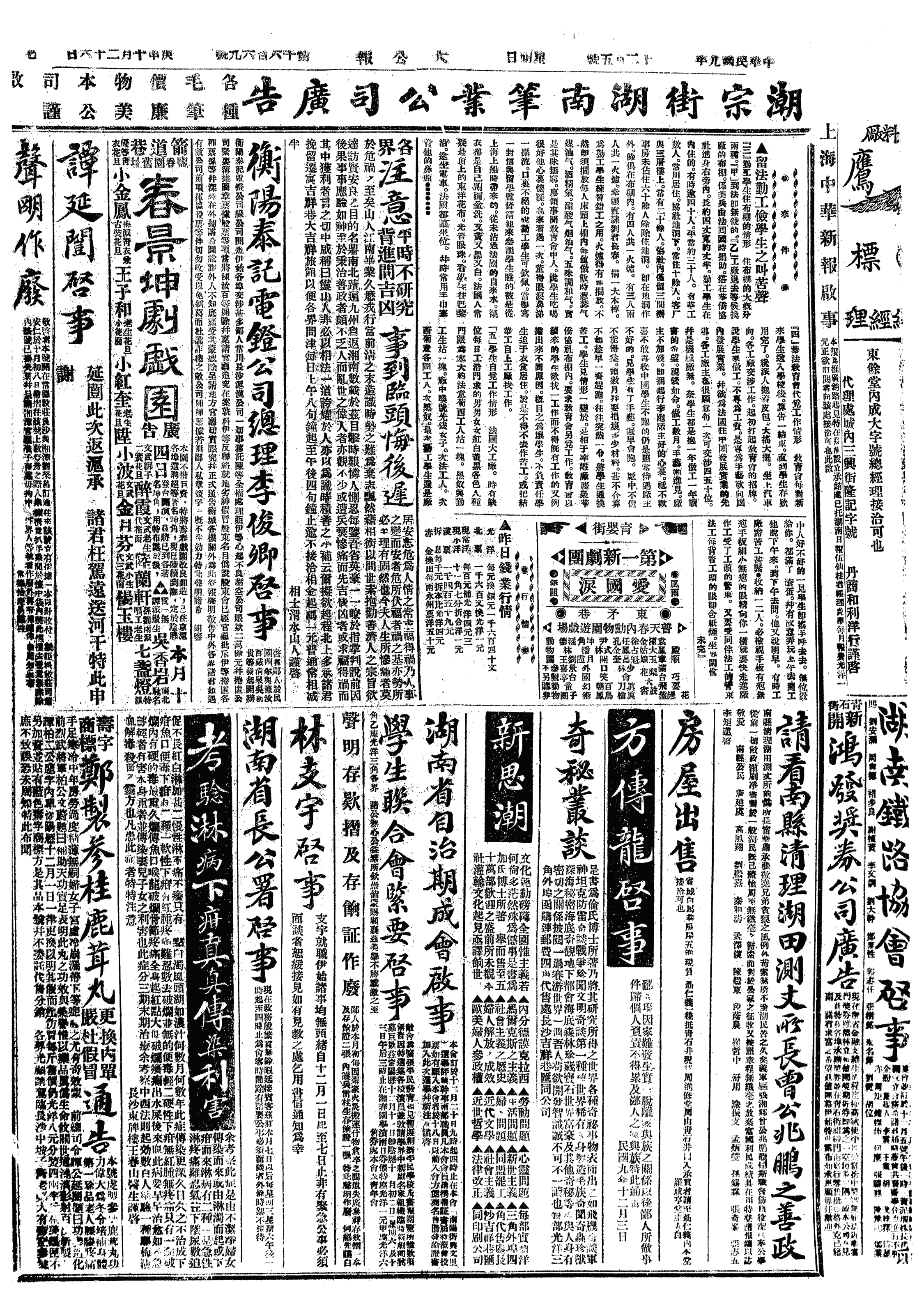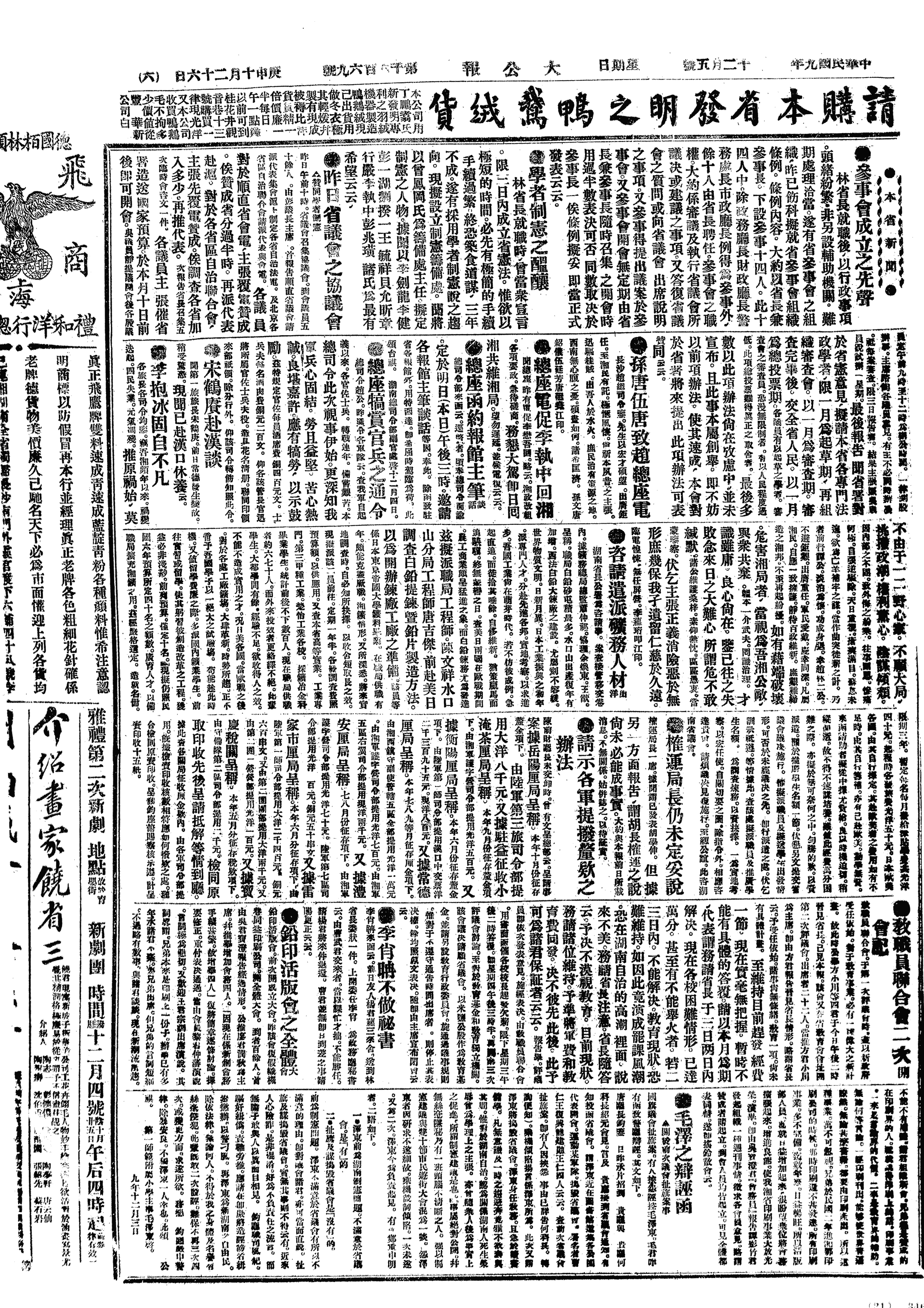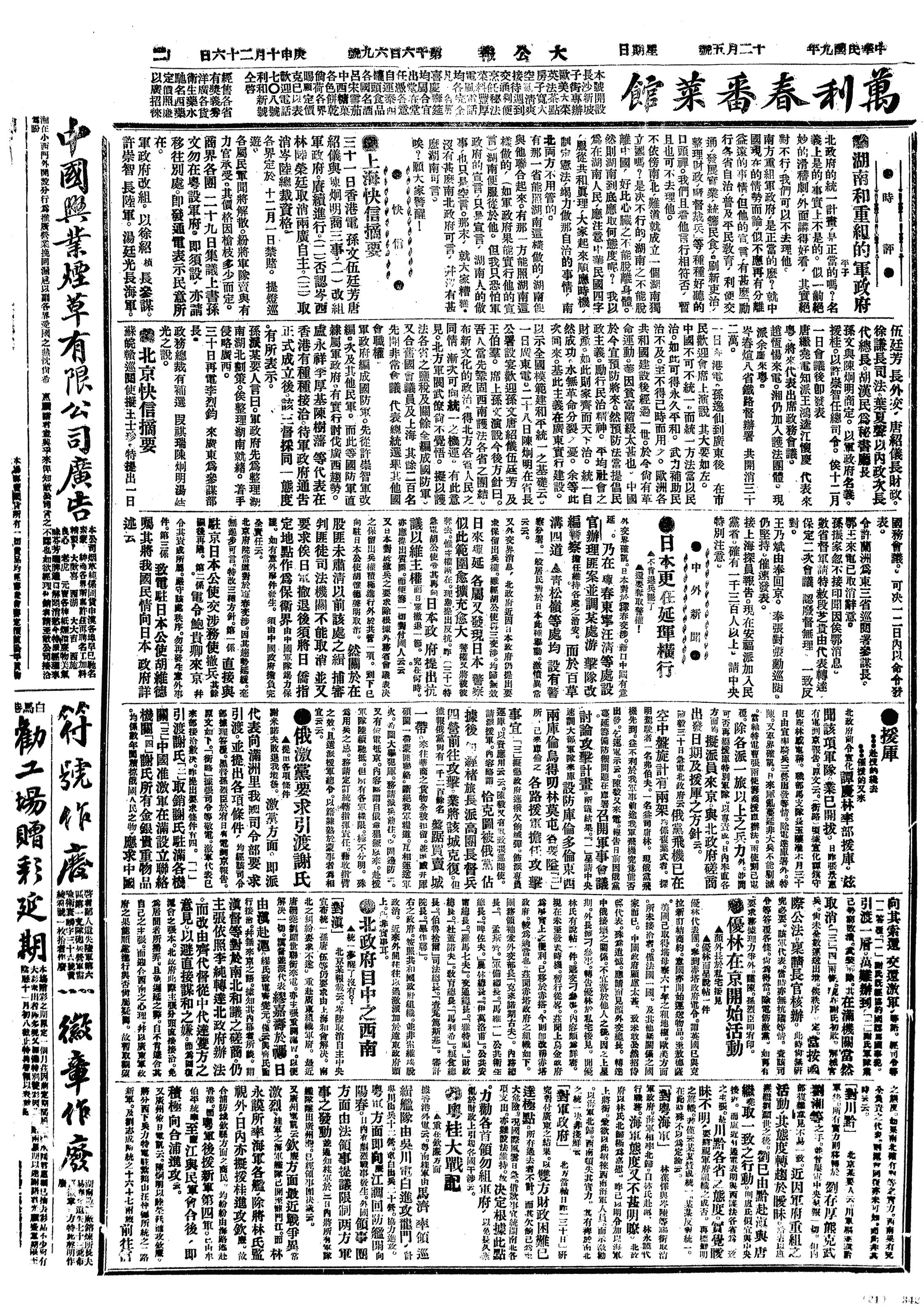 中华民国史大事记>19201205
