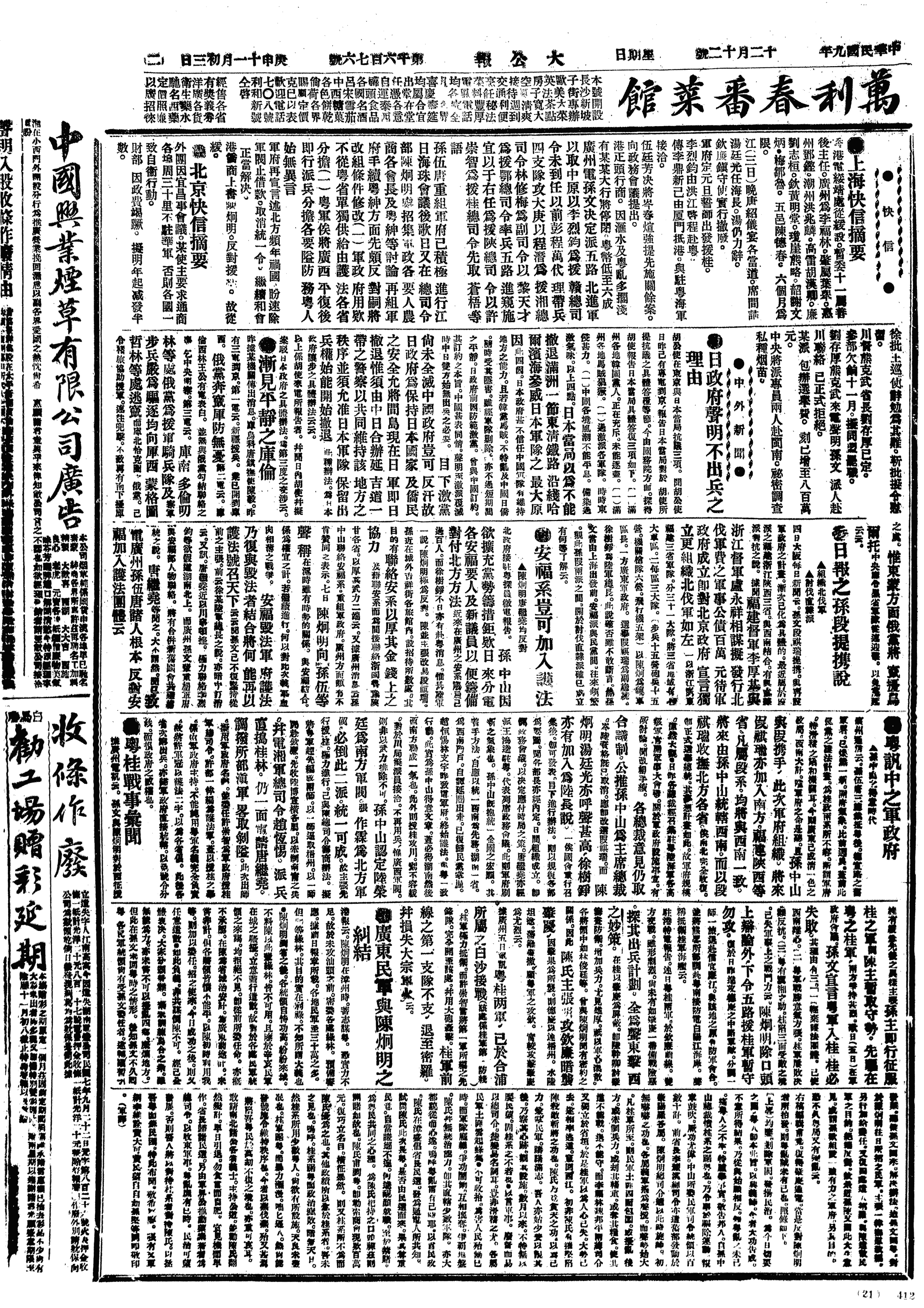 中华民国史大事记>19201212