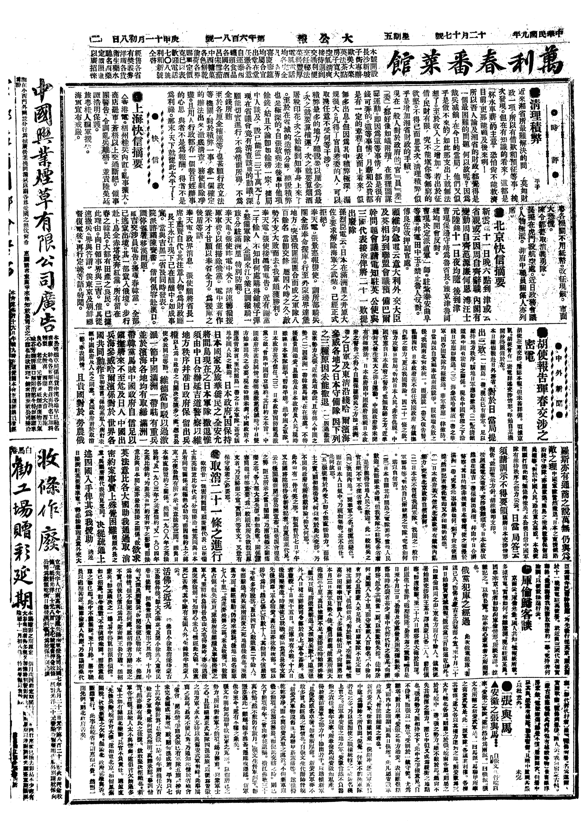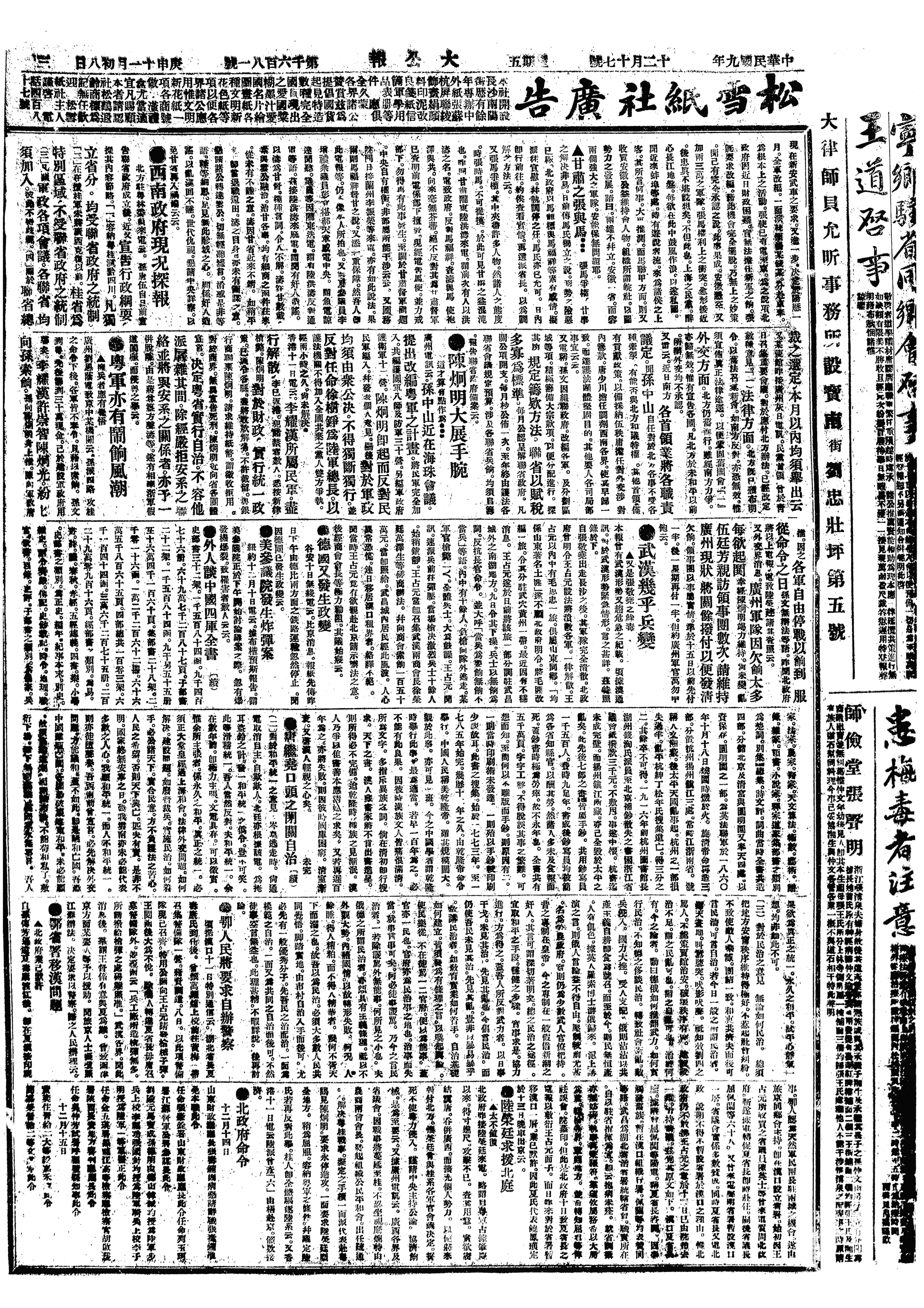 中华民国史大事记>19201217