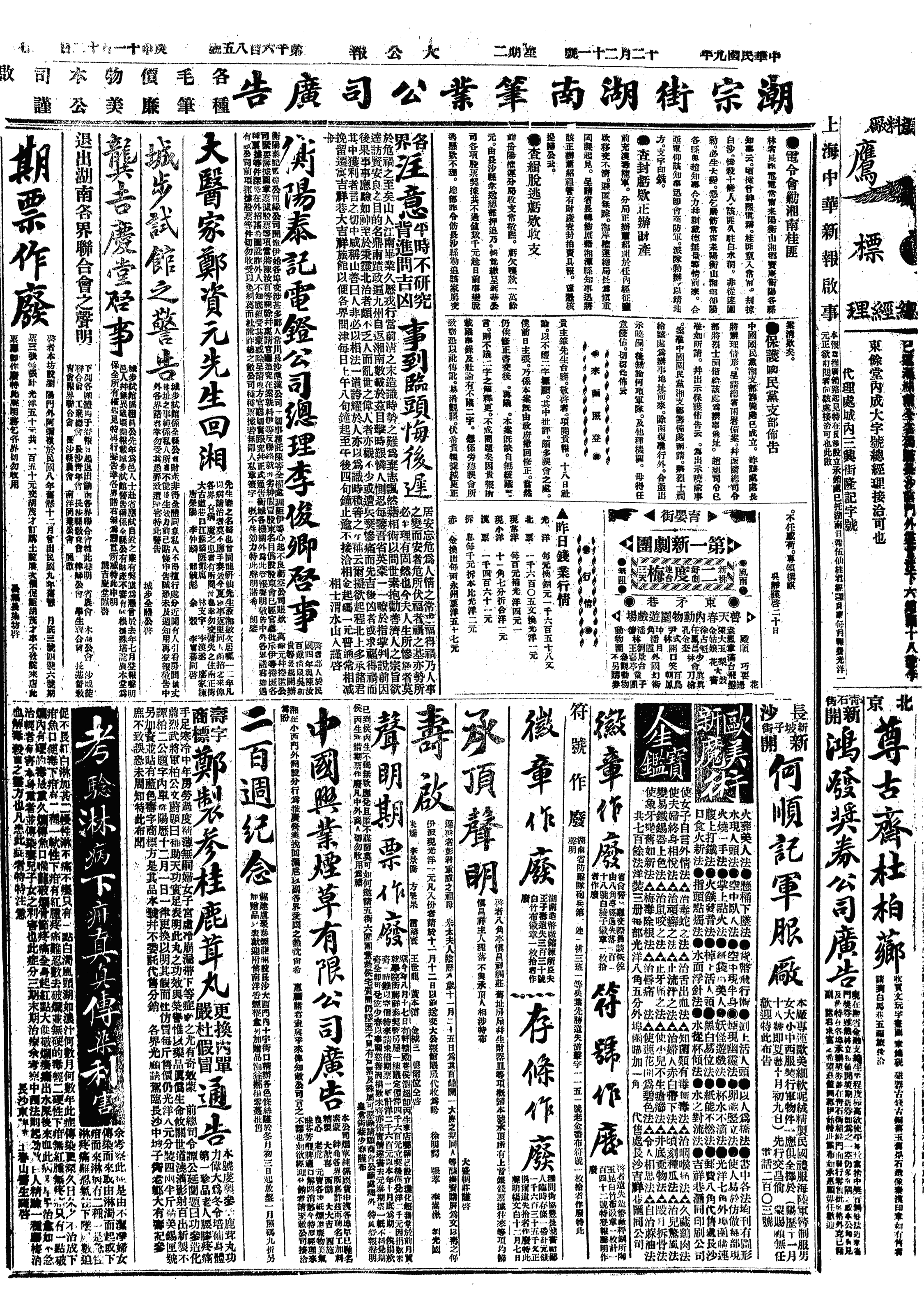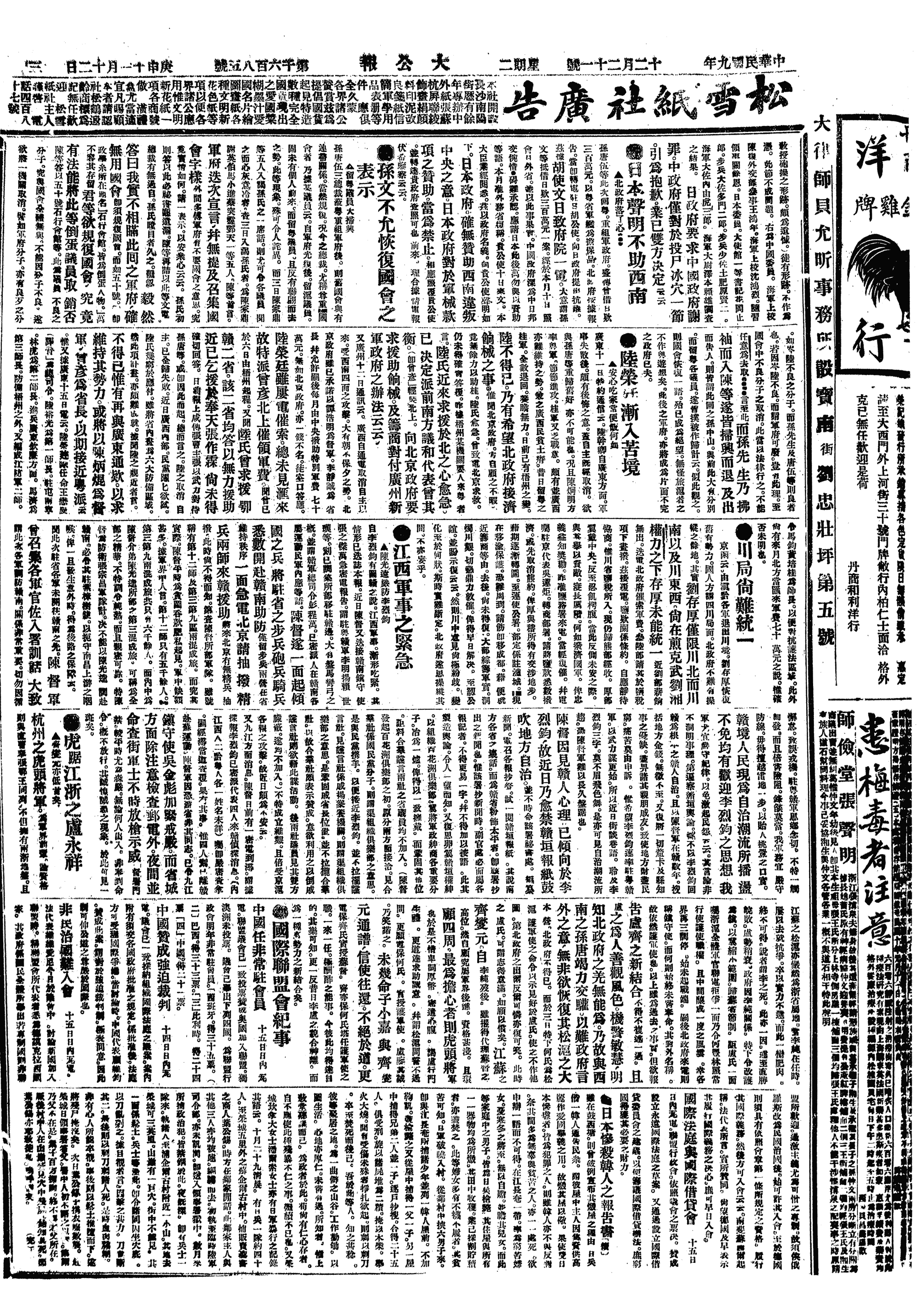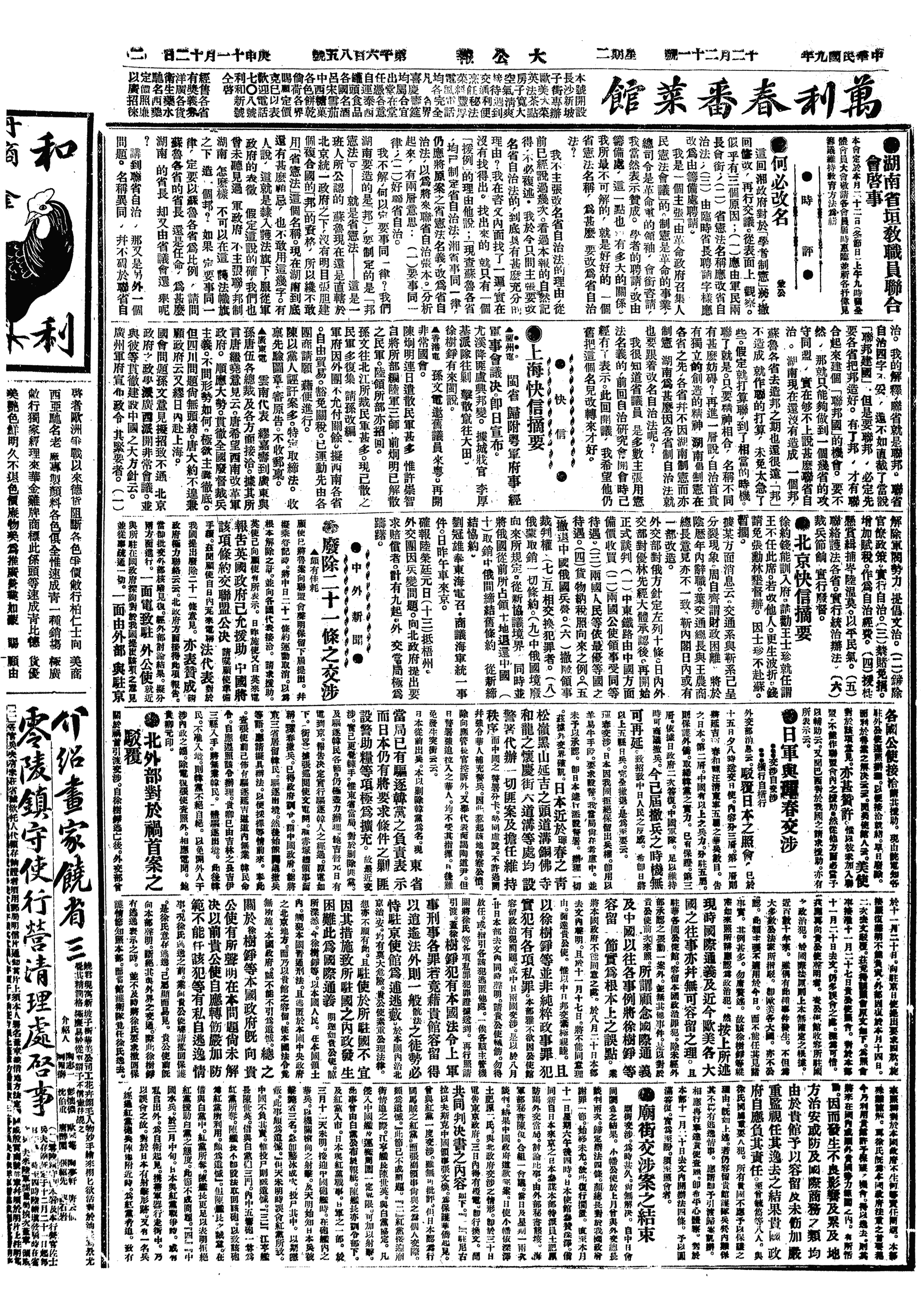 中华民国史大事记>19201221