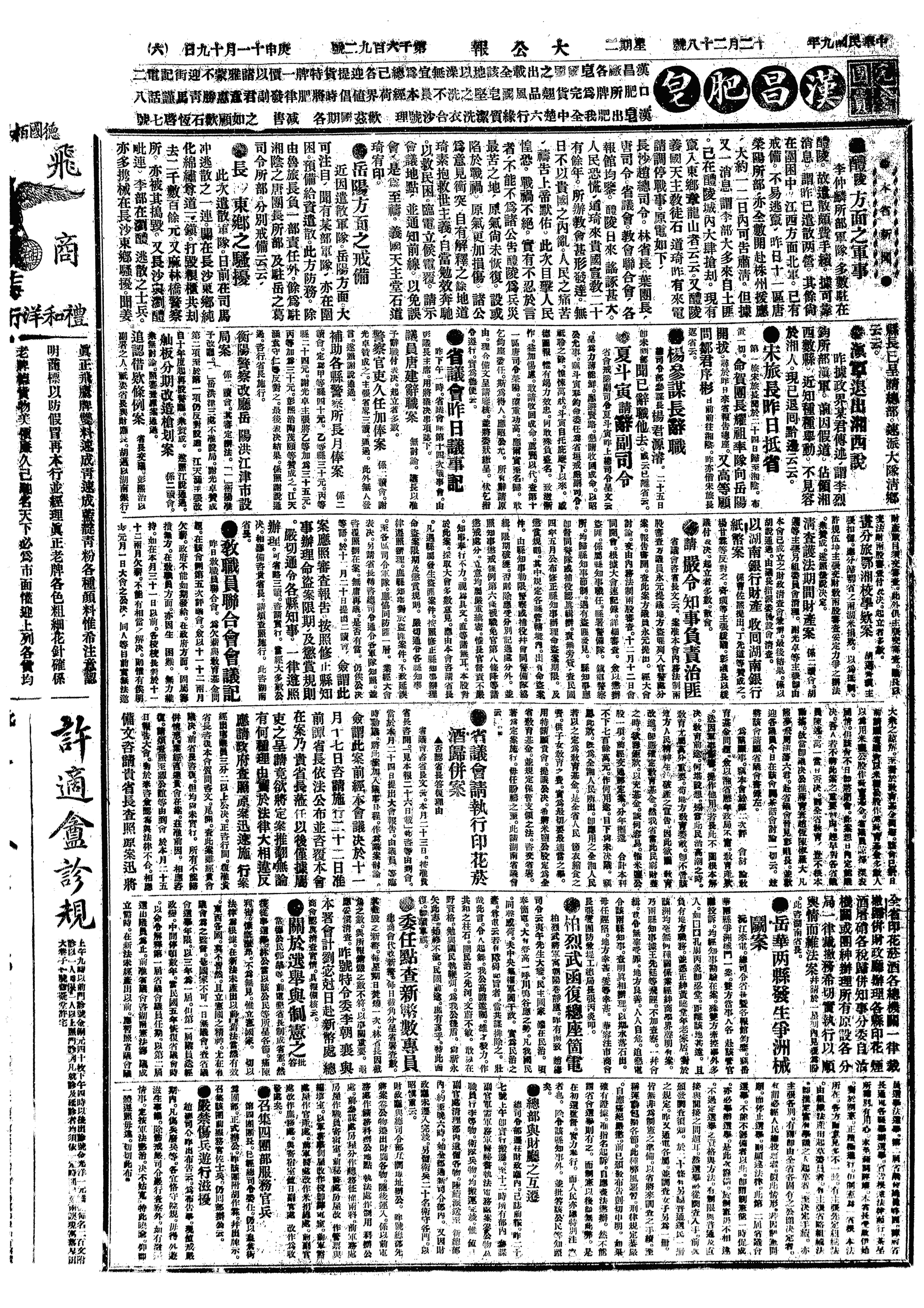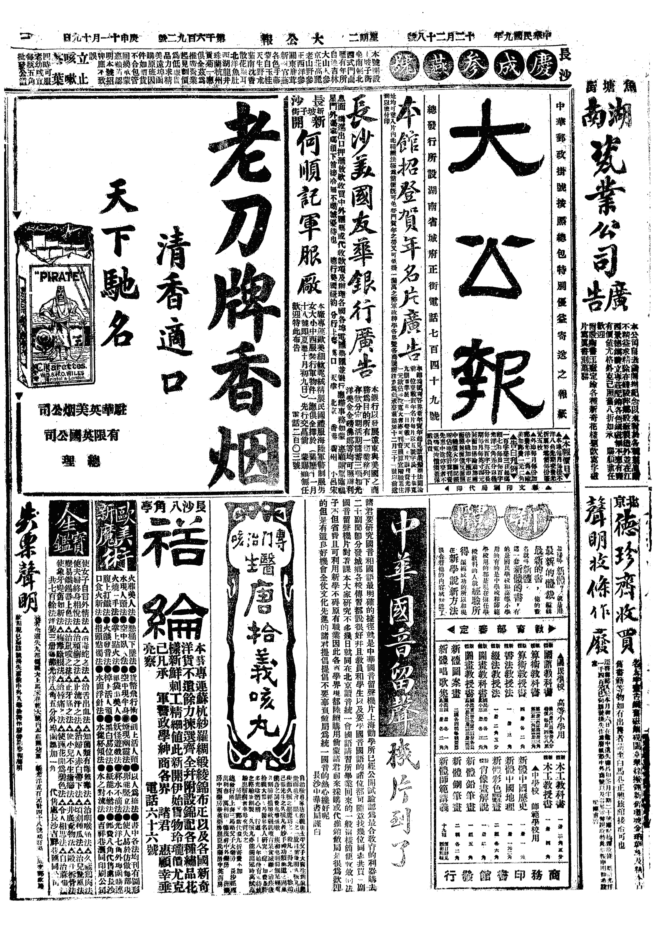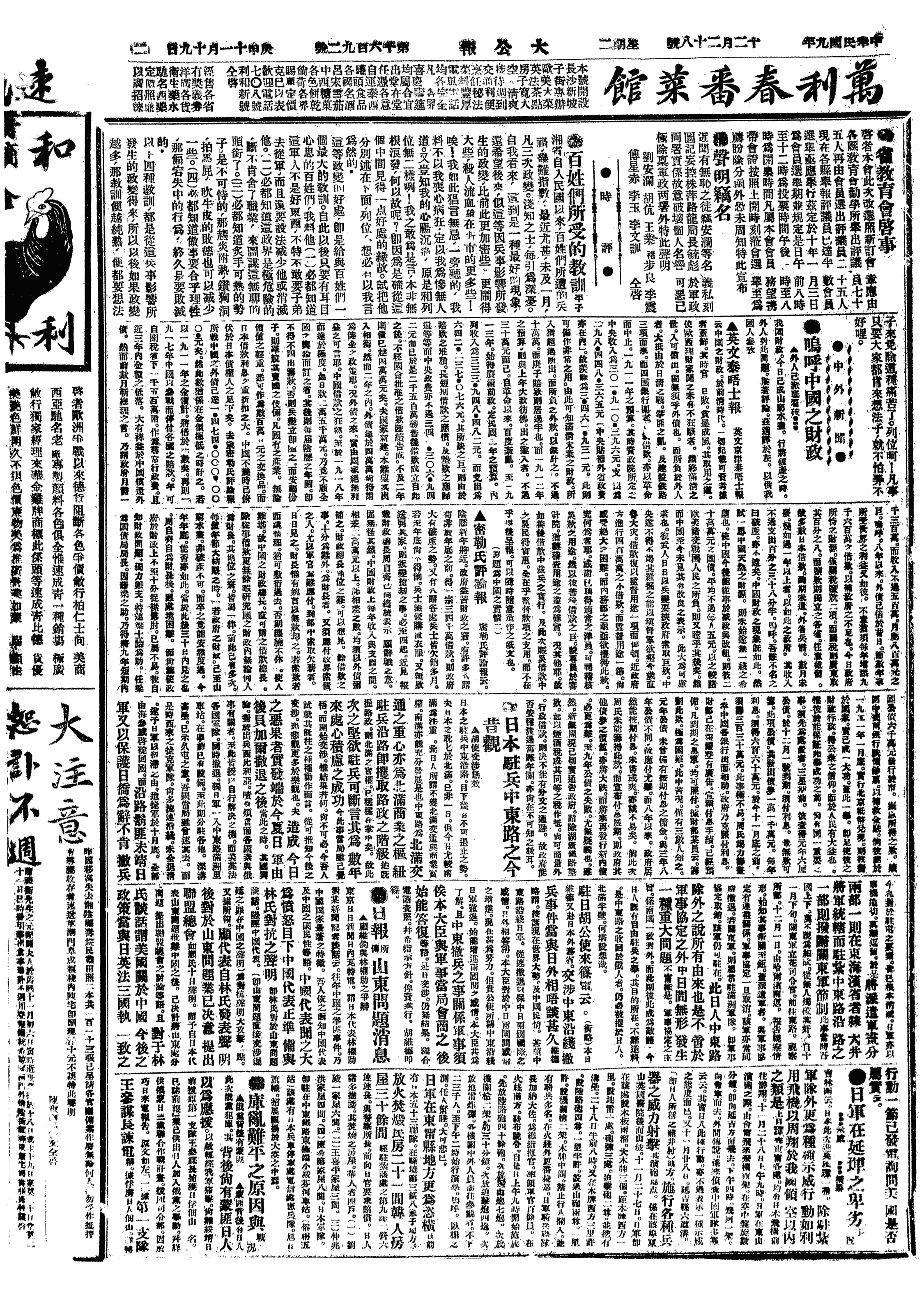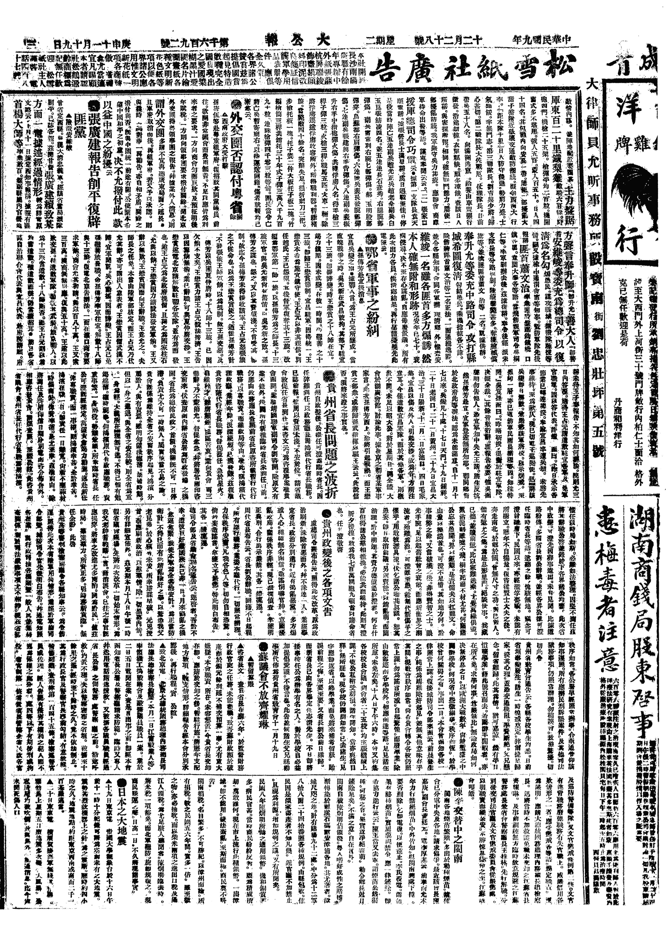 中华民国史大事记>19201228