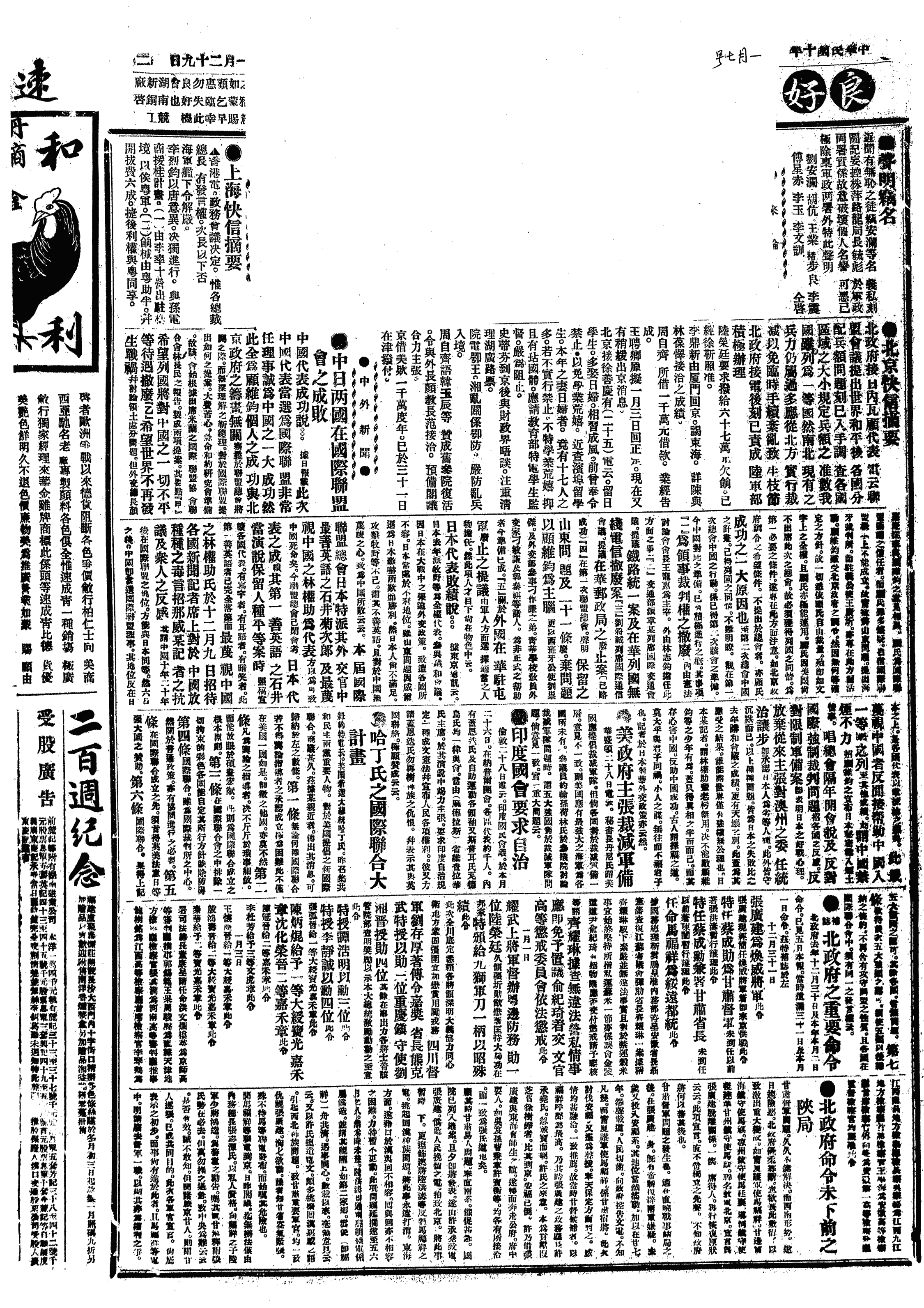 中华民国史事日志>19210107