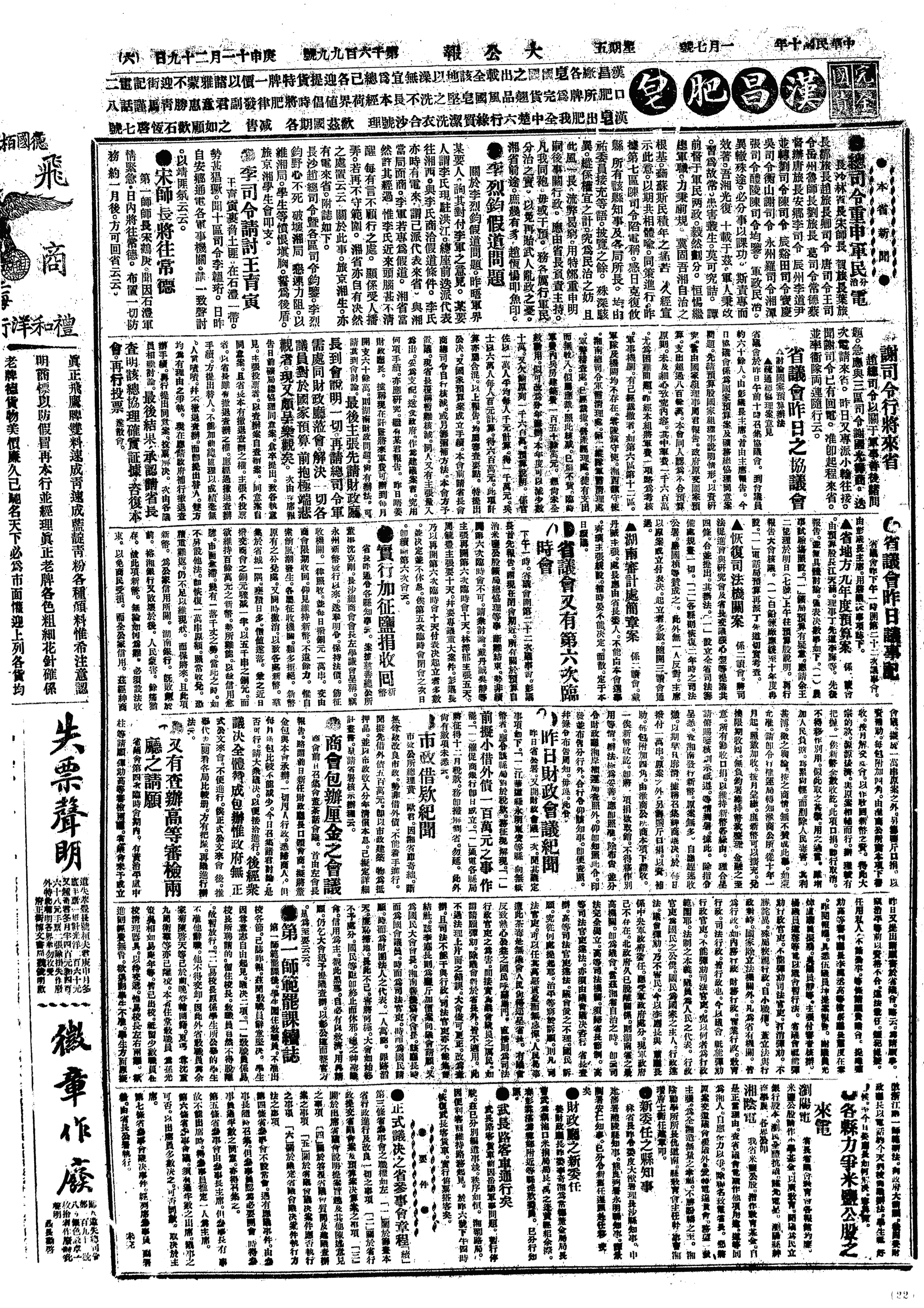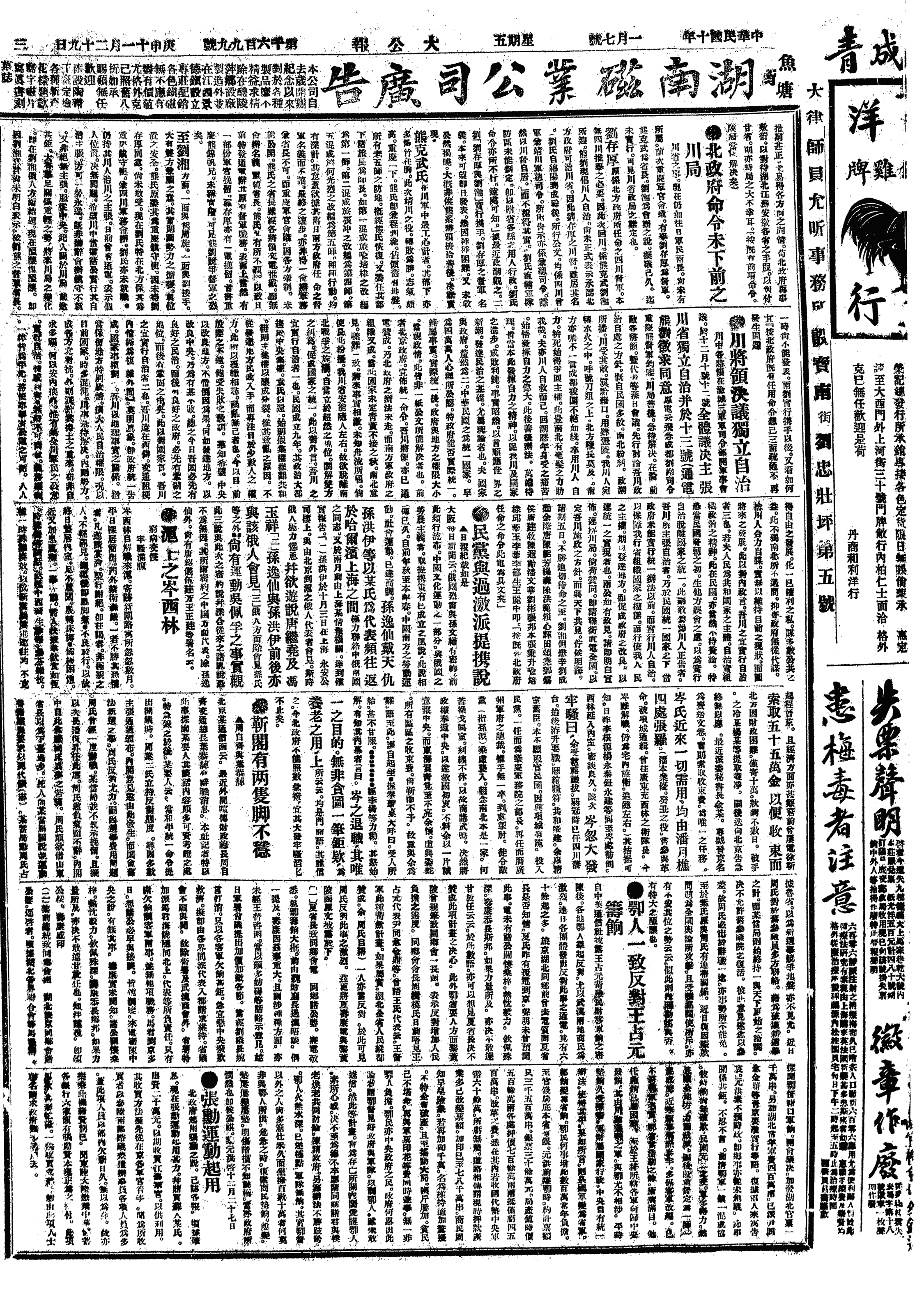 中华民国史大事记>19210107