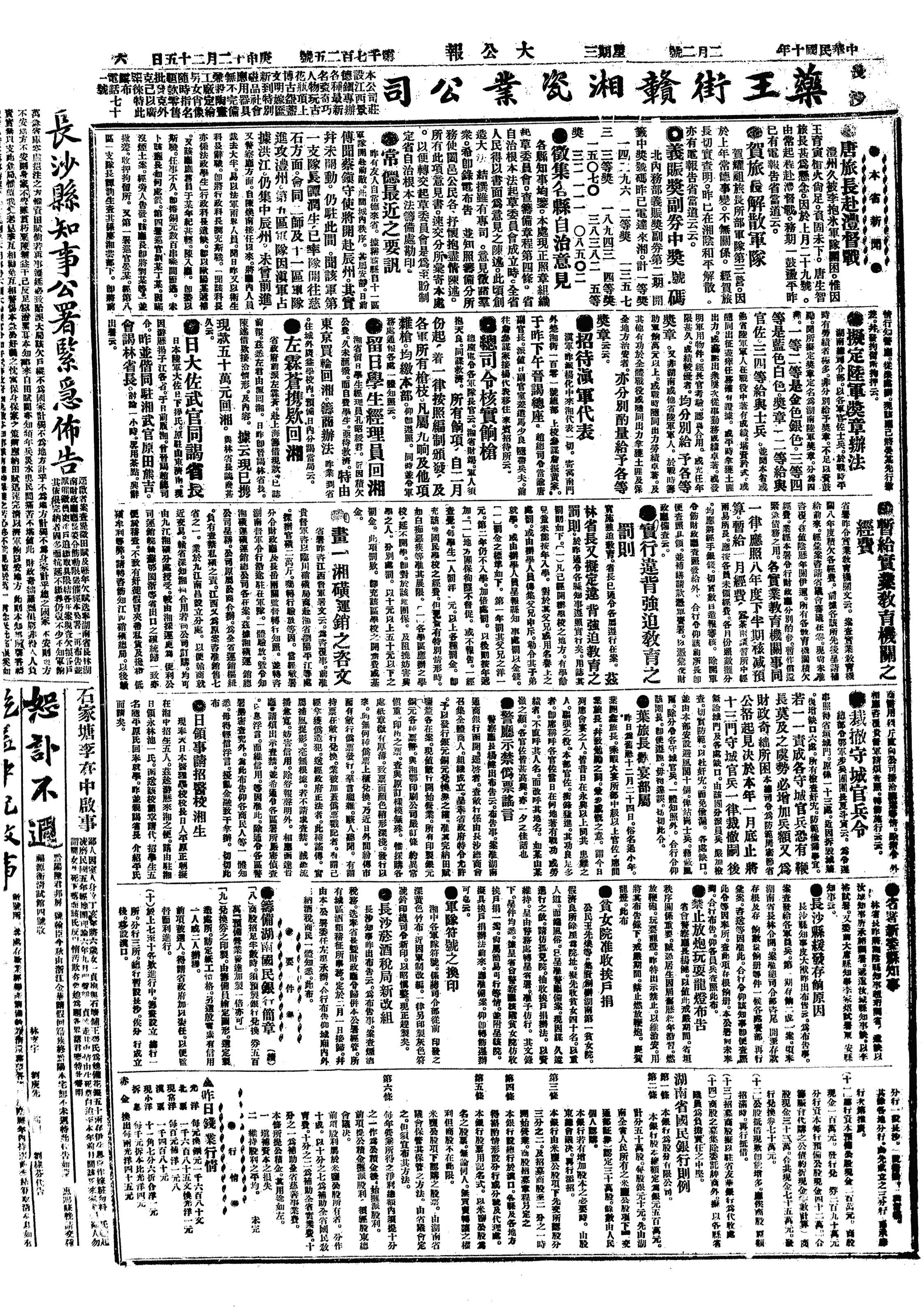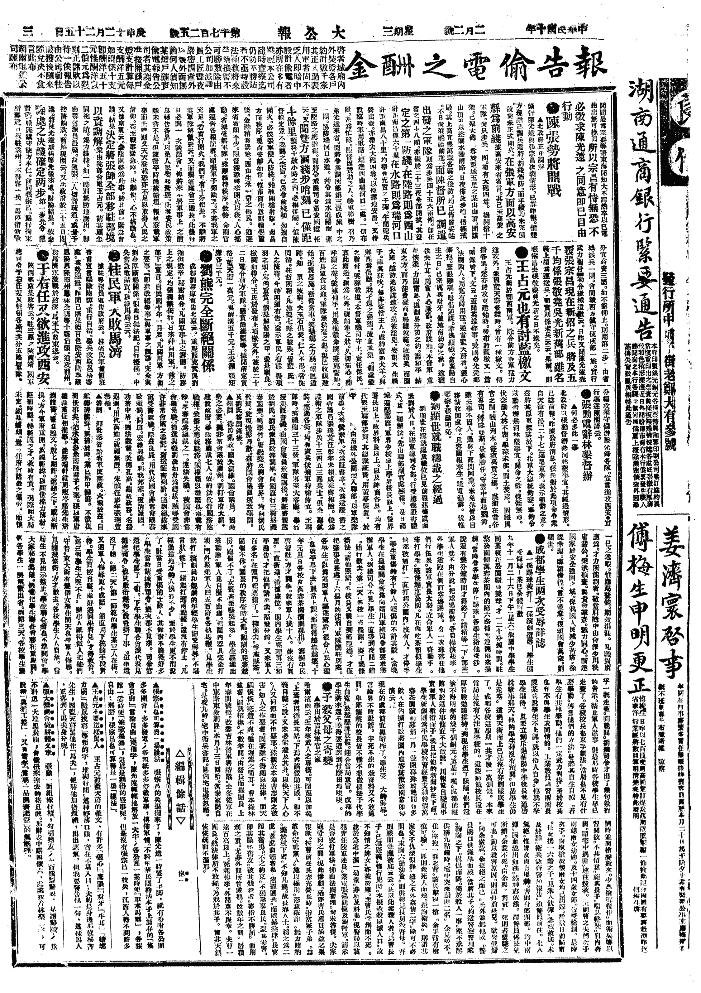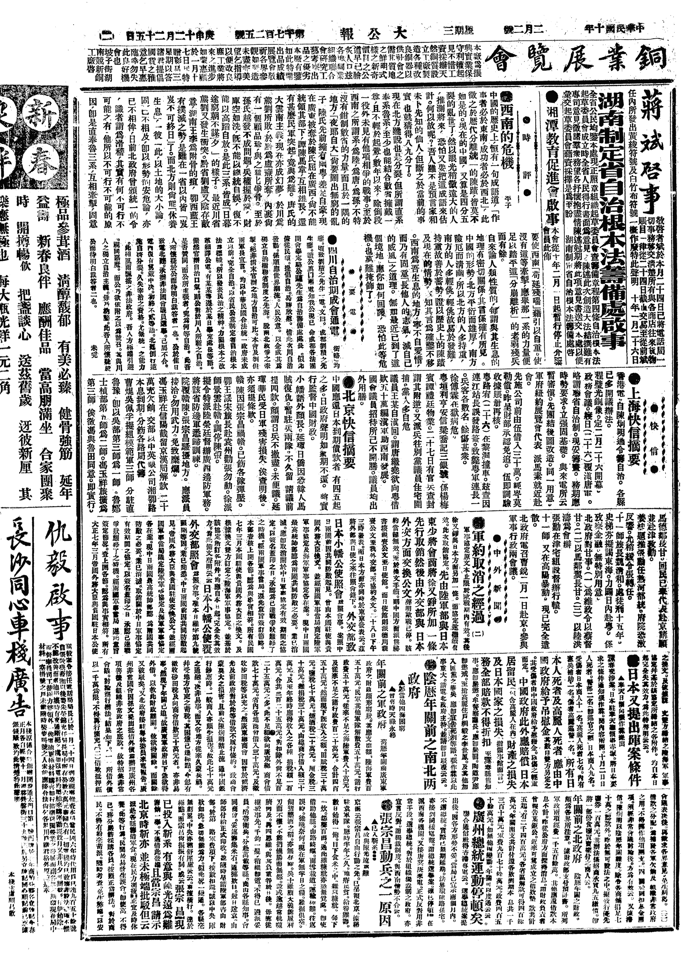 中华民国史大事记>19210202