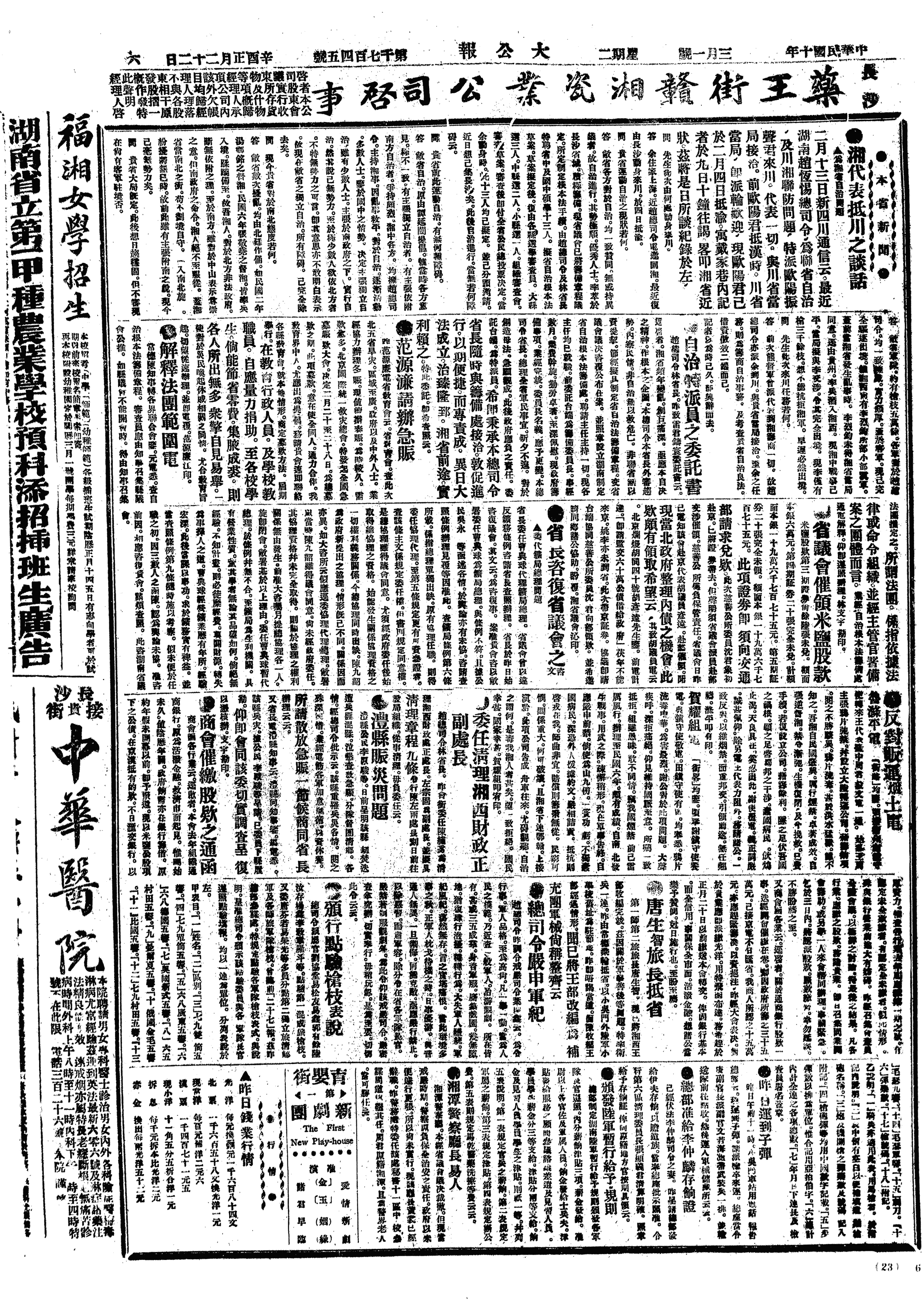 中华民国史大事记>19210301
