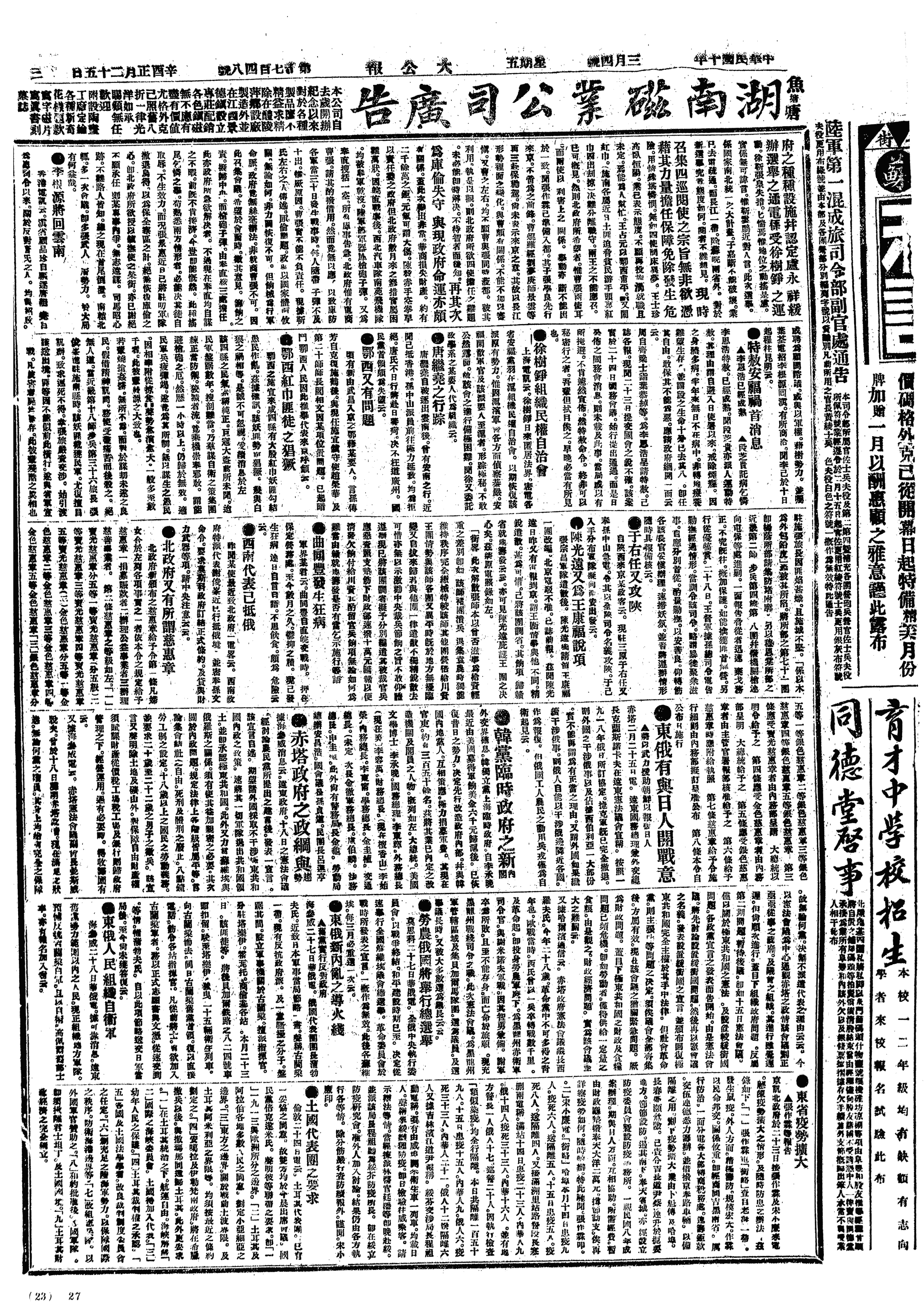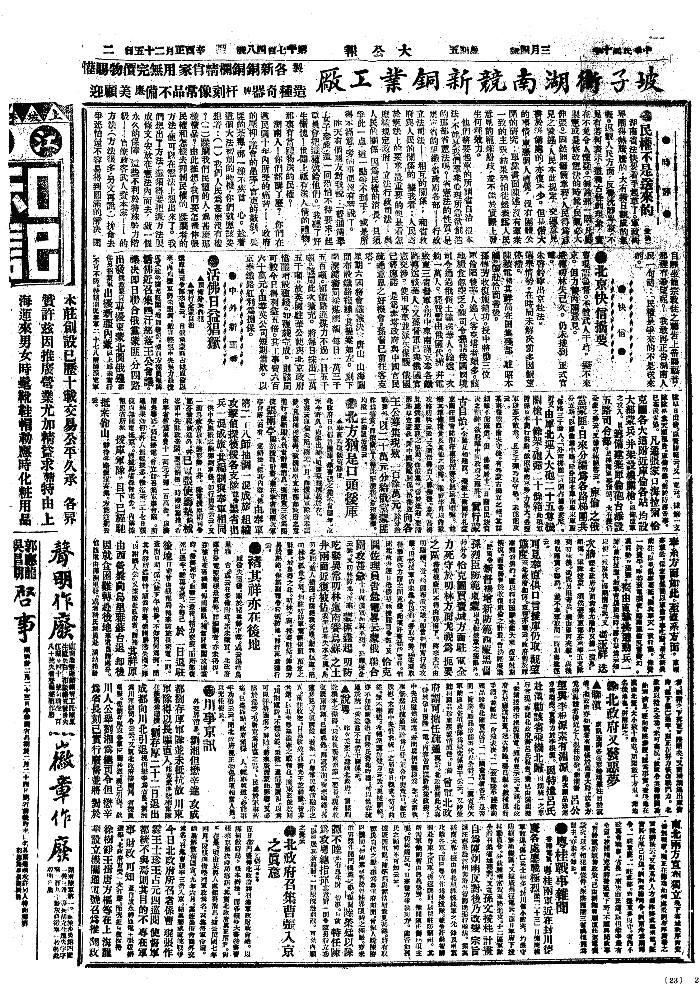 中华民国史大事记>19210304