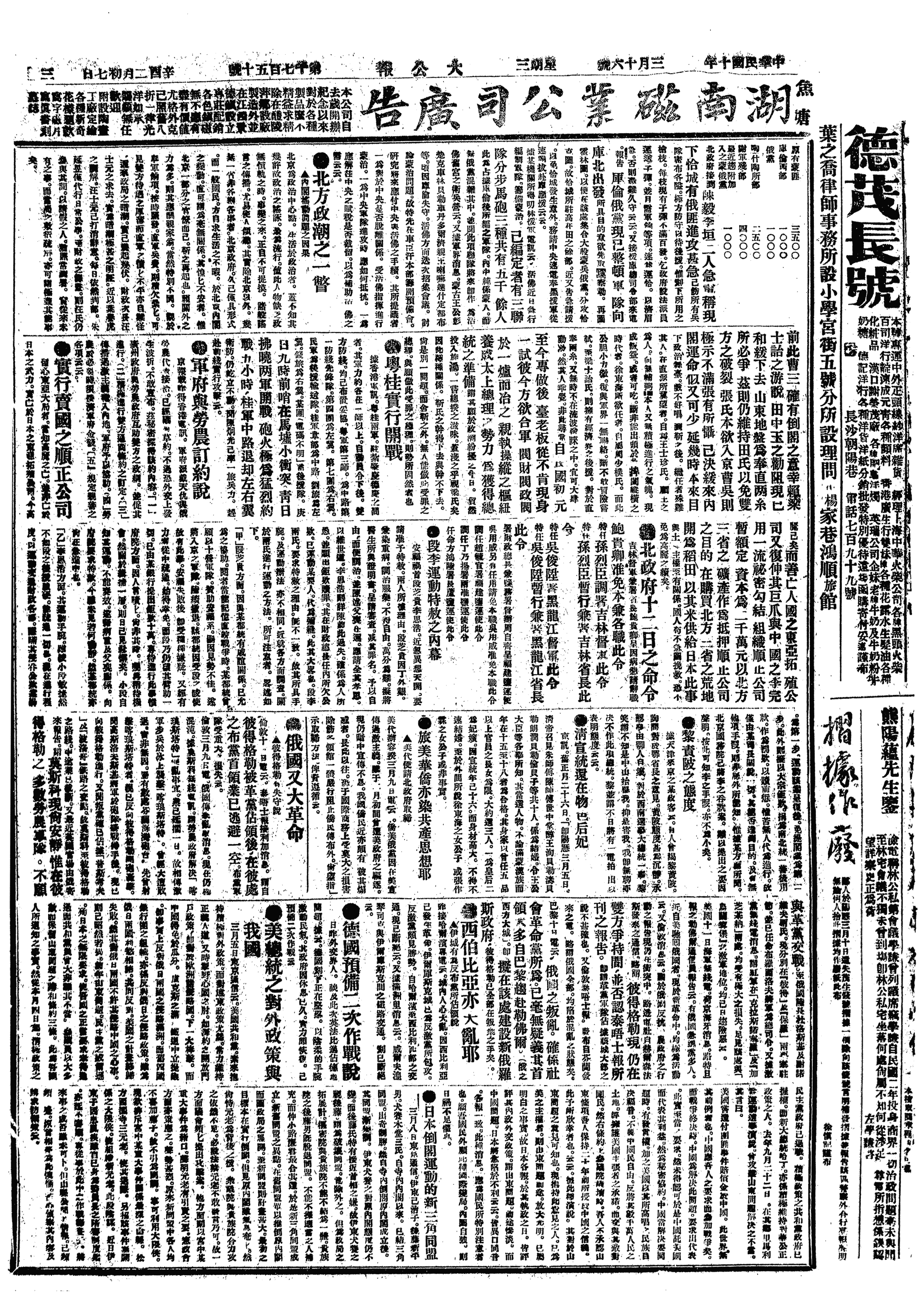 中华民国史大事记>19210316