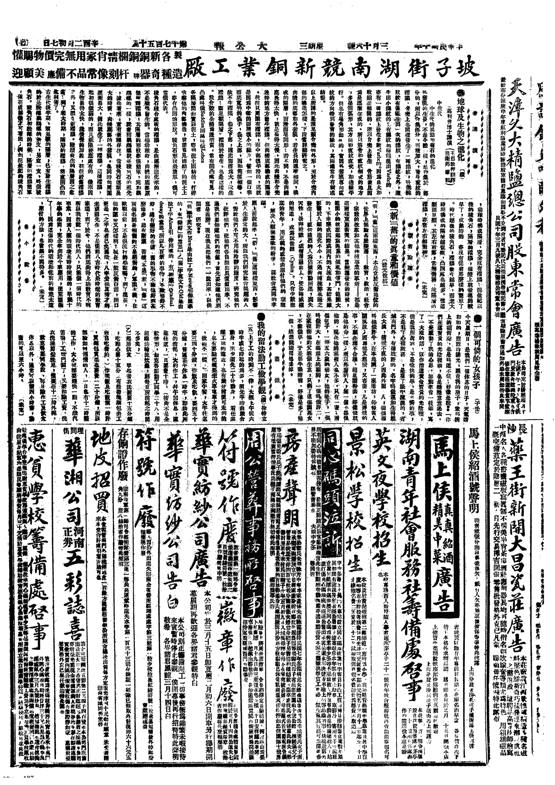 玉衡同子昇到湘潭去了。作讲演一篇。下午到修业上课。阅《改造》。