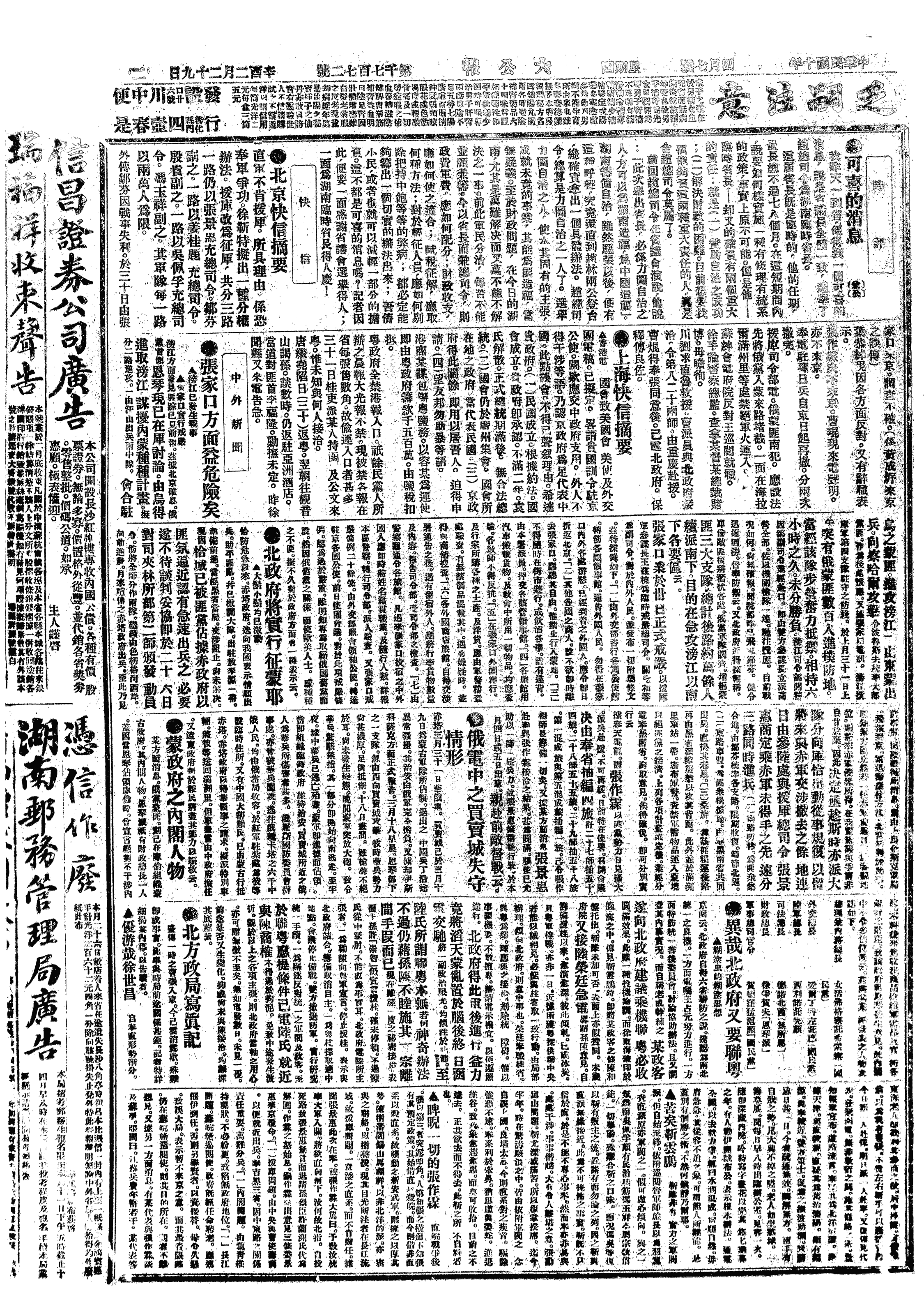 中华民国史大事记>19210407