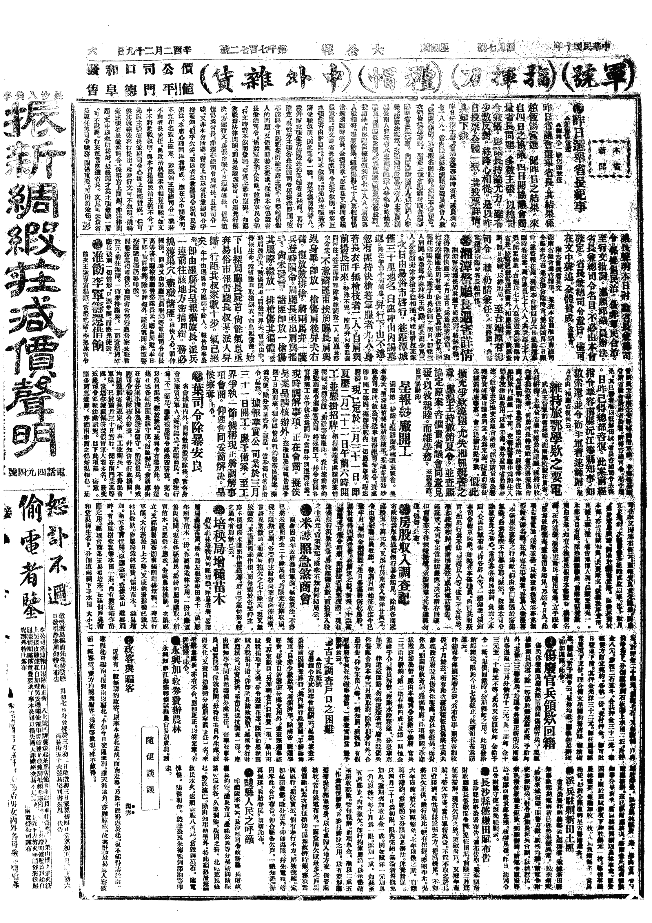 △ 赵恒惕以所谓“湖南各界”名义致电广东,反对选举总统。次日,赵恒惕又致电广州参众两院,声明不承认“非法选出”的总统。赵旋即以湘军全体军官名义通电反对。19日,赵恒惕又拍十万火急电致孙中山及国会,谓国会不足法定人数,选举总统违法。