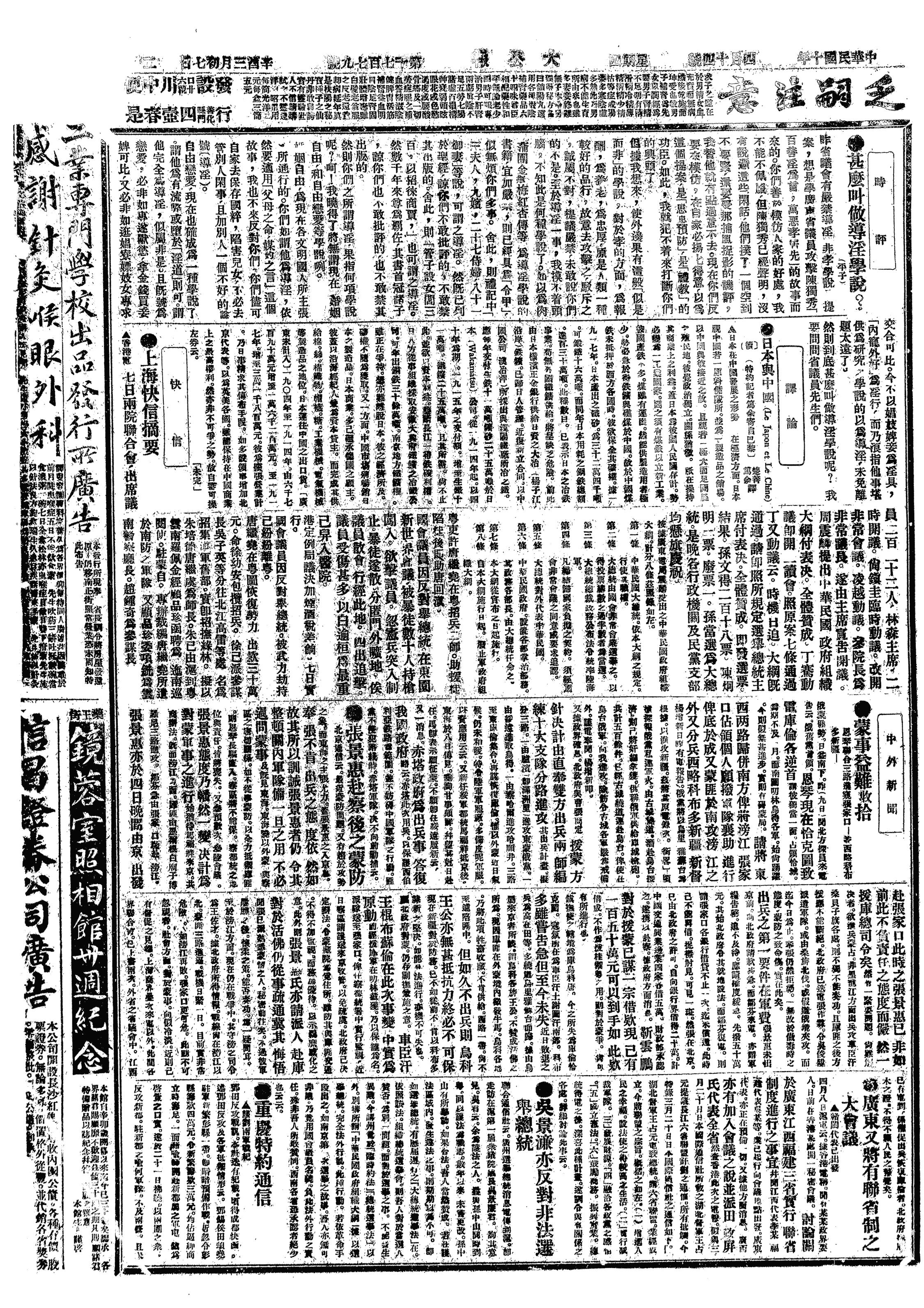 中华民国史大事记>19210414