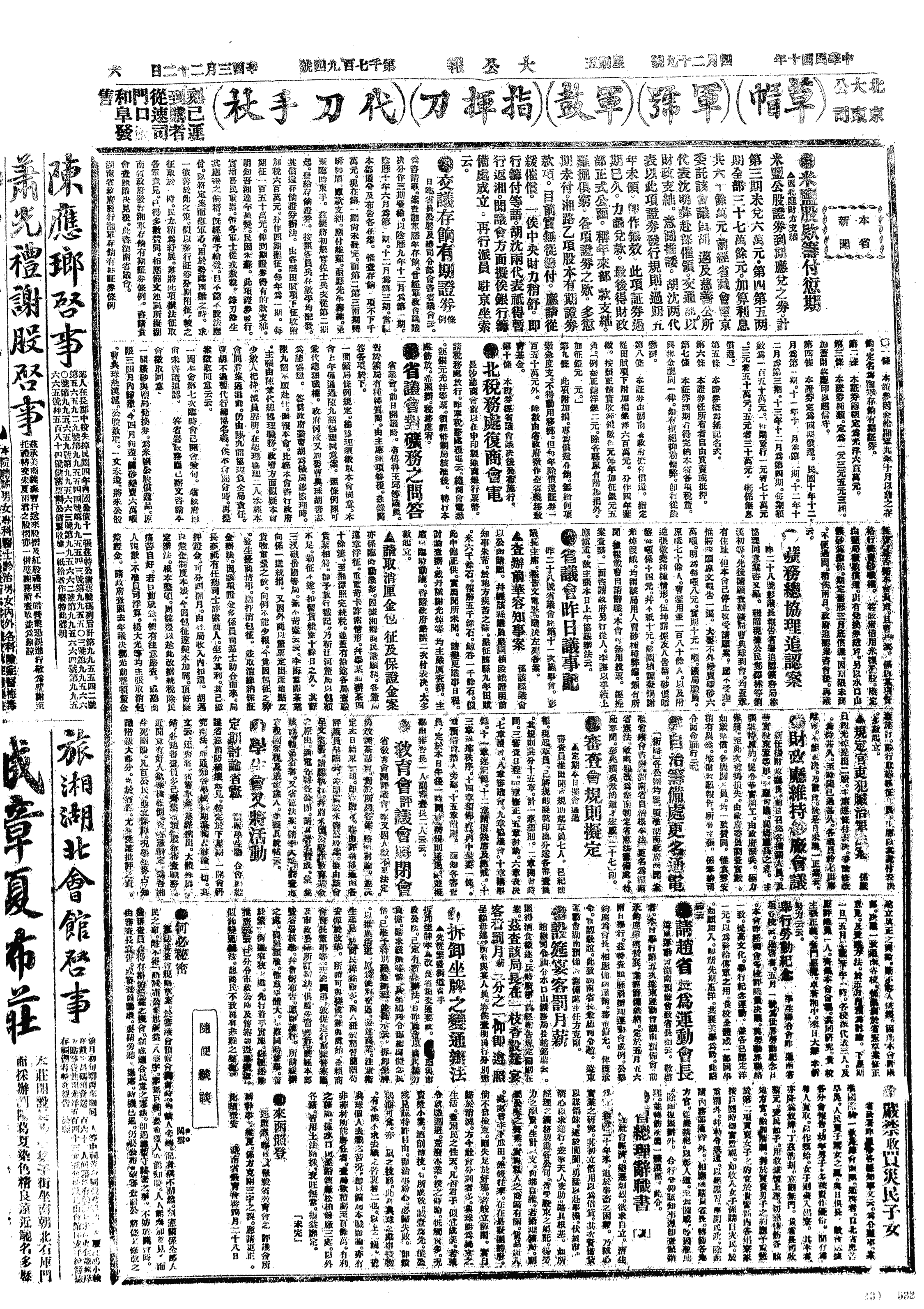 湖北官钱局将200万张纸张恶劣印刷不明,已报请作废的新式小票擅自动用,以致商民发生纠葛,是日省议会通过查办官钱局案。