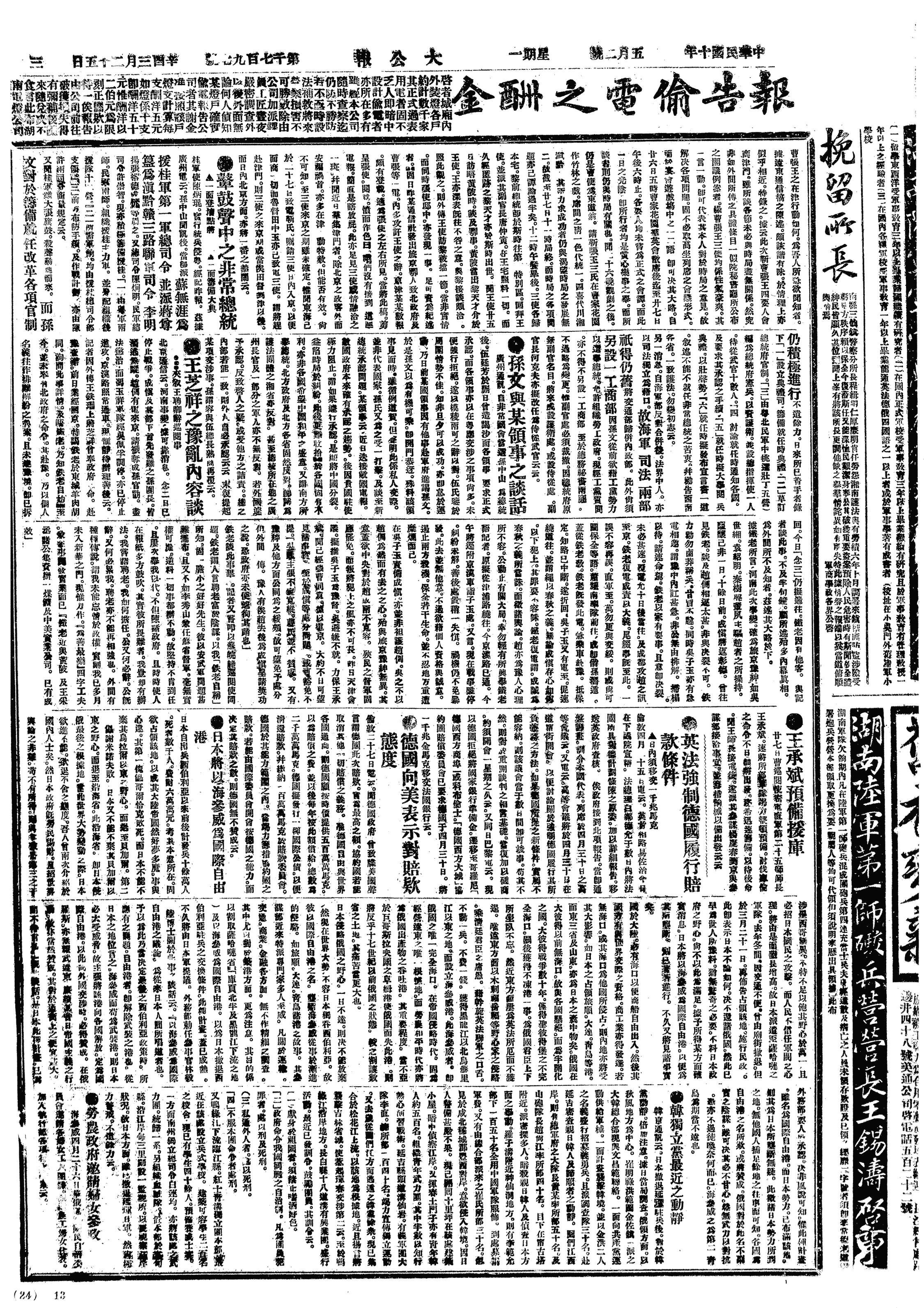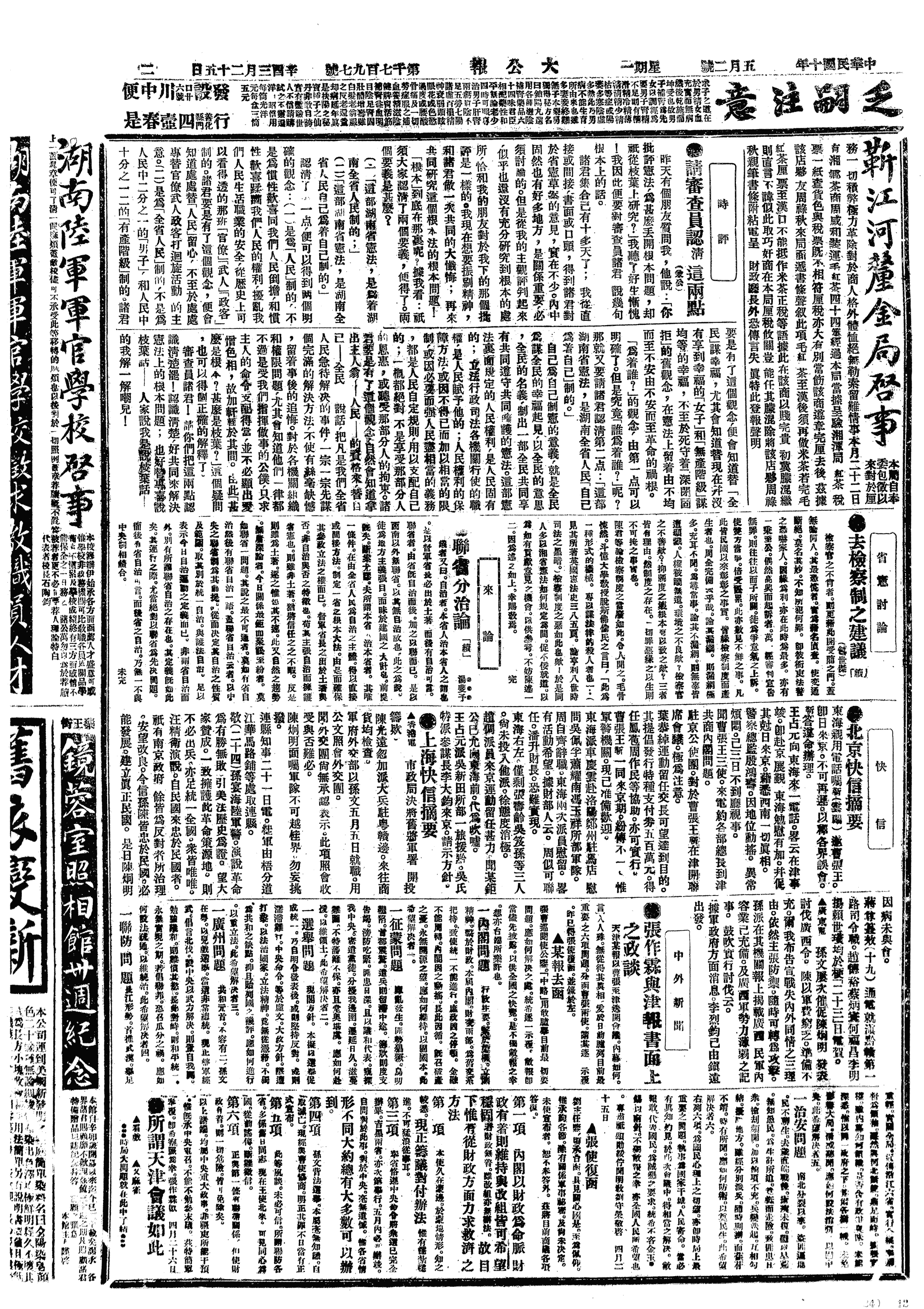 中华民国史大事记>19210502