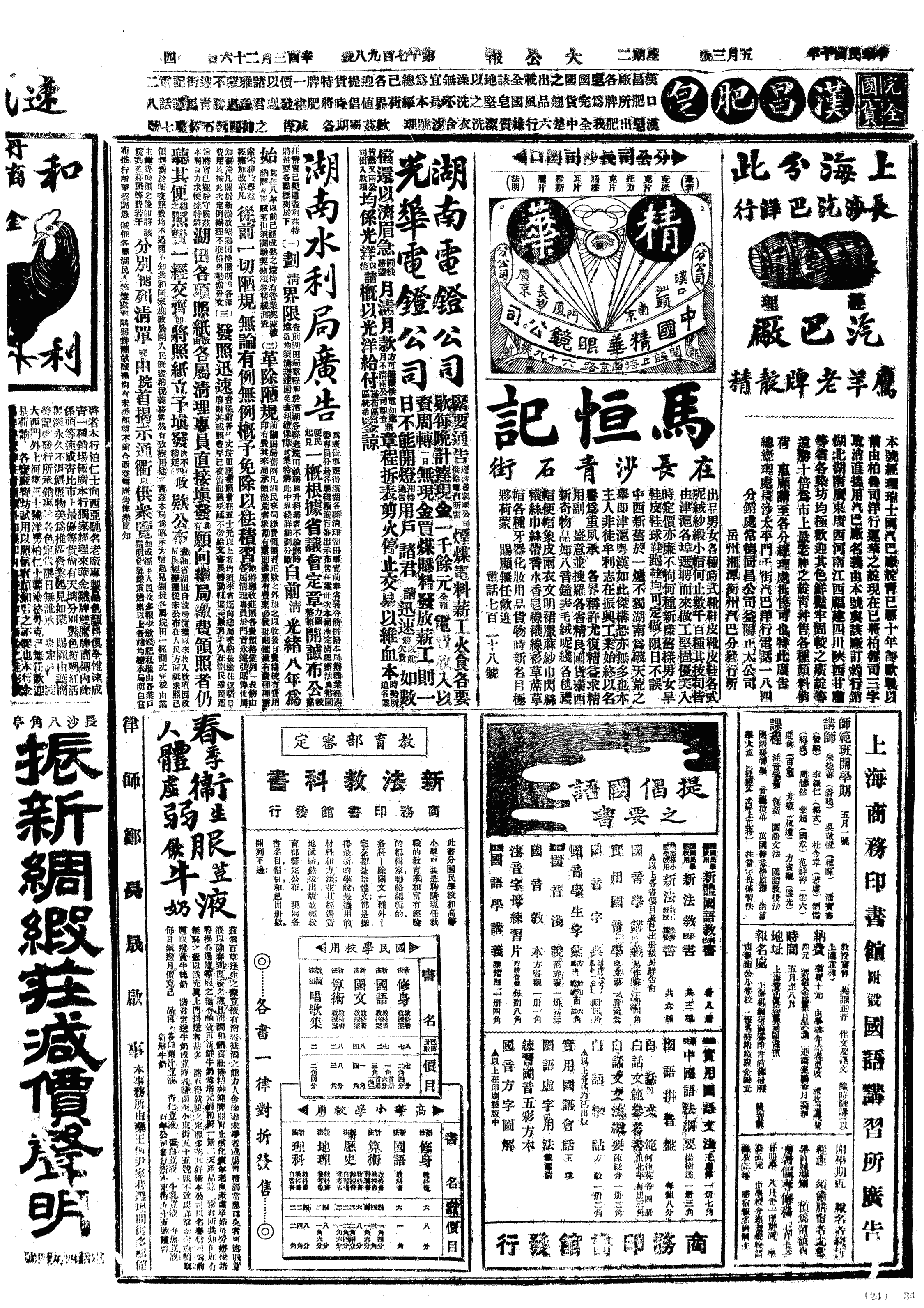是日六钟后,船将至汉口,七时半到汉口。予同术伯、王文潜上岸,住法界第二宾馆特别房间,每日四元。