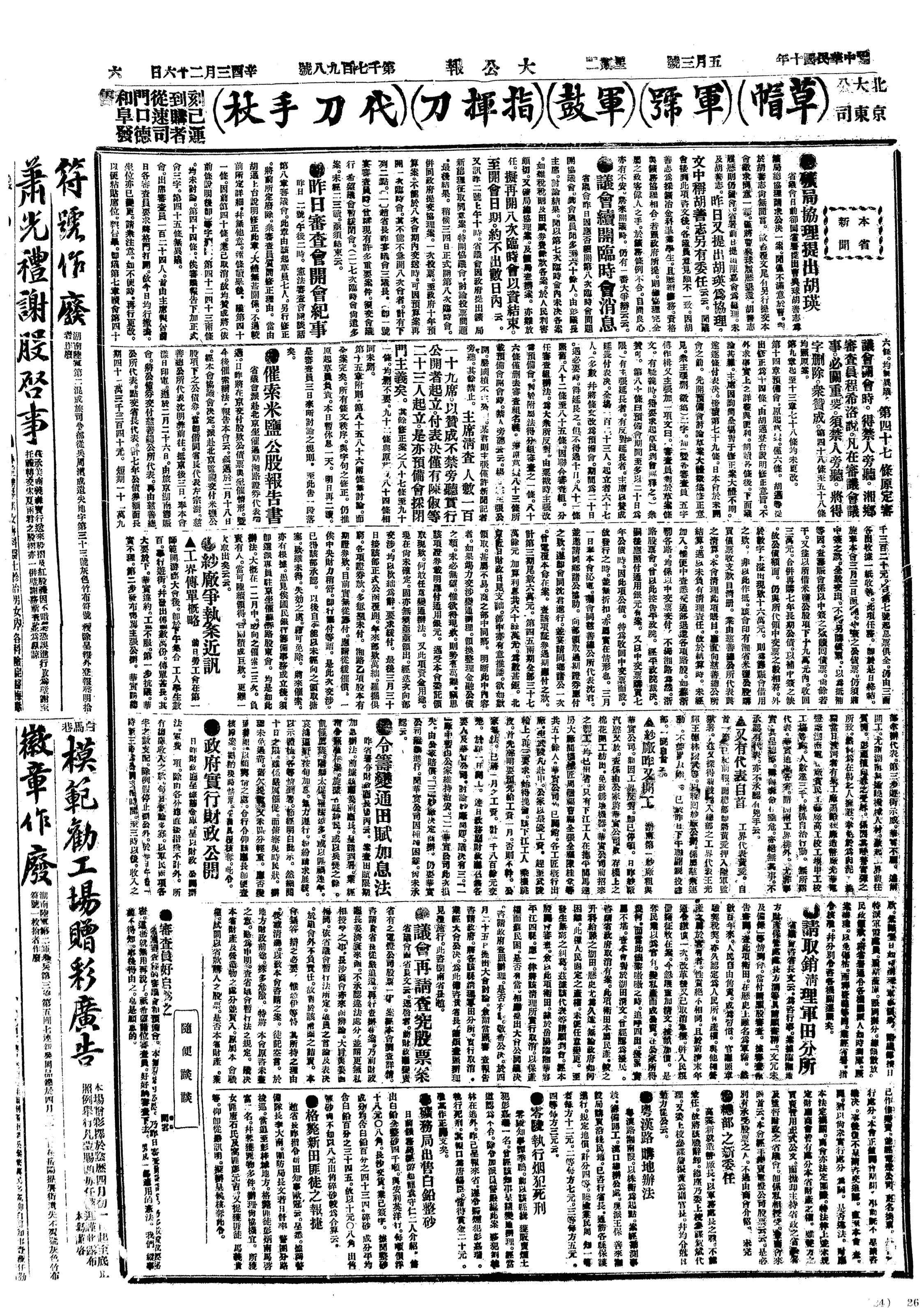 民国文件目录-繁体>19210503