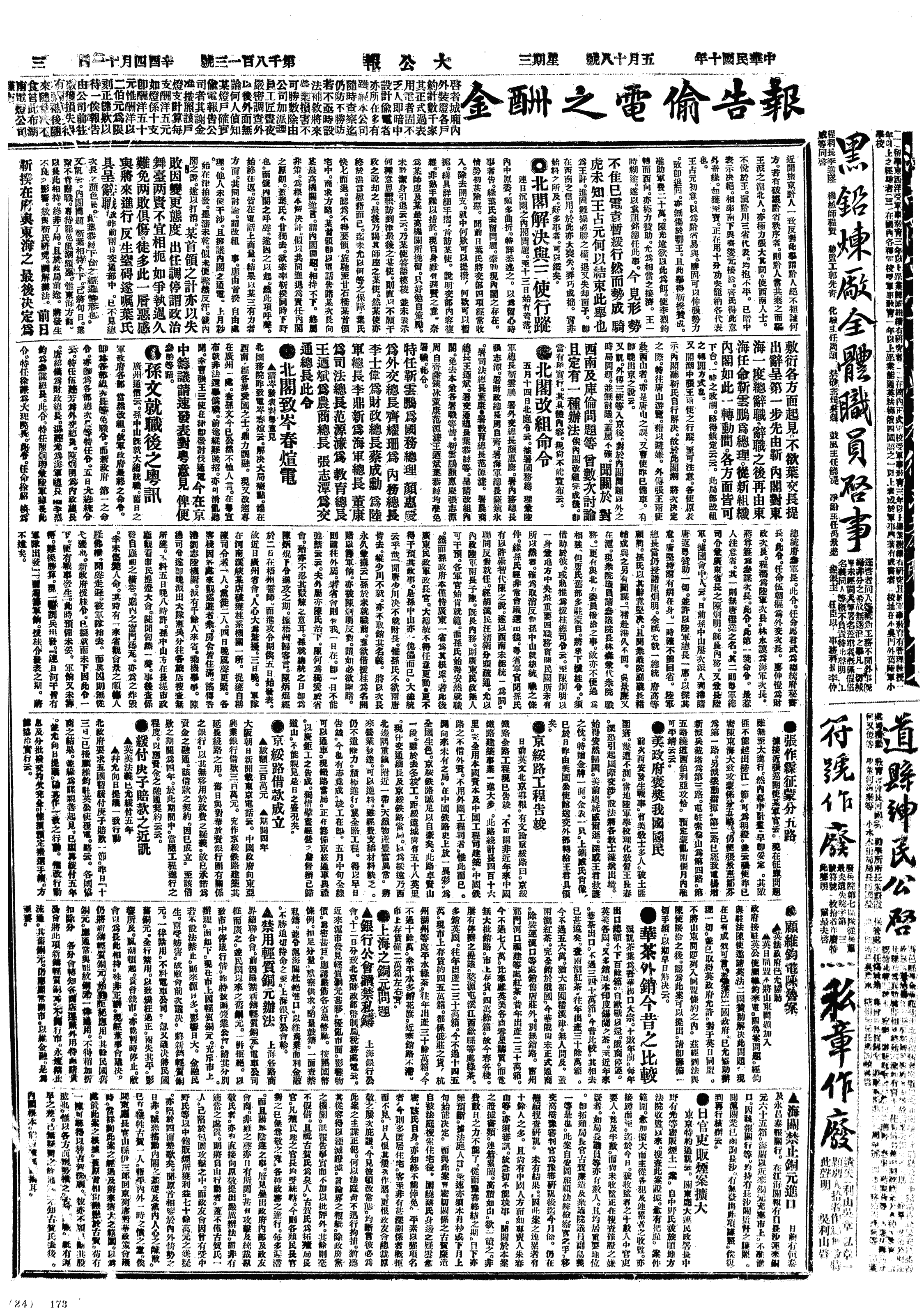 中华民国史事日志>19210518