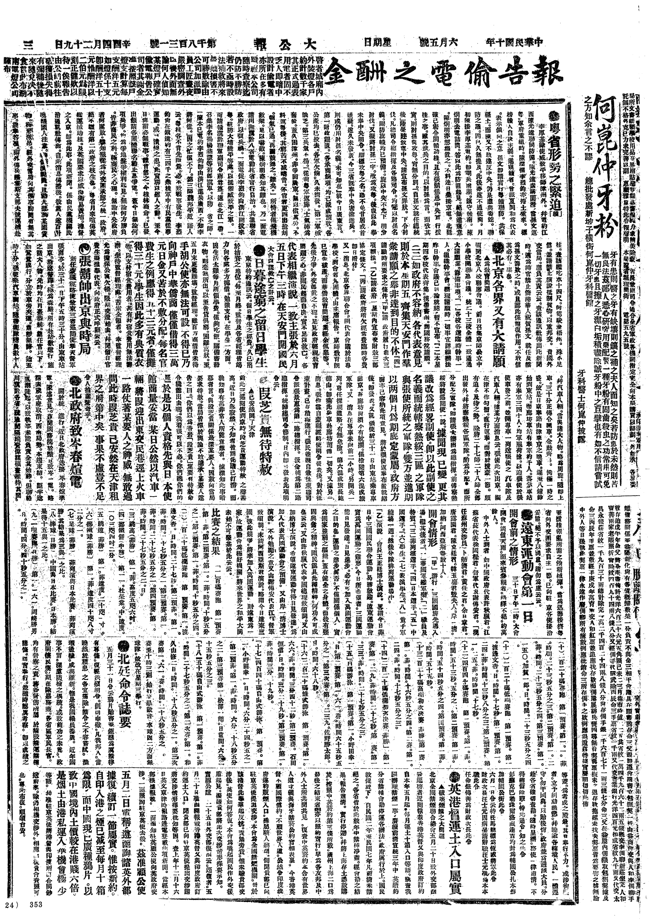 中华民国史大事记>19210605