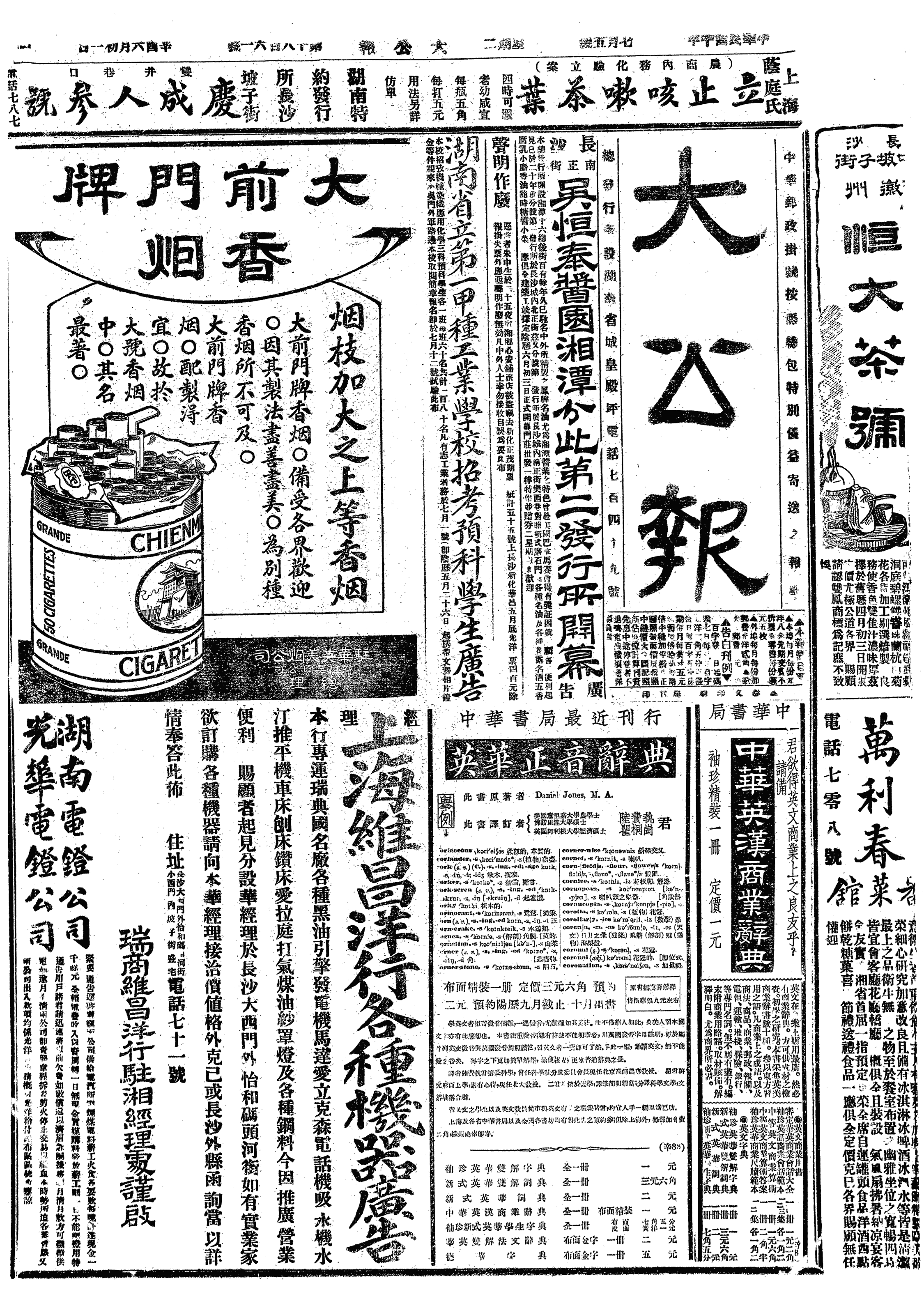 南洋侨商黄奕柱与史量才等创办的中南银行在上海正式开业,资本2000万元,先收500万元,聘胡笔江为总经理,设总行于上海,在各地设分行。