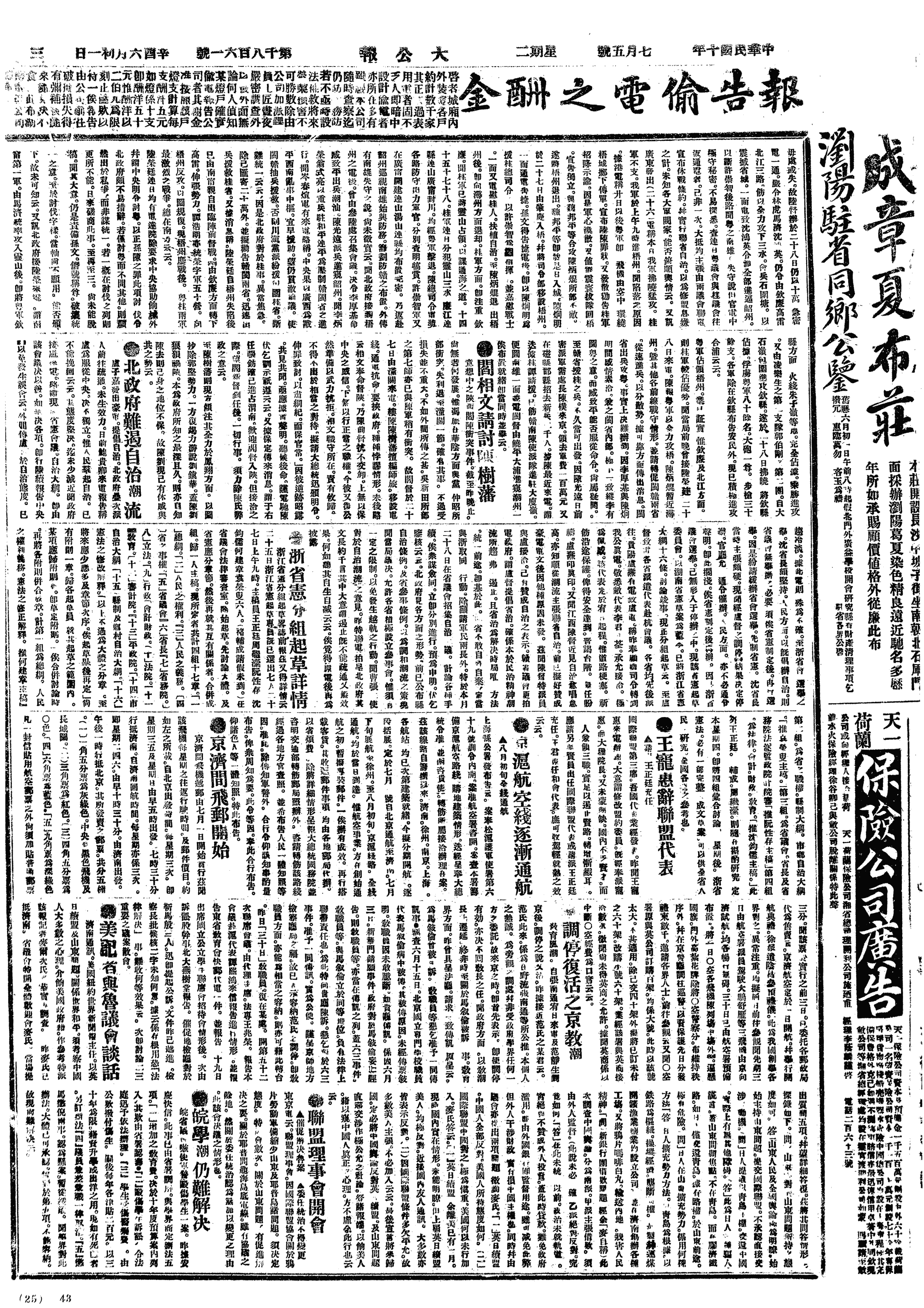 民国文件目录-繁体>19210705