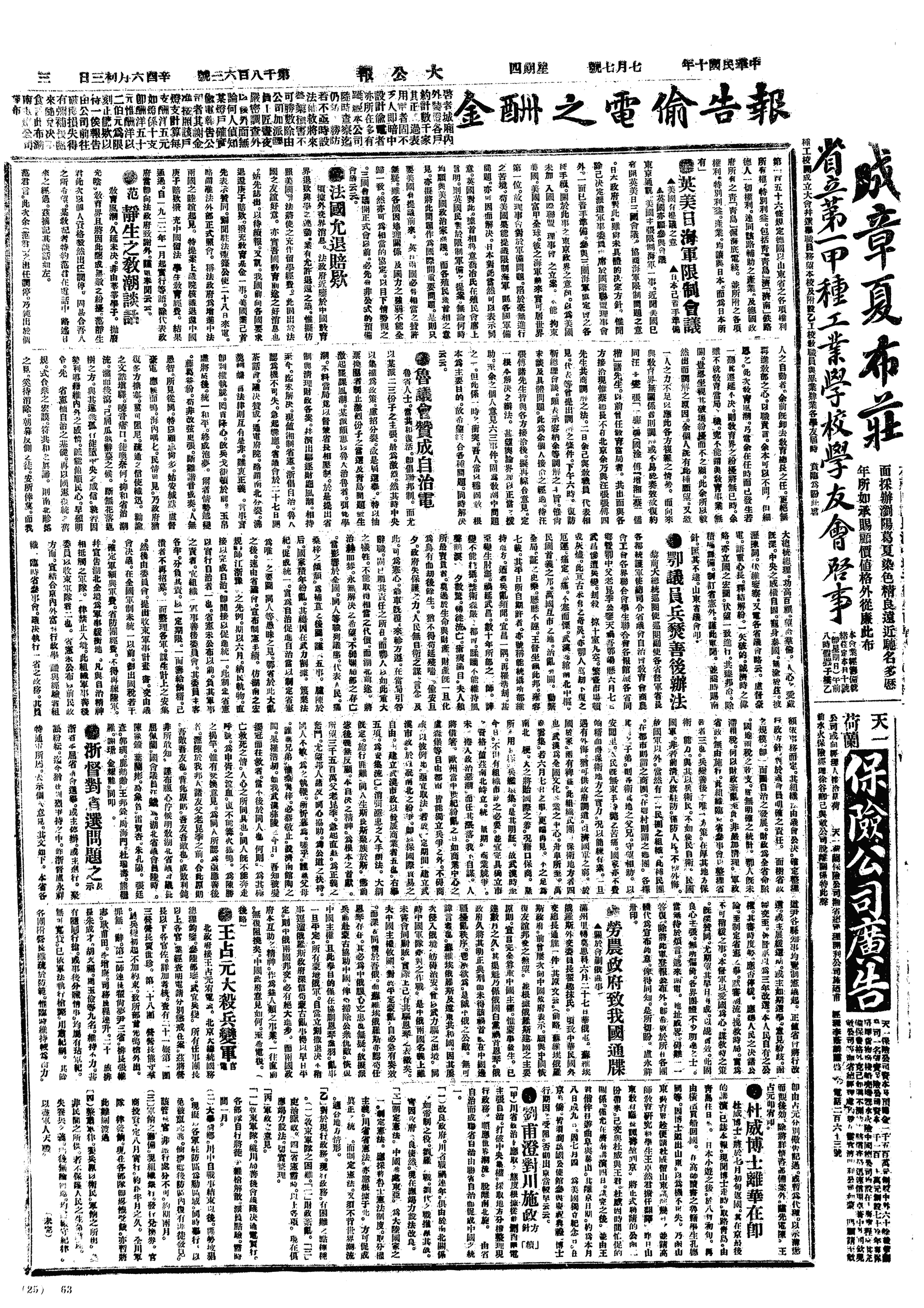 中华民国史事日志>19210707
