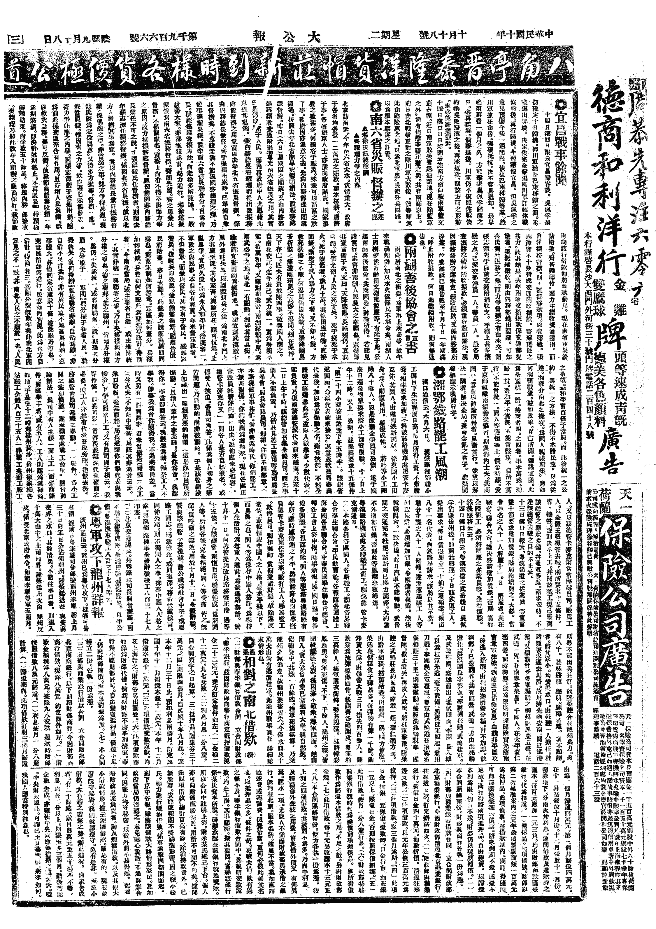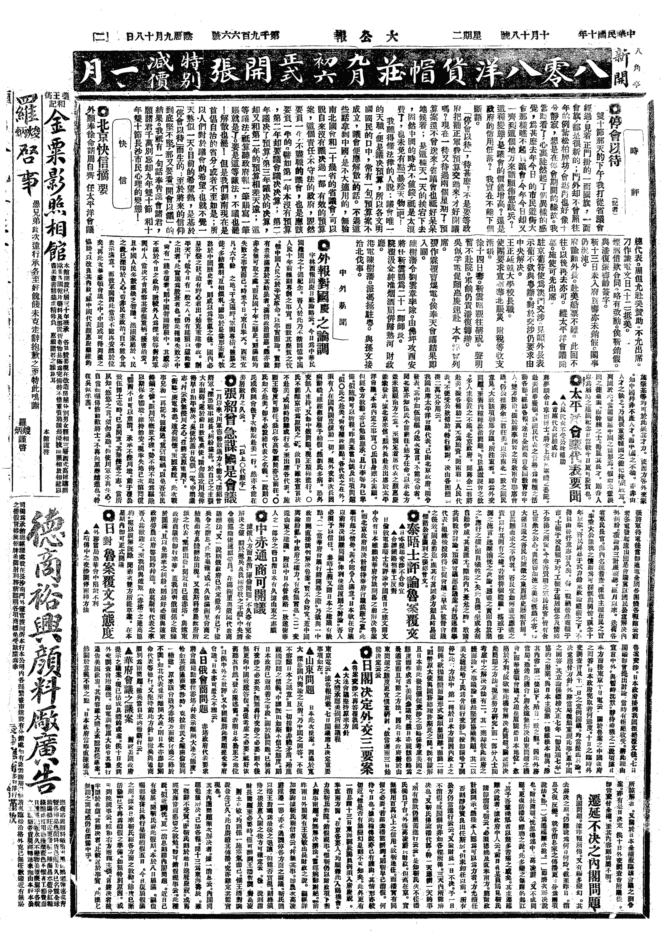 中华民国史大事记>19211018