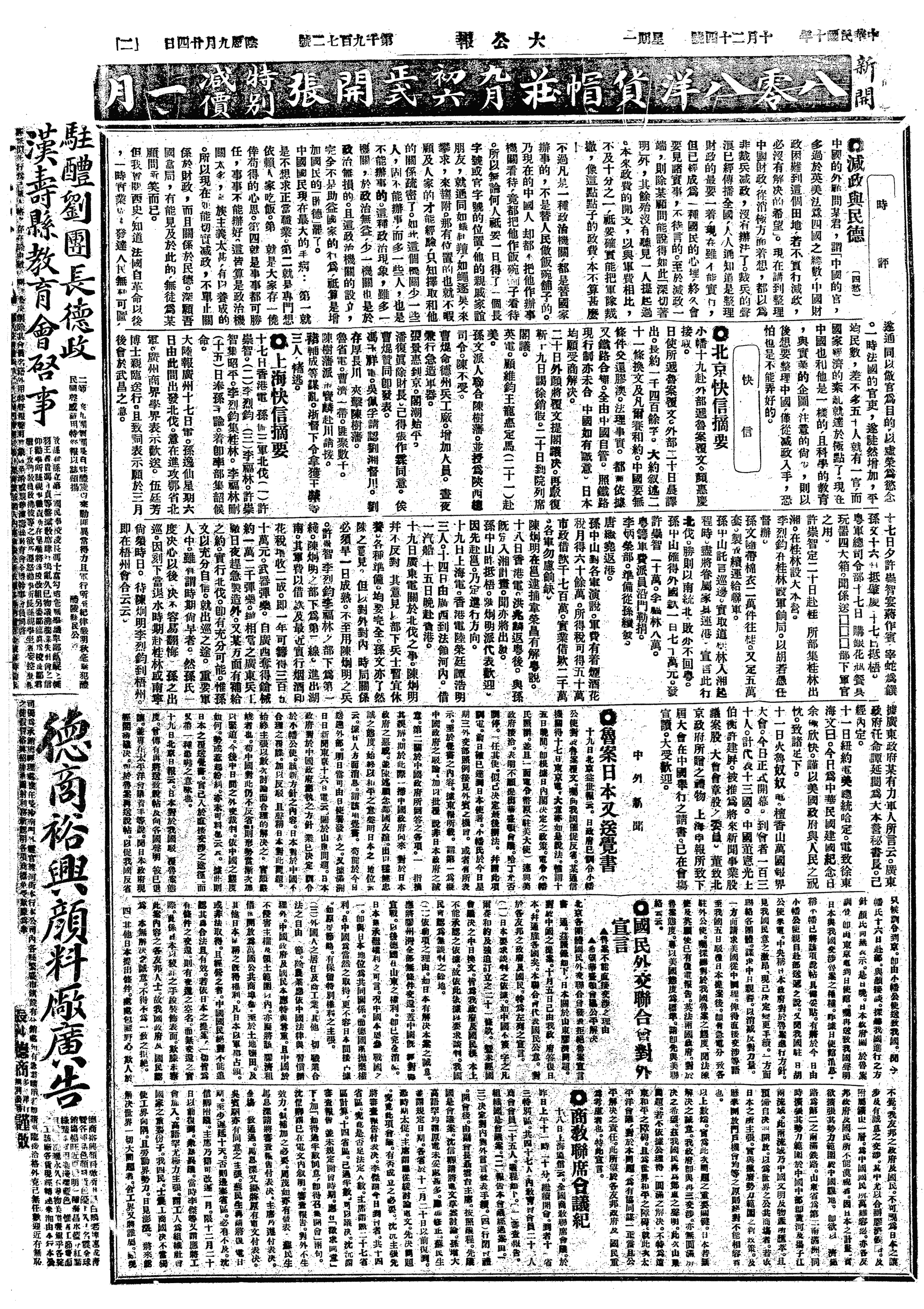 中华民国史大事记>19211024