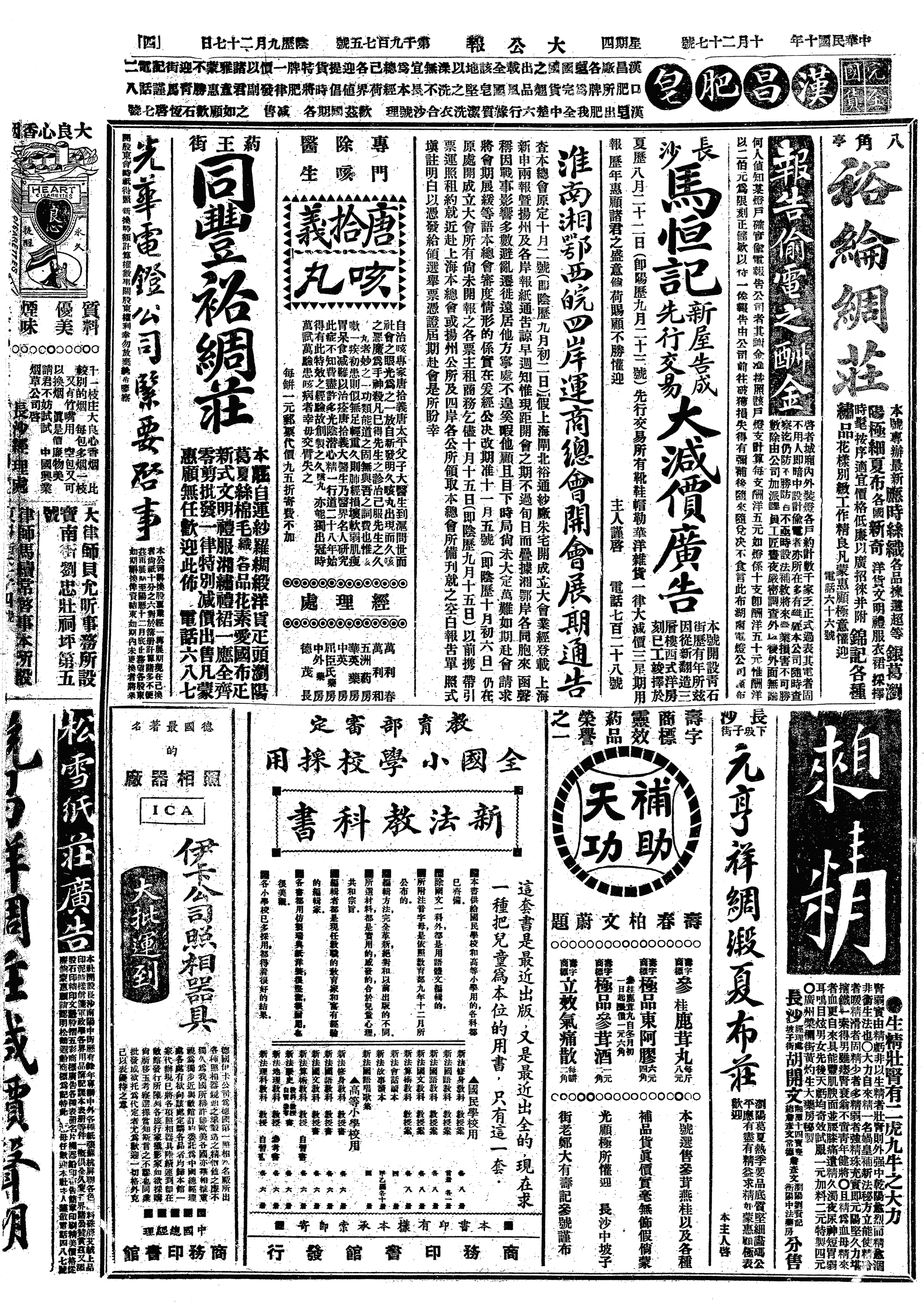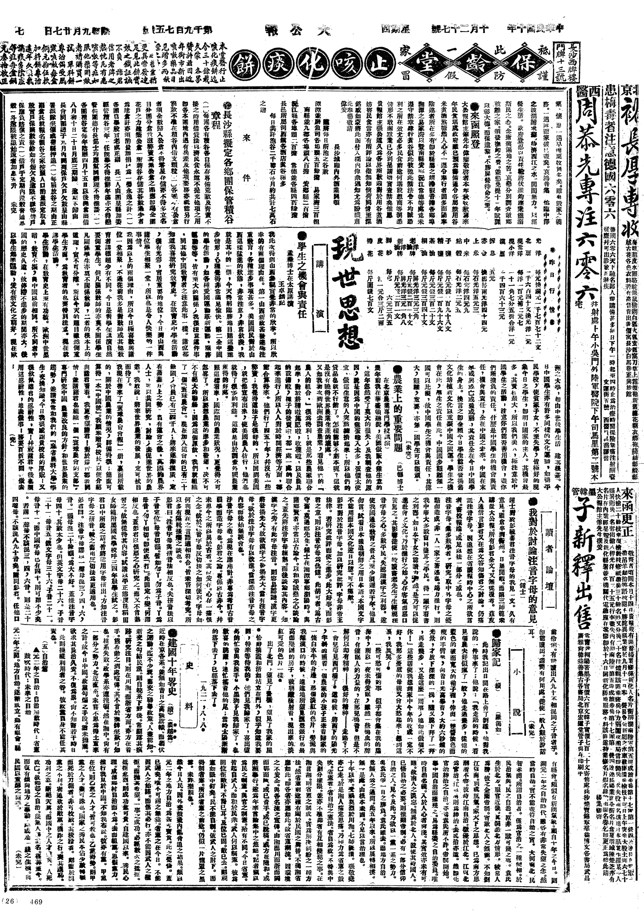 陈惺侬来,交来君毅信二纸。八时至教授室,交吴斌《荀子文讲录》三篇,付讲义课油印。今日荀子文在四十一教室,稍免拥挤,十时下课。晤马幼渔、吴瞿安。幼渔言高师国文部学生,志趣卑陋,以毕业后归里,不能作祭文挽联为忧,可晒也。又晤沈士远,至其二层楼右手十五号室中小坐,言蔡孑民内病已愈,惟脚疗割后,一时尚难行步也。北京大学送续聘书来,照章续聘书止送一次,此后继续任事,不再送聘也。如讲满一期,未送续聘书,即作为解约矣。予前次聘书为蒋梦麟署名,此次则蔡孑民署名。寄日本青木迷阳《秋水集》一册。