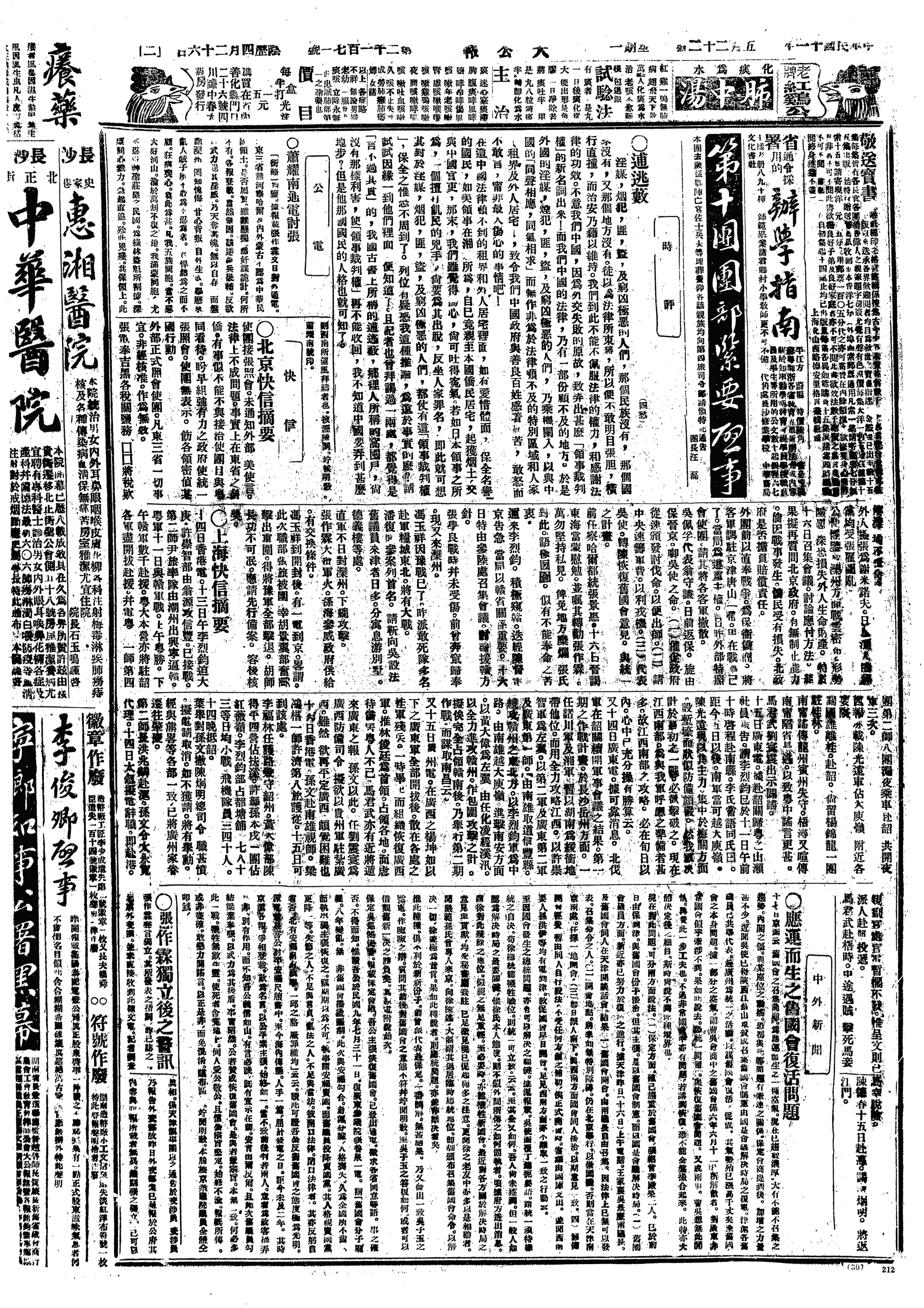 中华民国史大事记>19220522