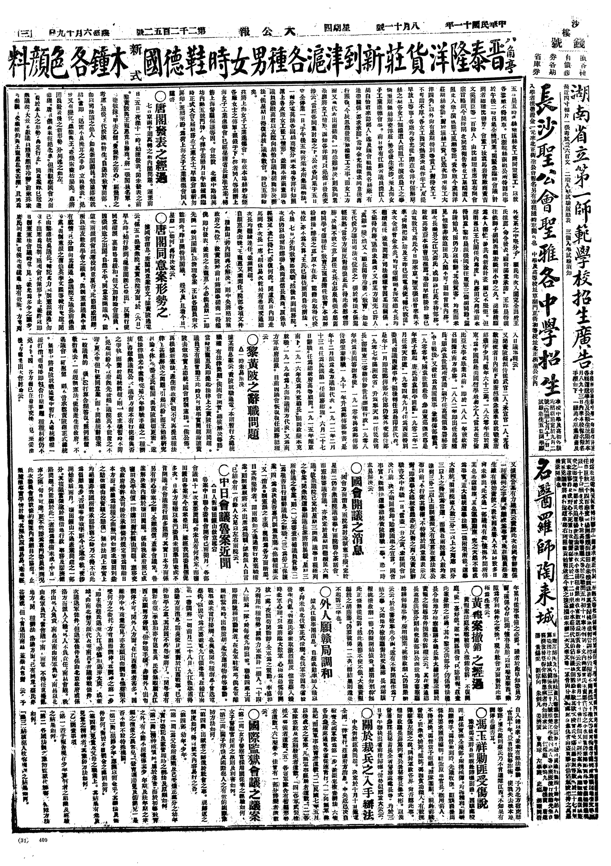 中华民国史大事记>19220811