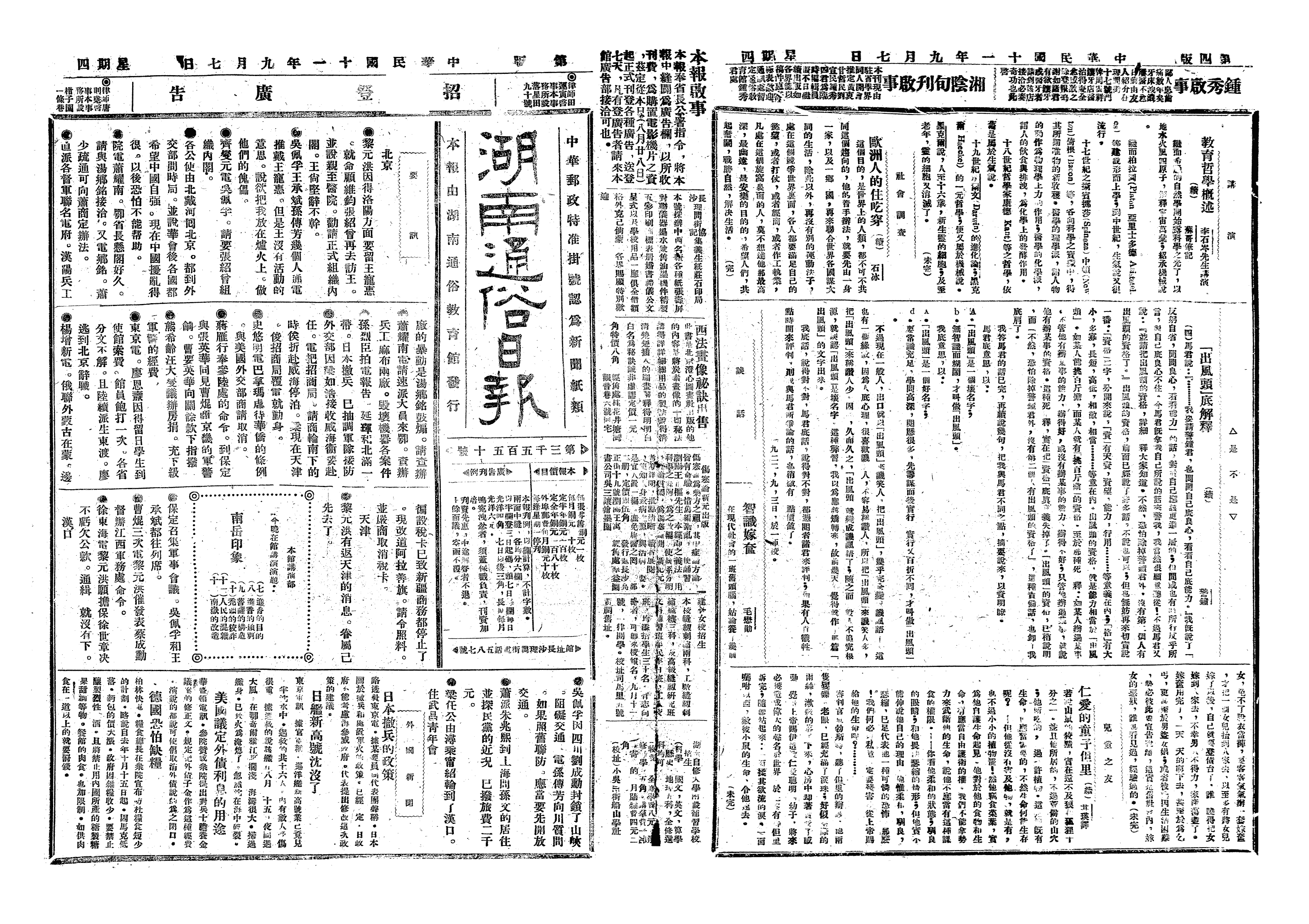 中华民国史大事记>19220907