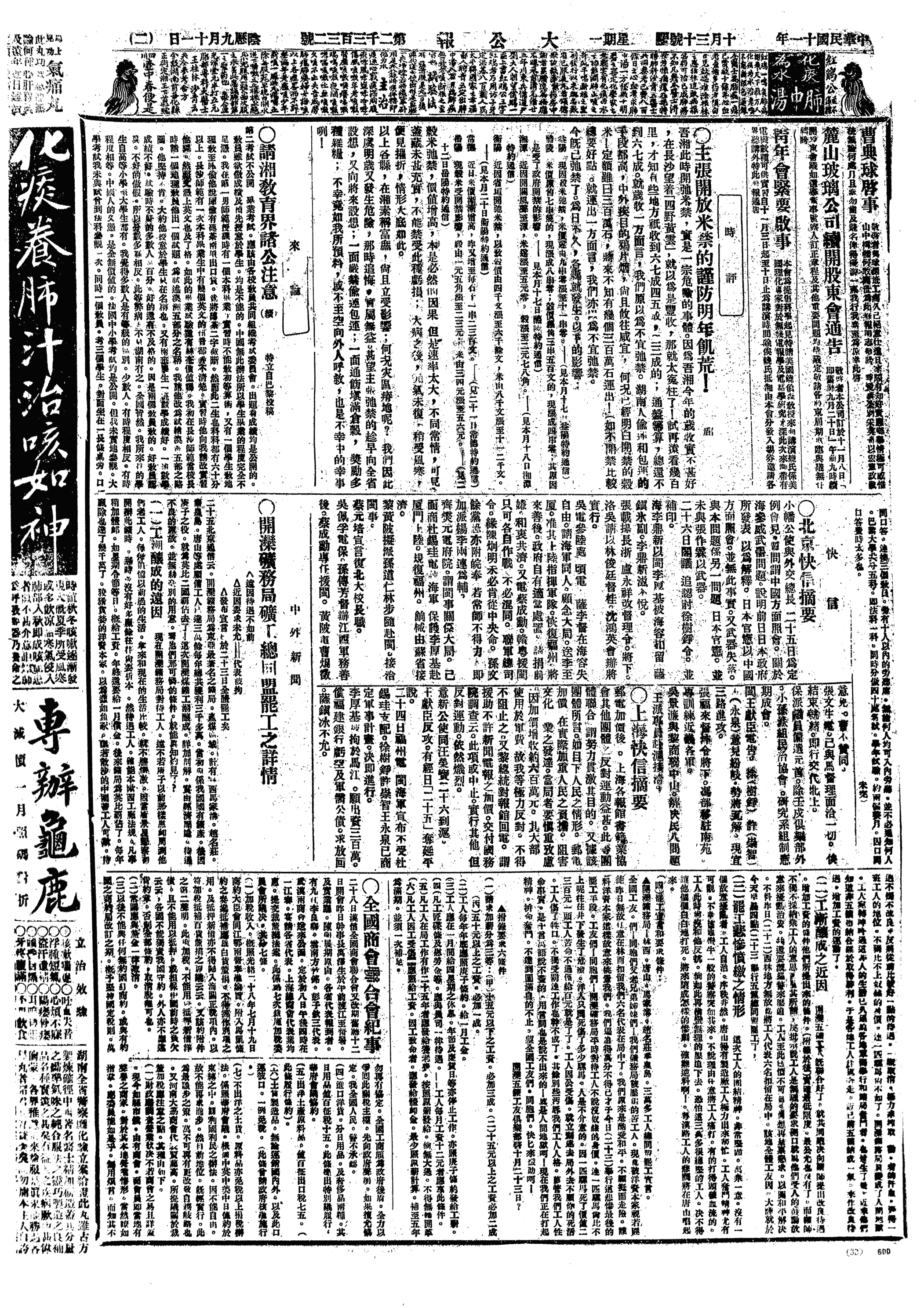 中华民国史大事记>19221030