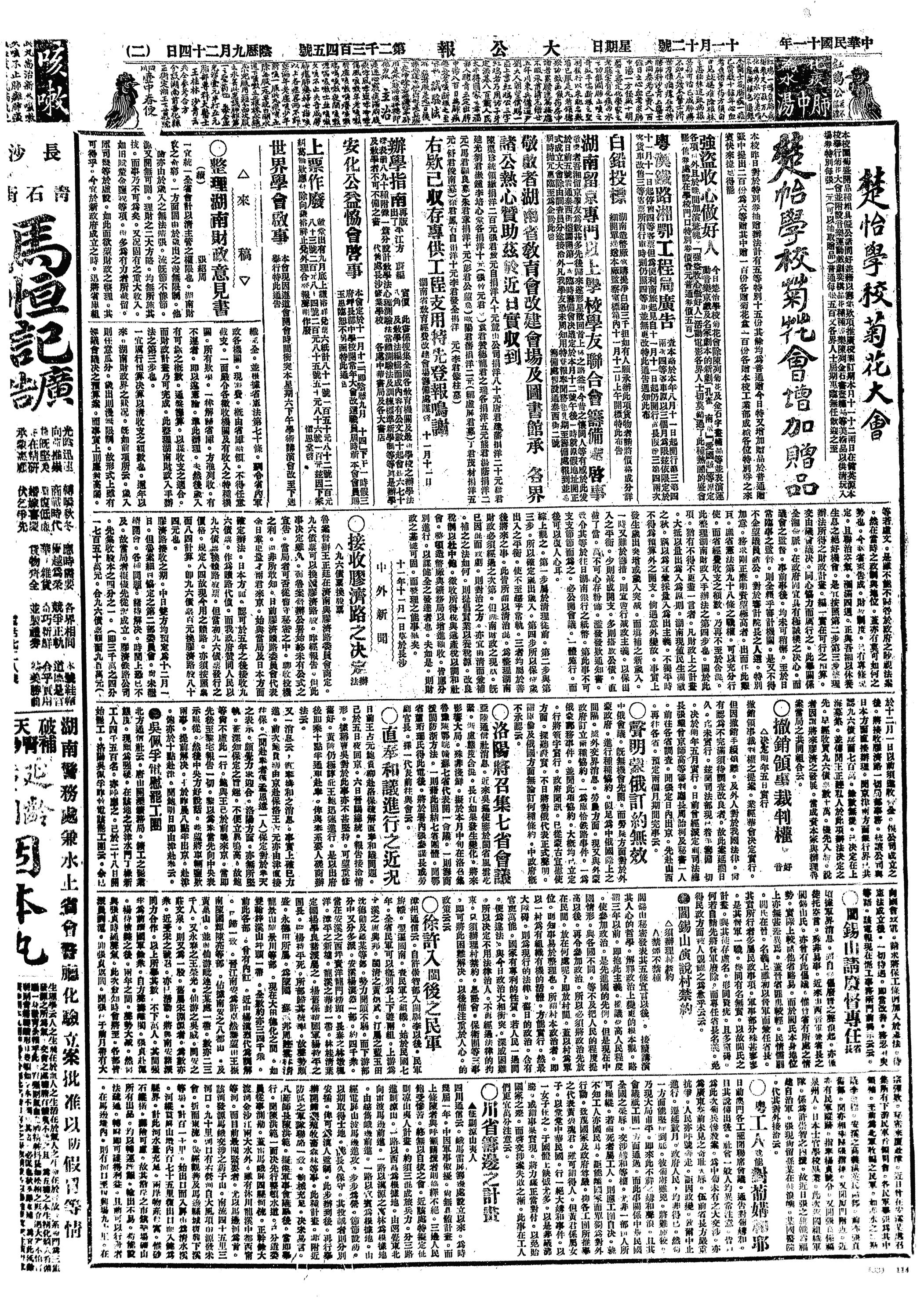 中华民国史大事记>19221112