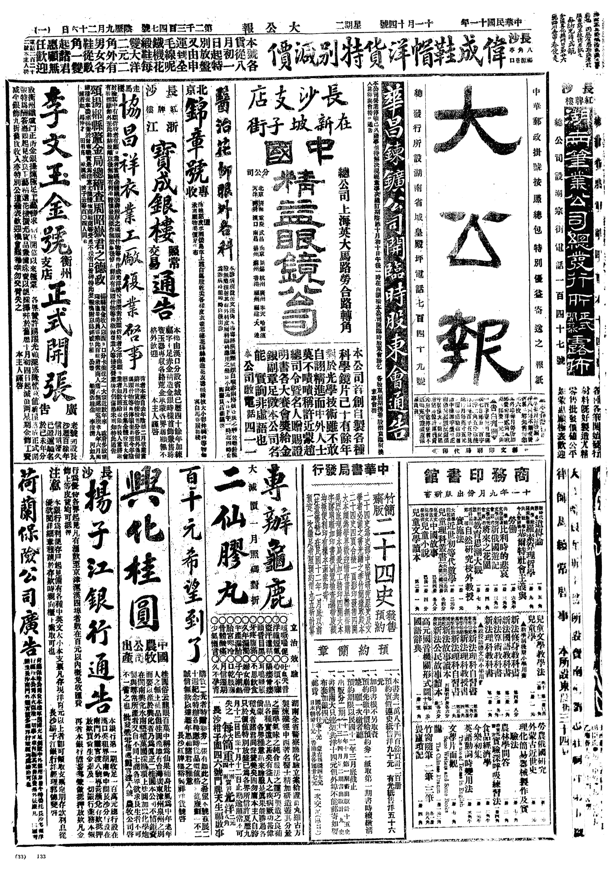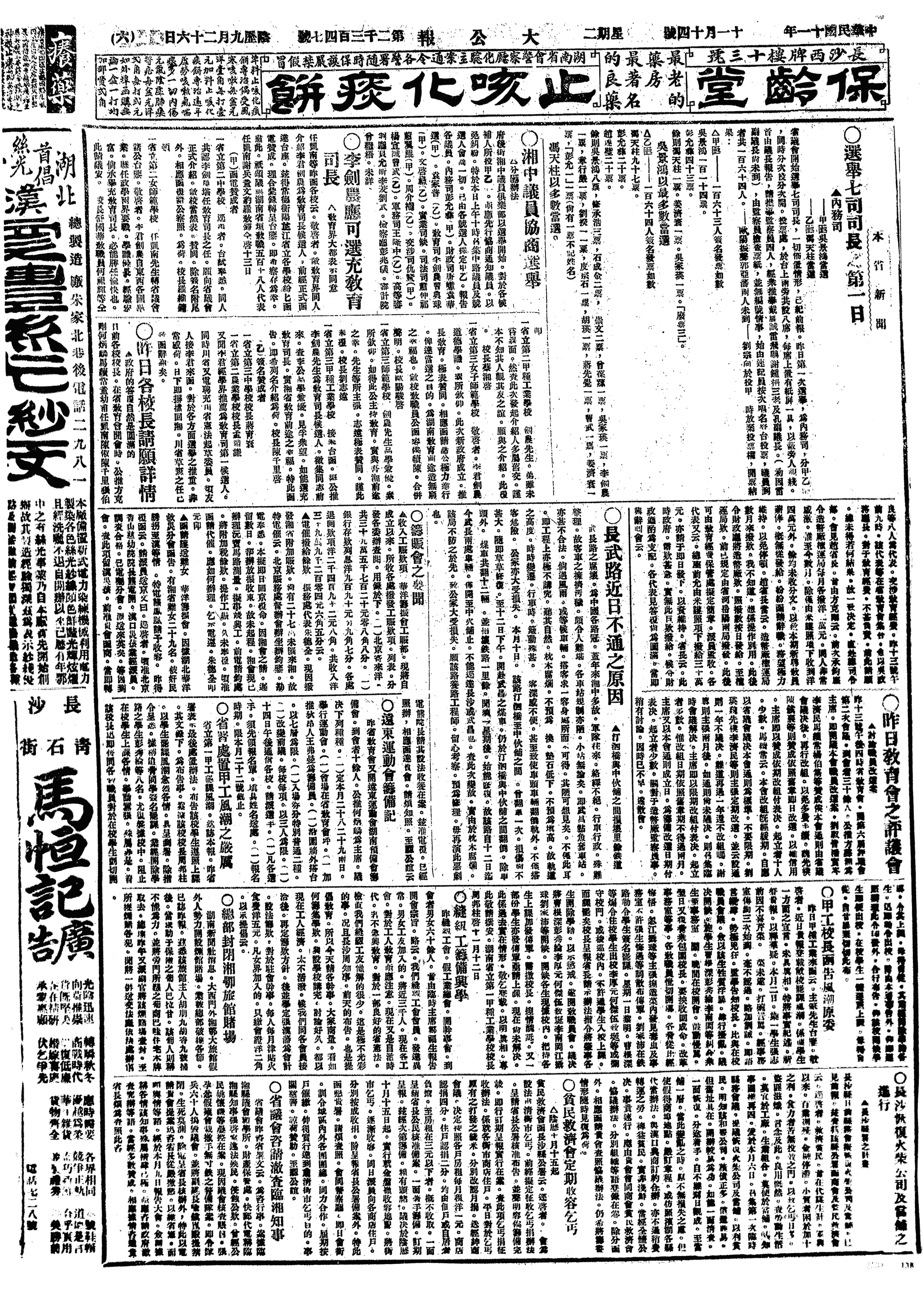 (5)长沙笔业工人罢工(12,23解决)。