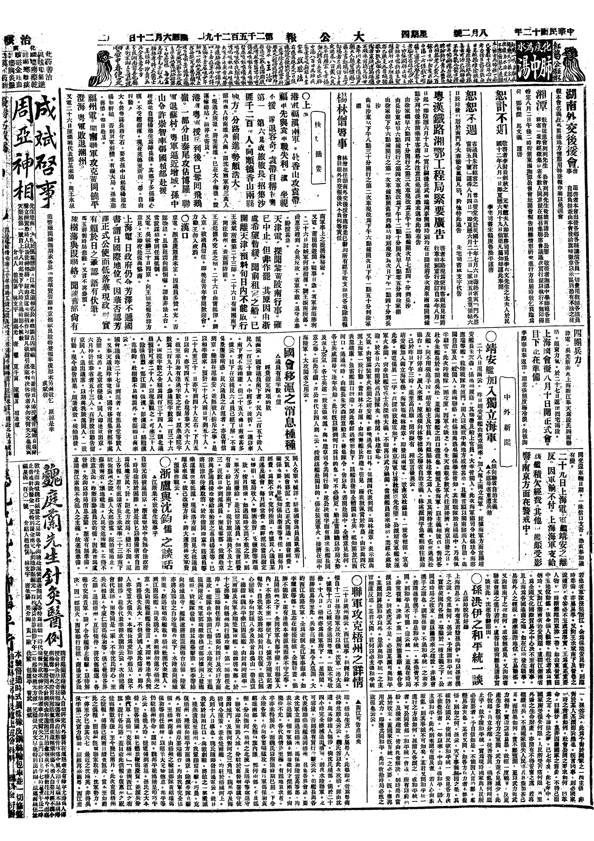 中华民国史大事记>19230802