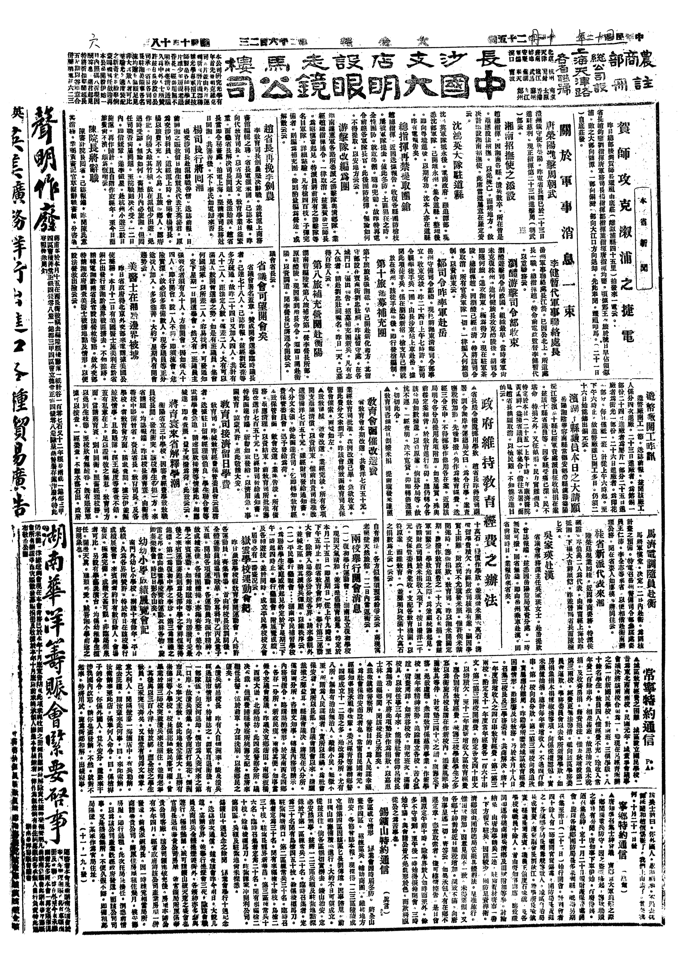 今日得韶电,云始兴无敌兵,而沪报告则赣军方集中寇粤,那参谋告杨沧白,则云敌退出始兴,未知何者属实。