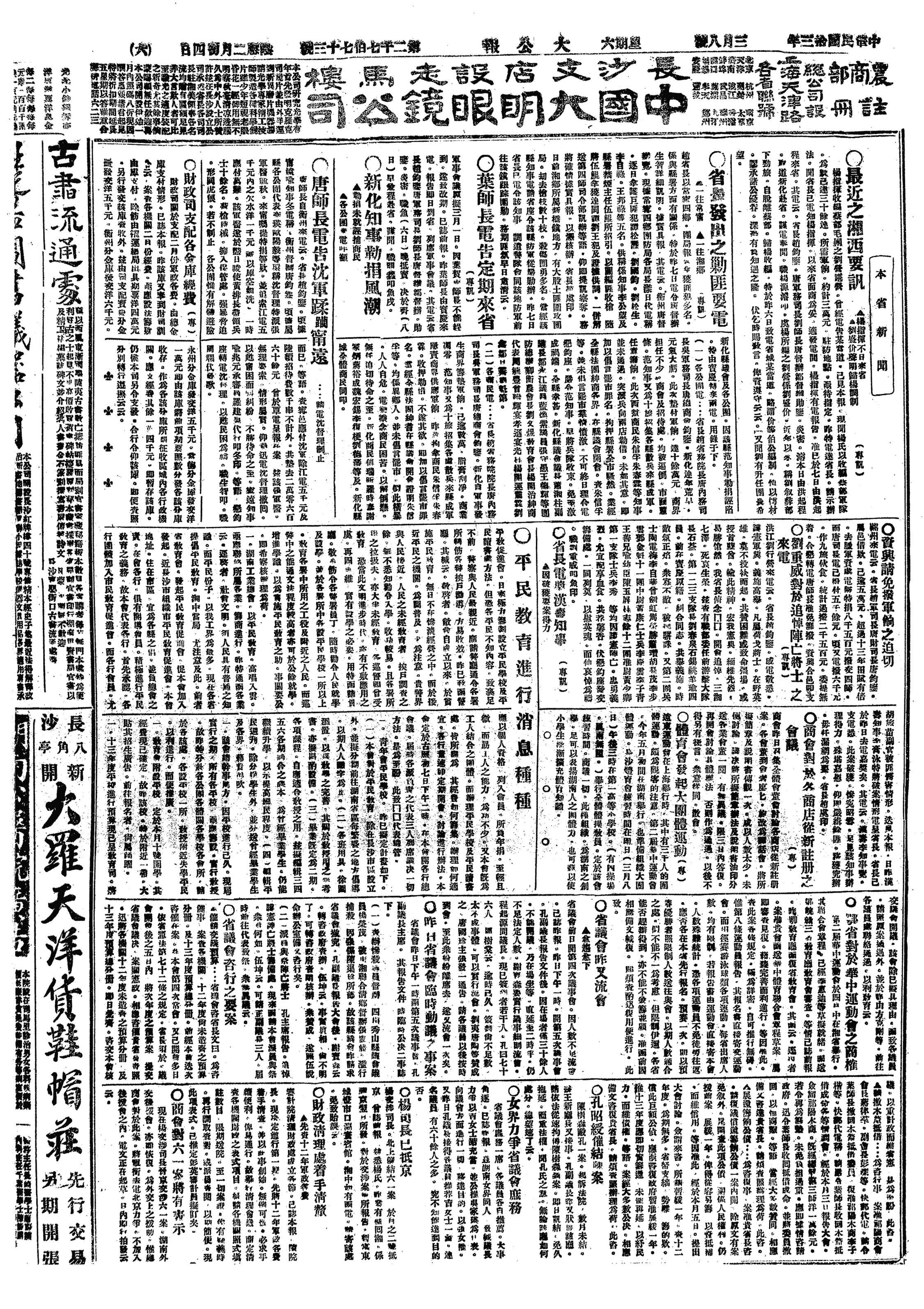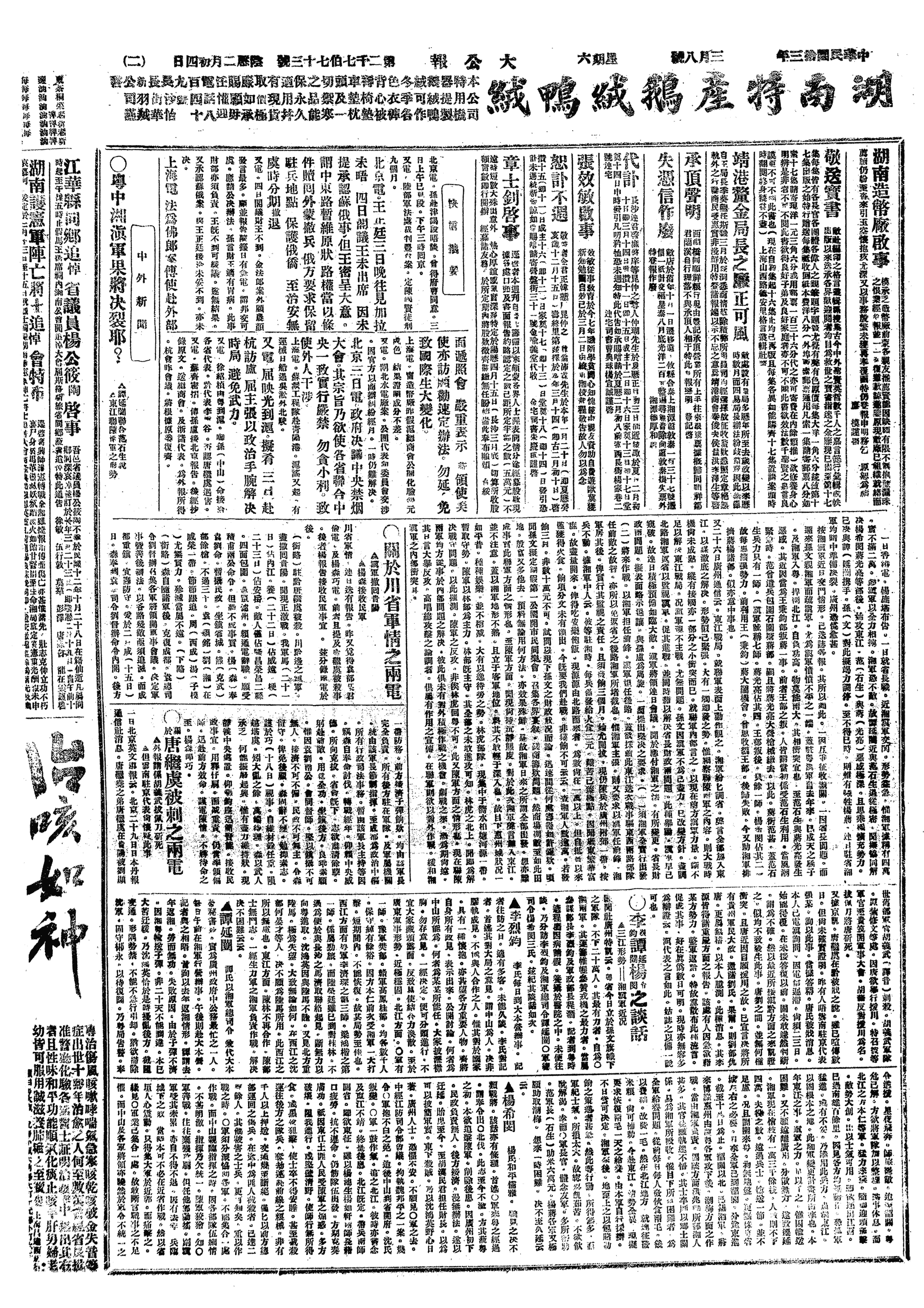 (2)章炳麟电湖南省议会,劝力护省宪(时吴佩孚正诱迫赵恒惕取消省宪)。