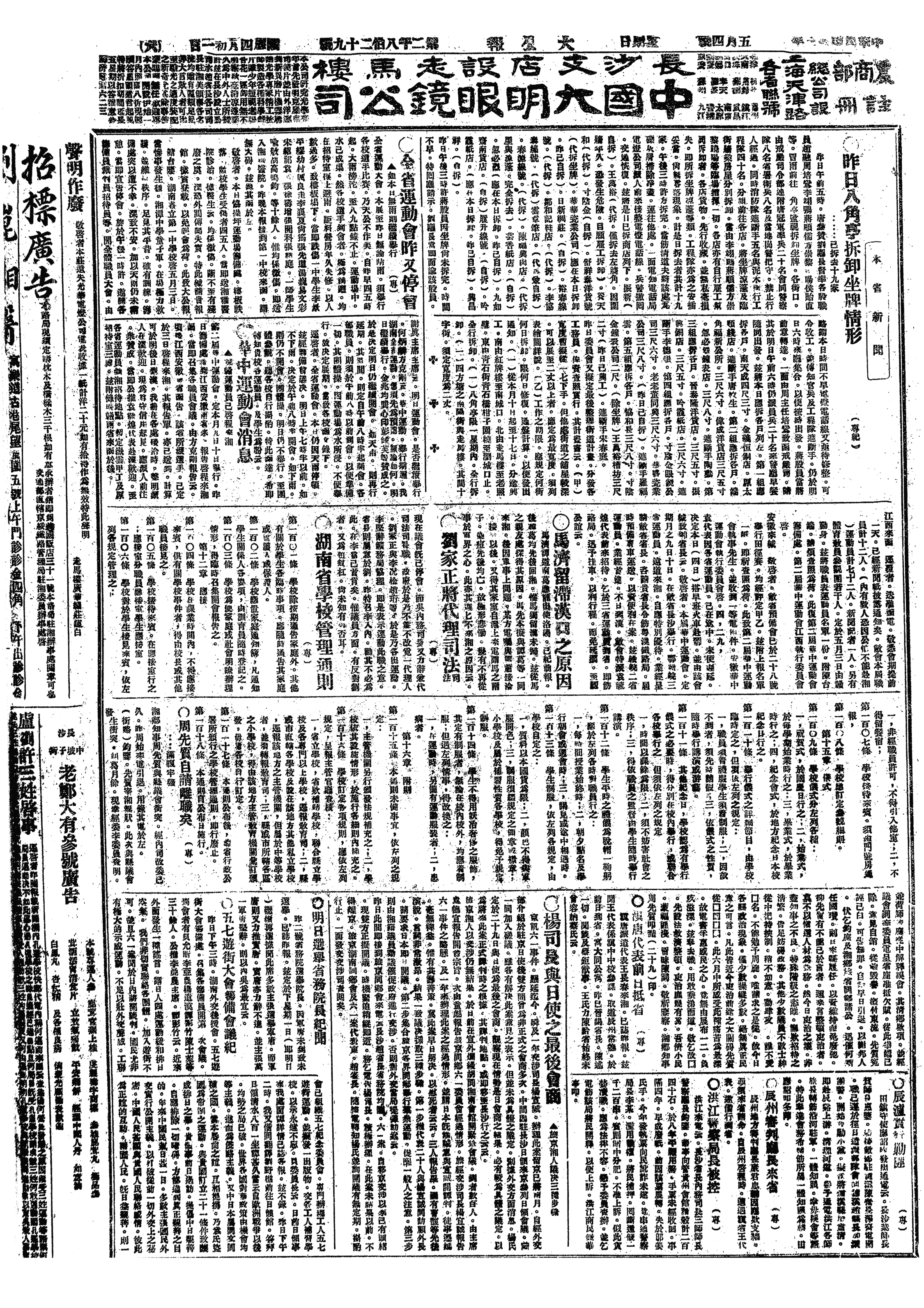△ 南京学生会举行纪念“五四”大会,杨杏佛演讲《学生运动之过去与未来》,呼吁学人展开救国运动。