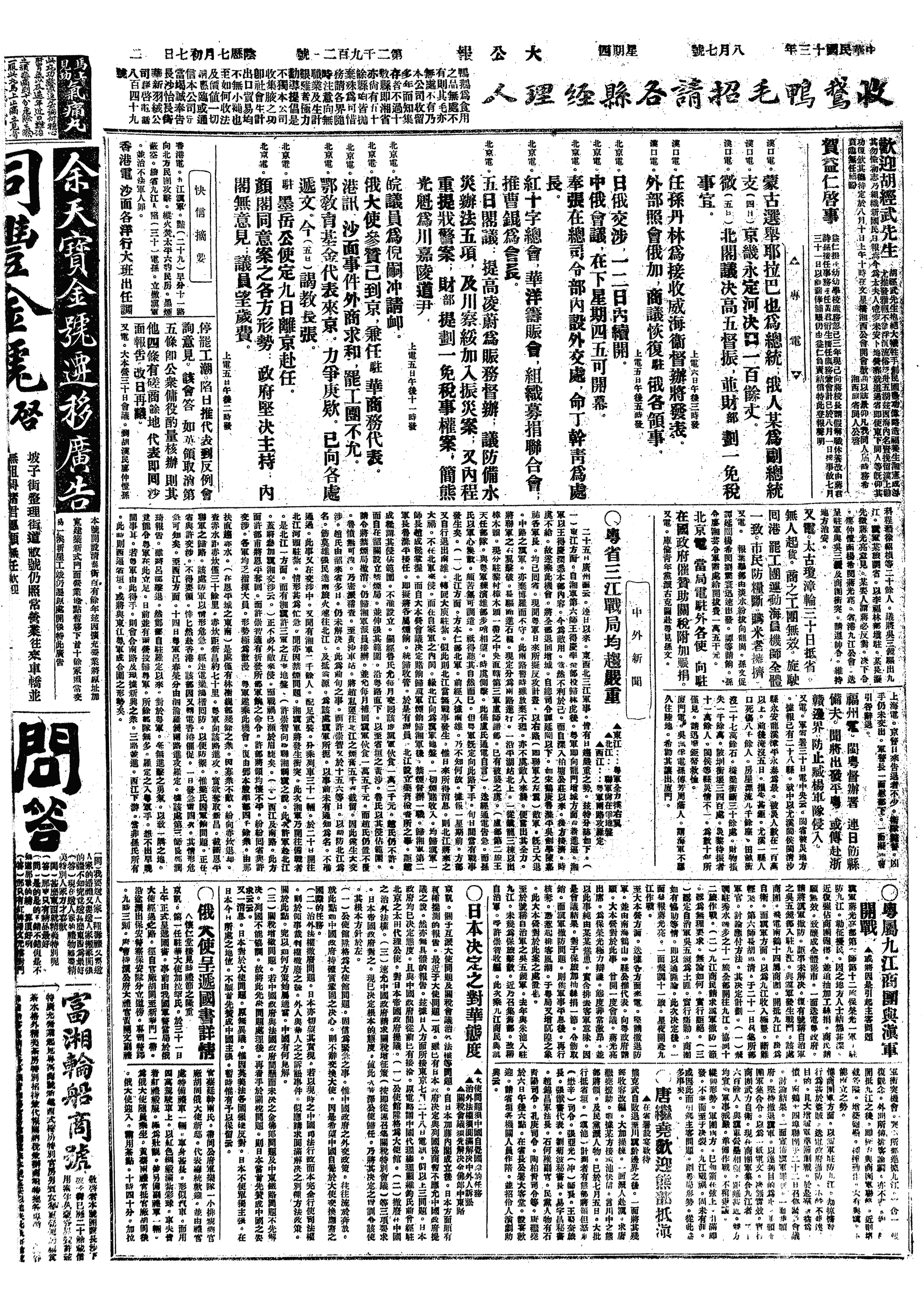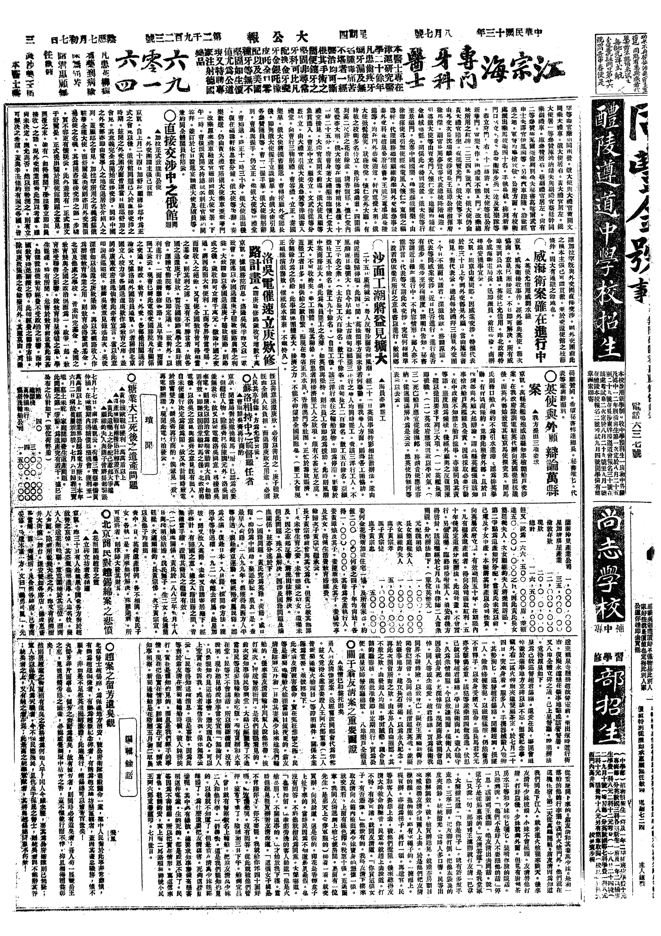 中华民国史事日志>19240807