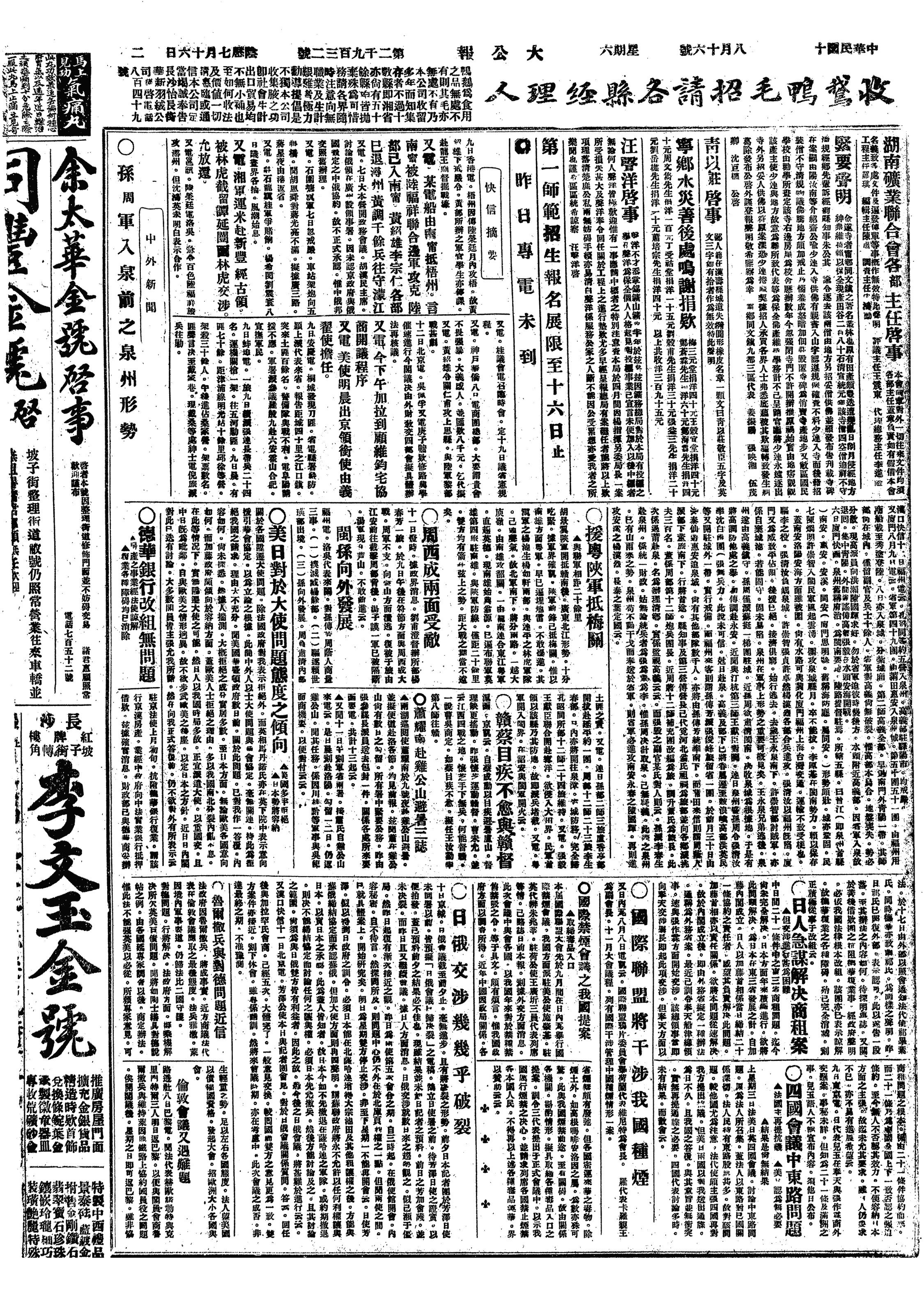 中华民国史大事记>19240816
