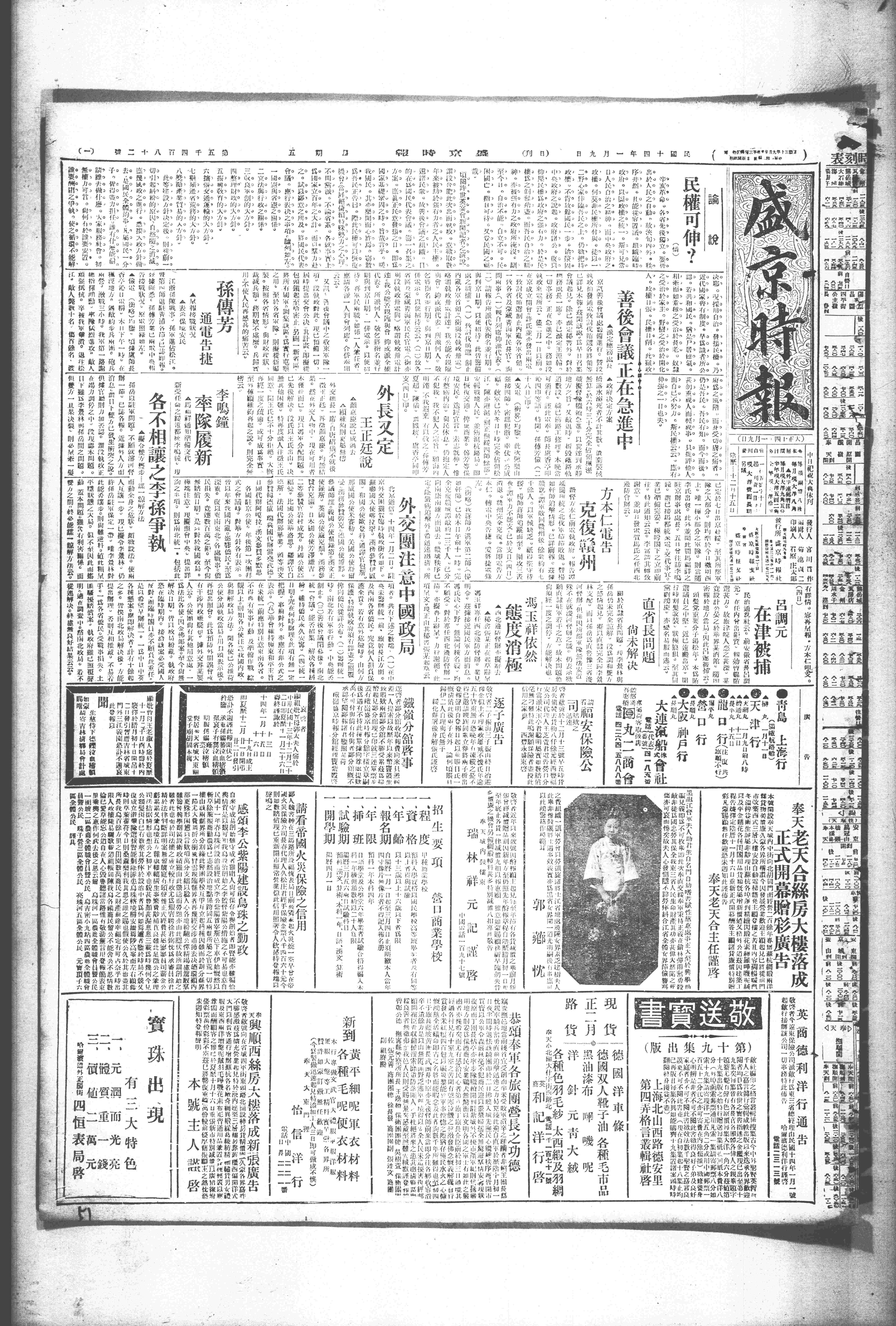 中华民国史事日志>19250109