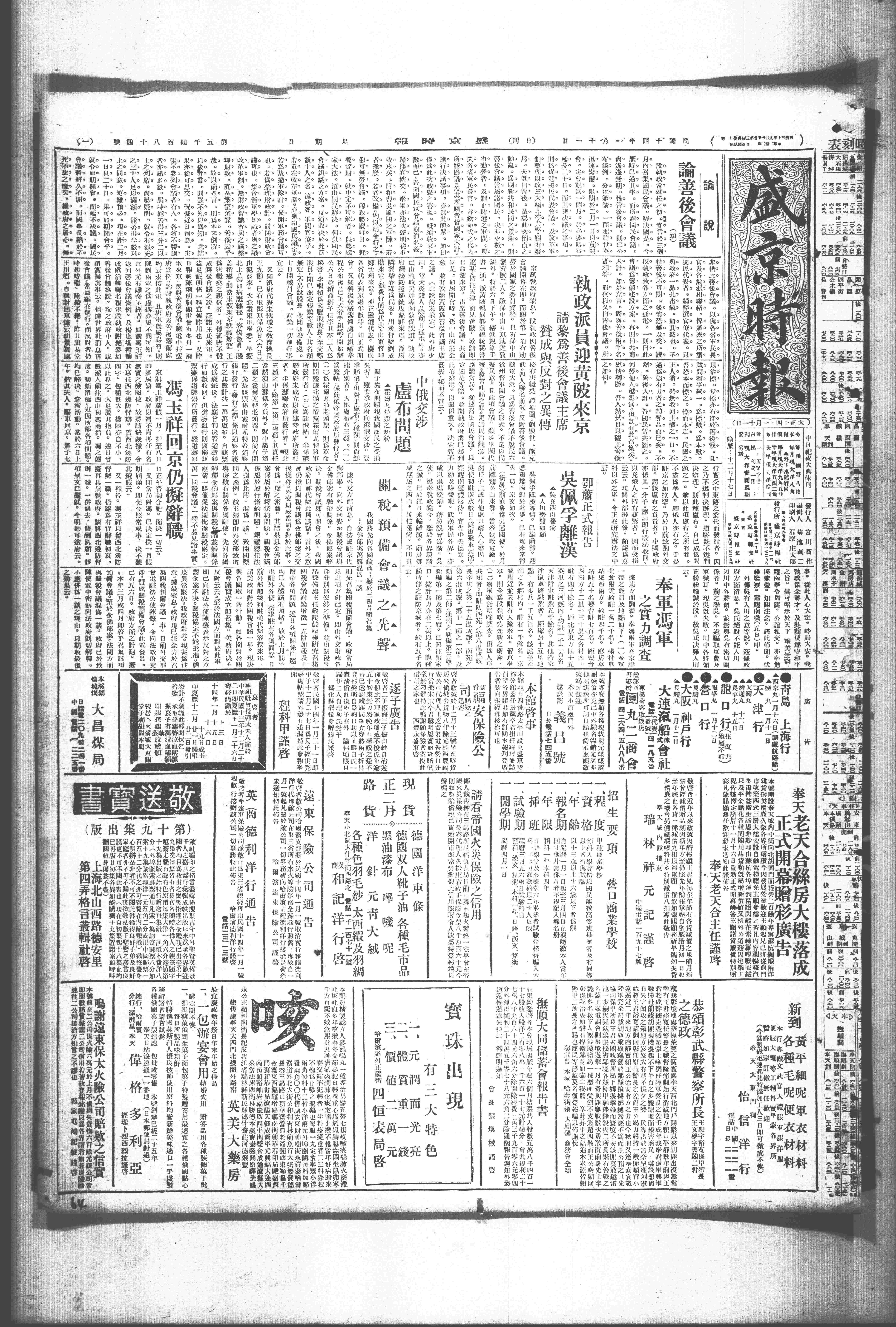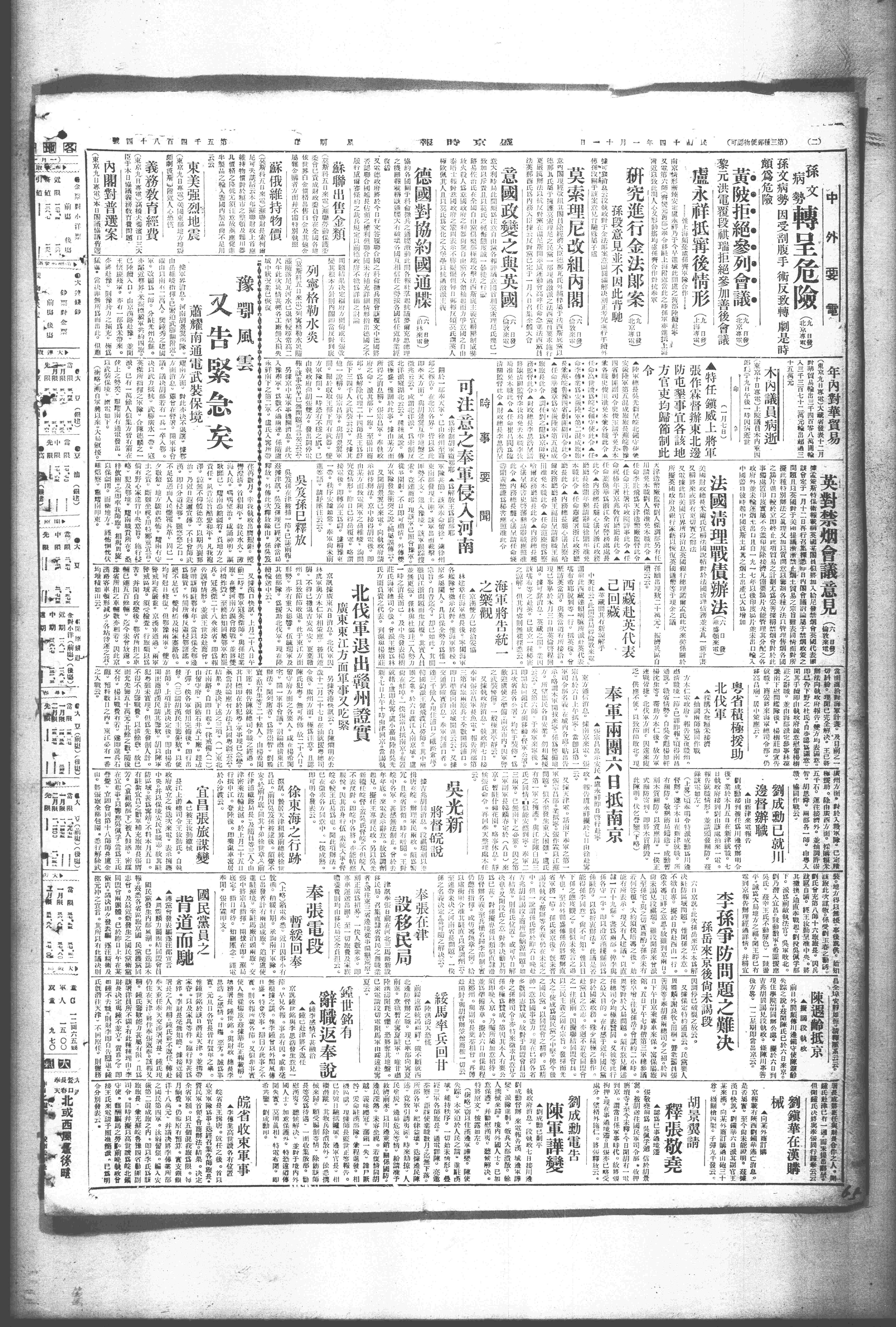 中华民国史大事记>19250111