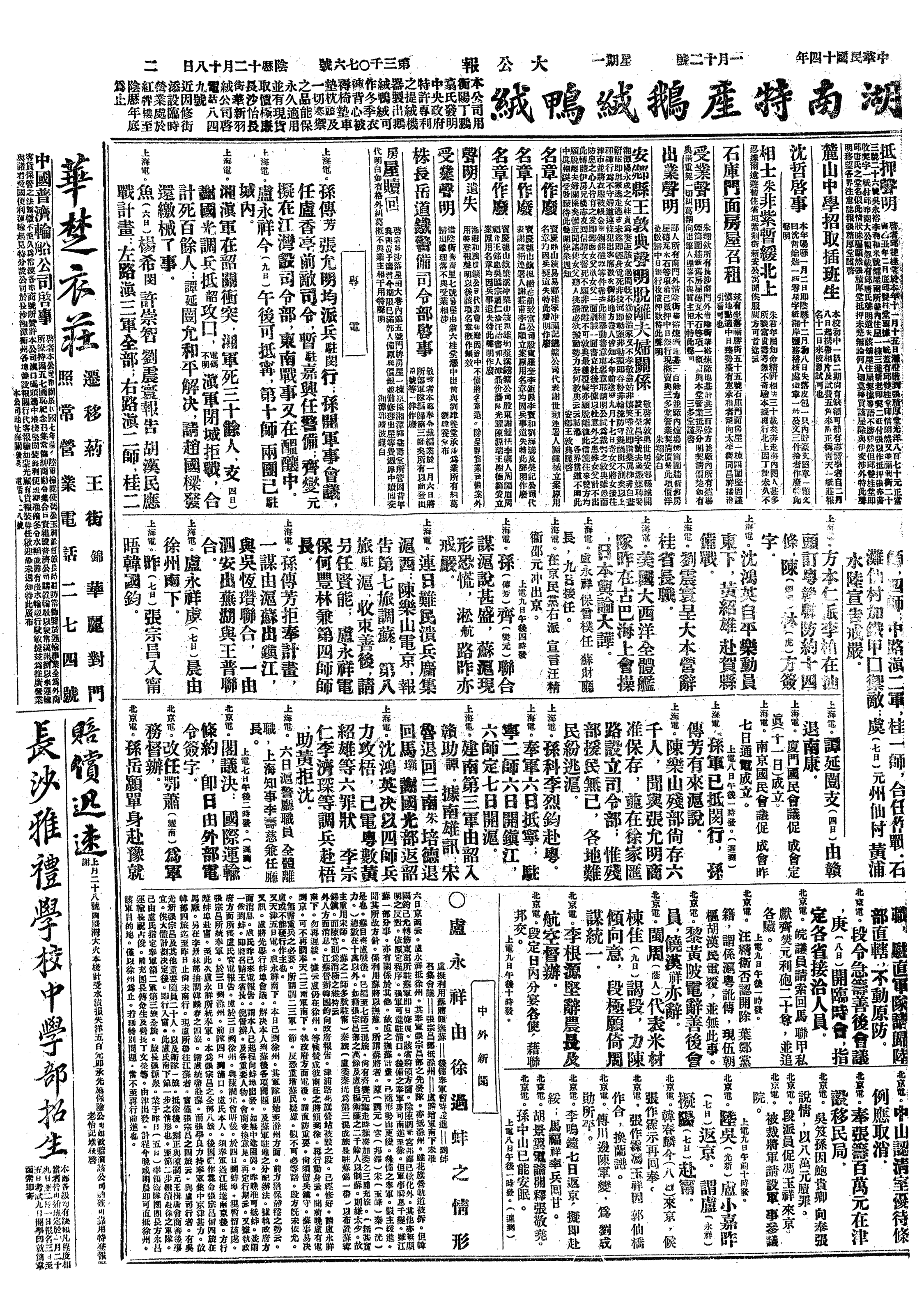 中华民国史大事记>19250112