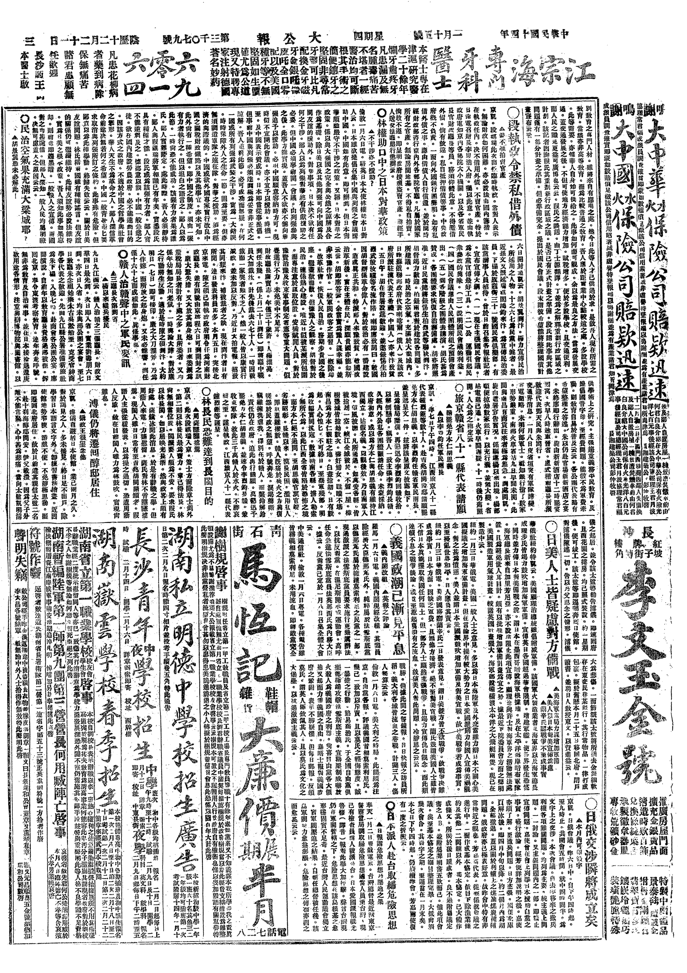 中华民国史大事记>19250115