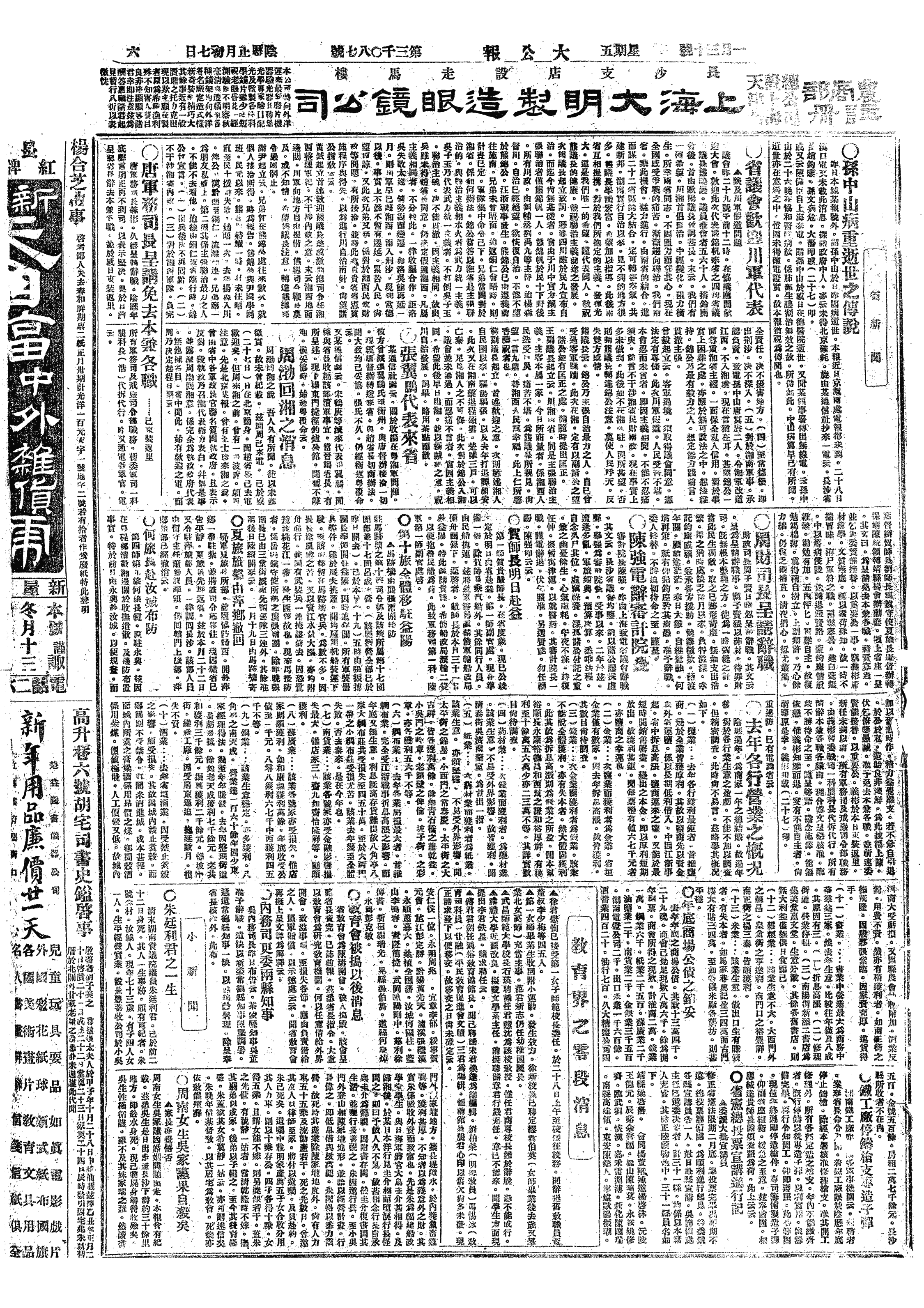 孙中山今年六十一岁,其大人宋庆龄女士二十八岁,以中山之年龄观之,予今年决当回川,优游林下,以乐天年,不必再远客独居于数千里之外也。需盖玄大人信,并言暑假决定回川陪犬人,不再辛苦于外矣。
