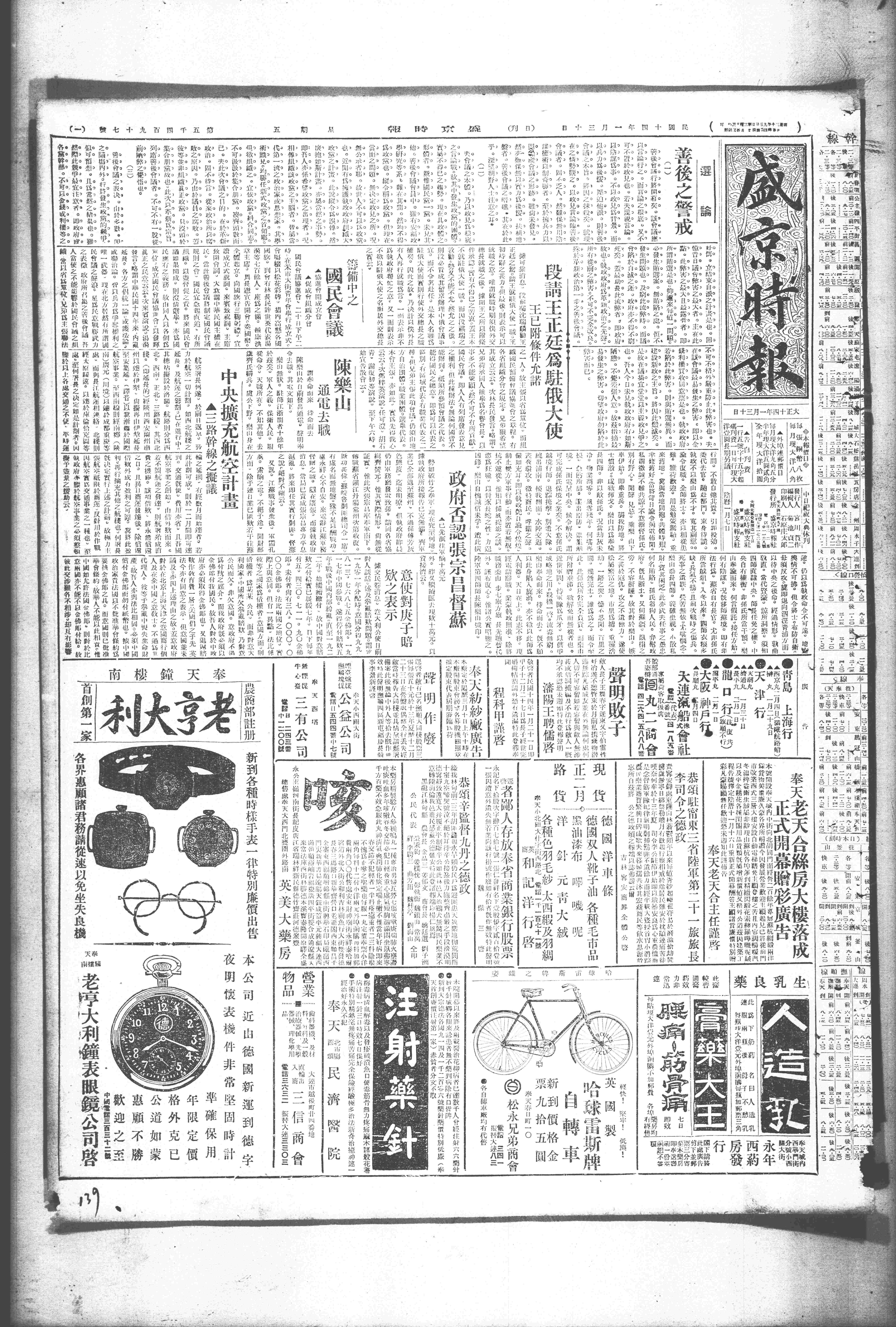 中华民国史大事记>19250130