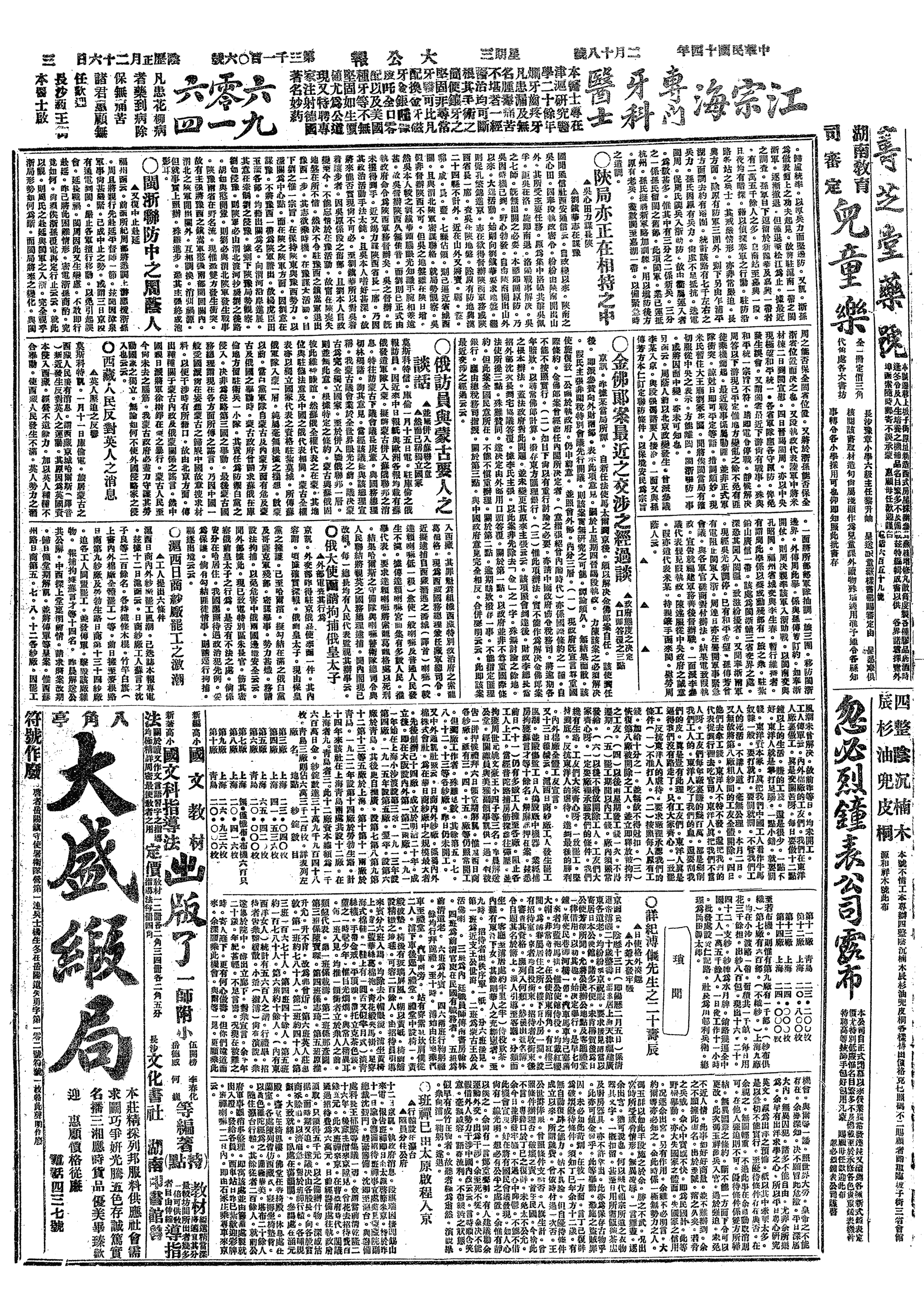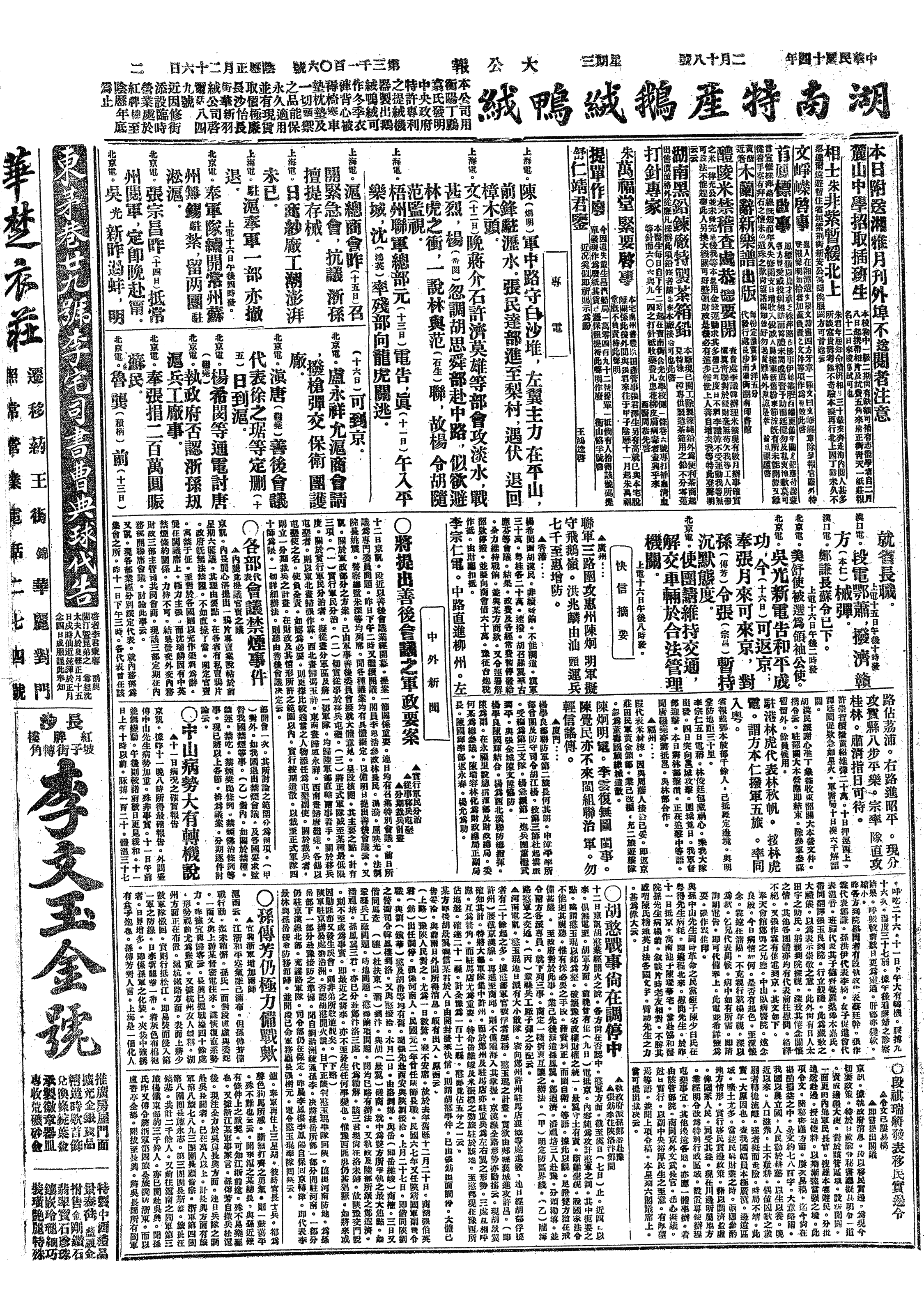 中华民国史大事记>19250218